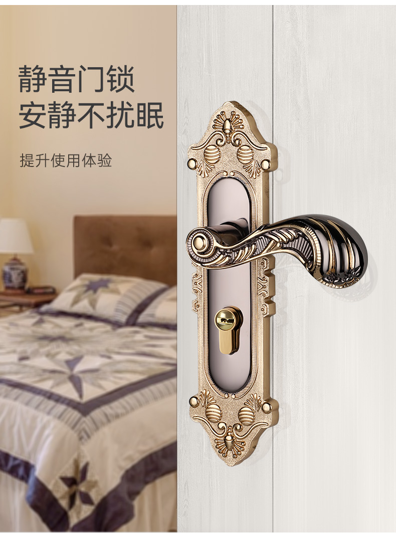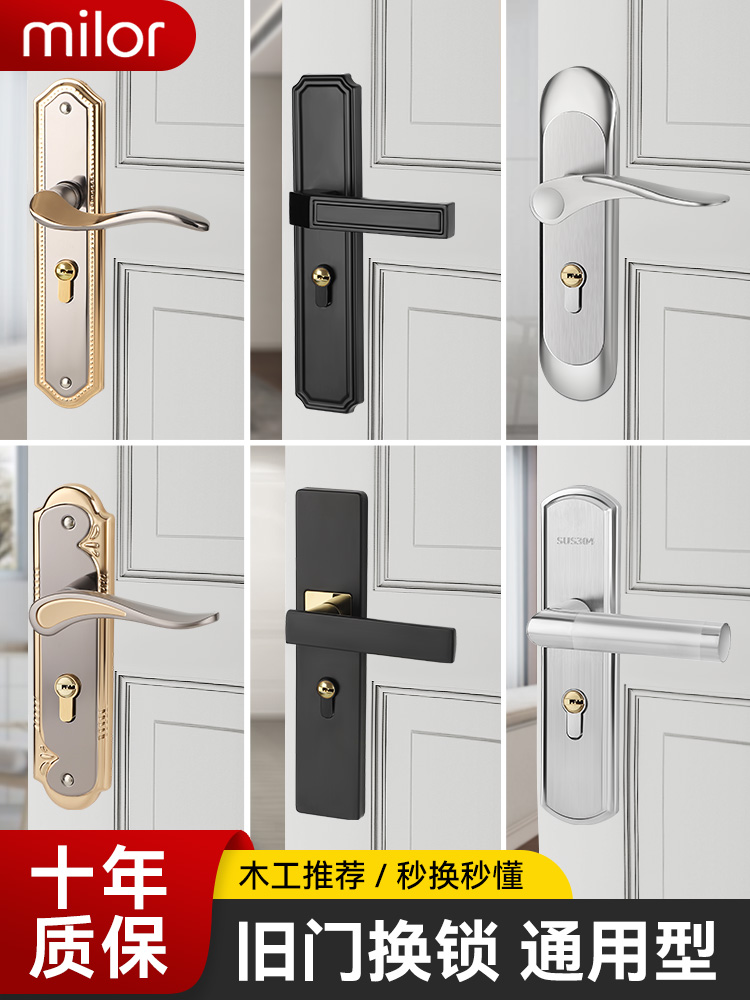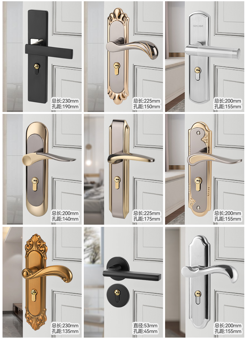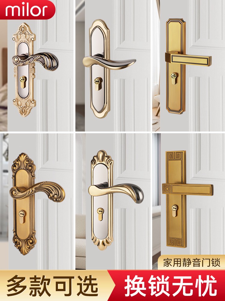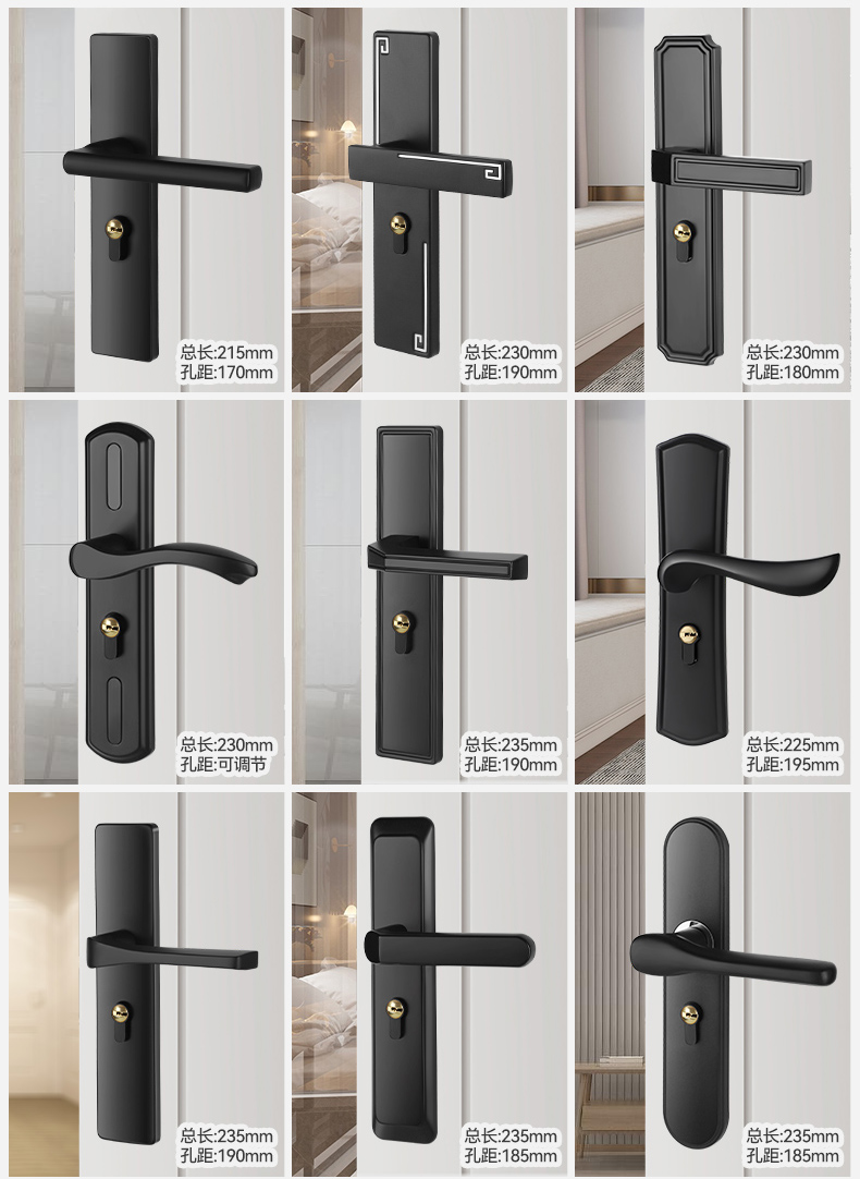 Бытовой универсальный дверной замок для спальных дверей, черный комплект из трех замков, бесшумная дверная ручка старого образца, сменный замок для старых дверей.