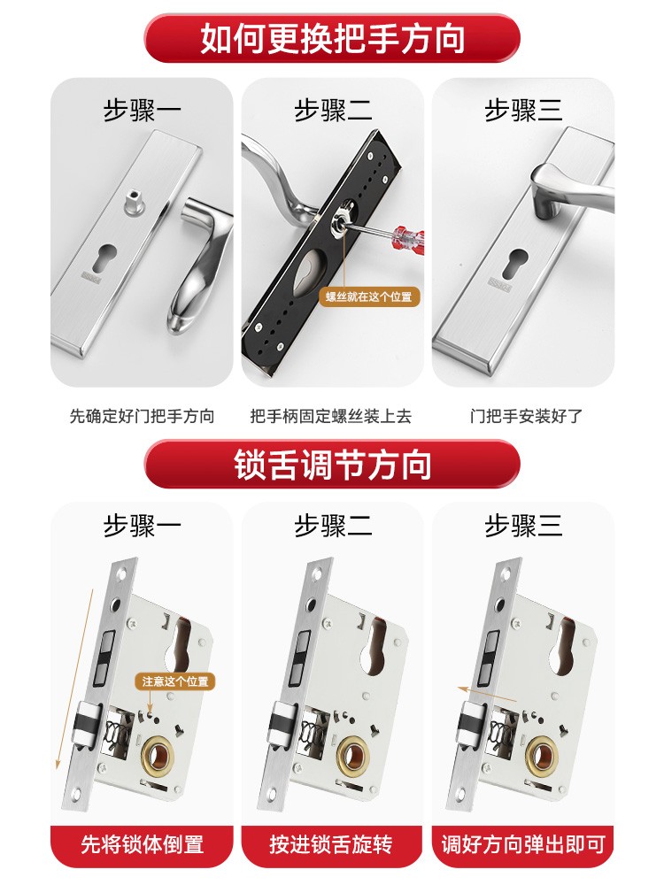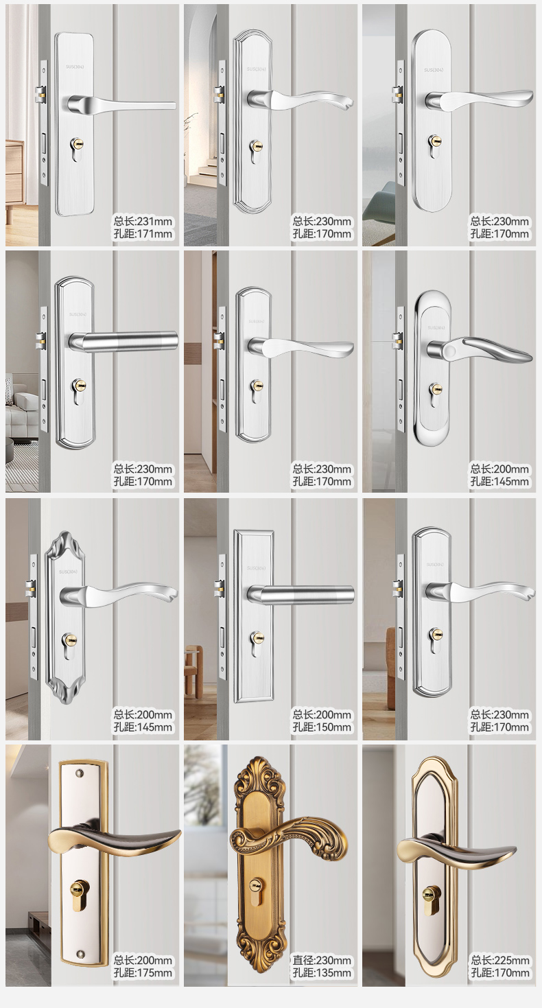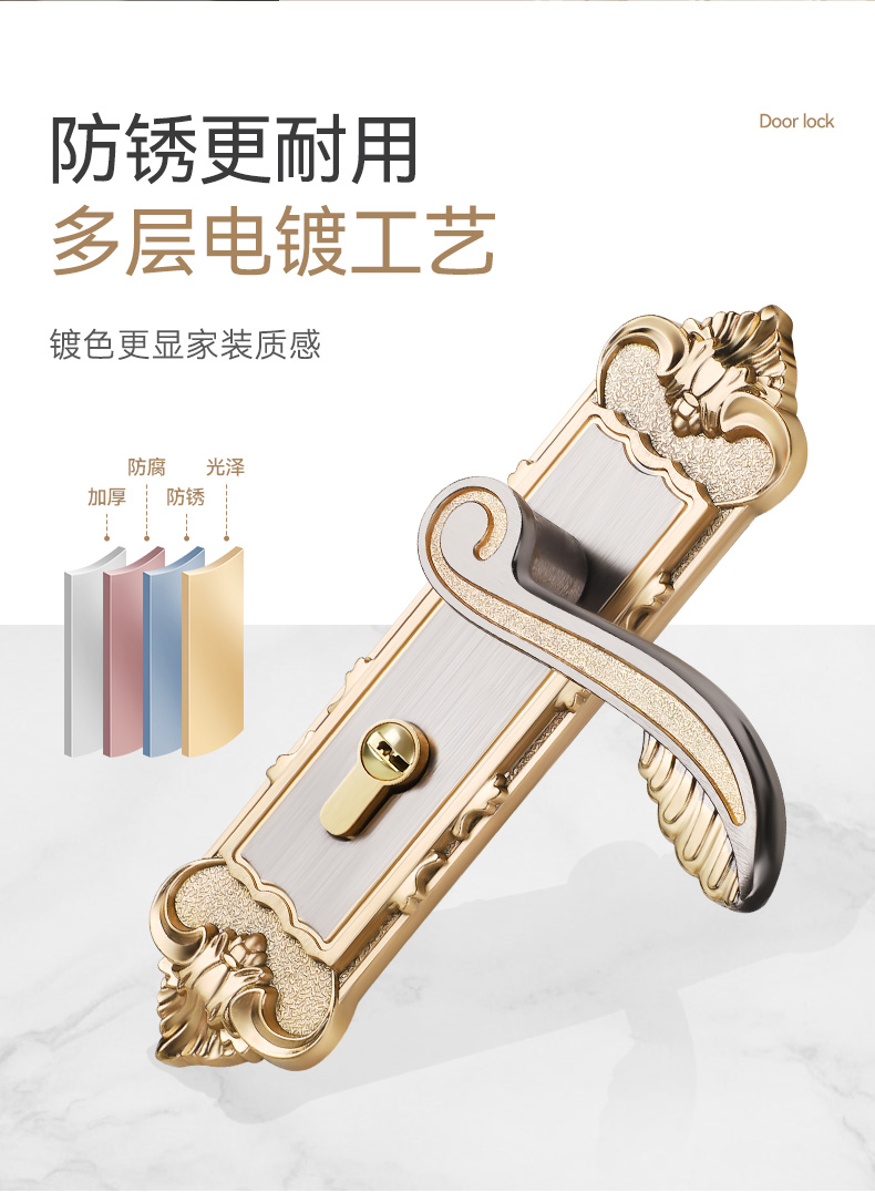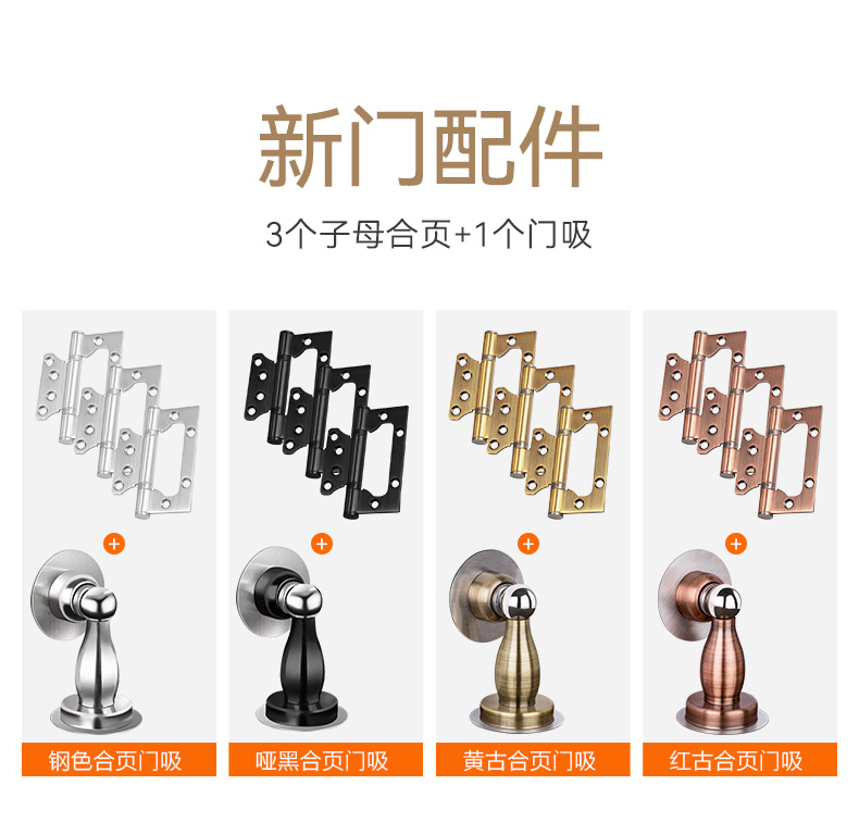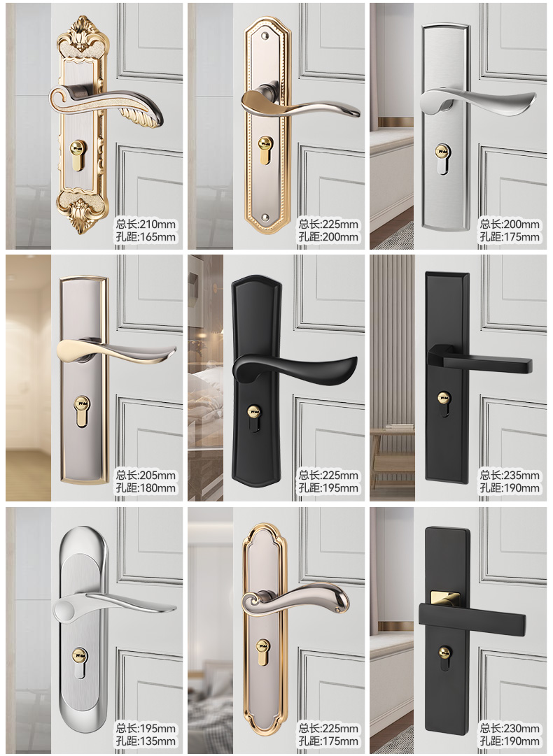 Бытовой универсальный дверной замок для спальных дверей, черный комплект из трех замков, бесшумная дверная ручка старого образца, сменный замок для старых дверей.