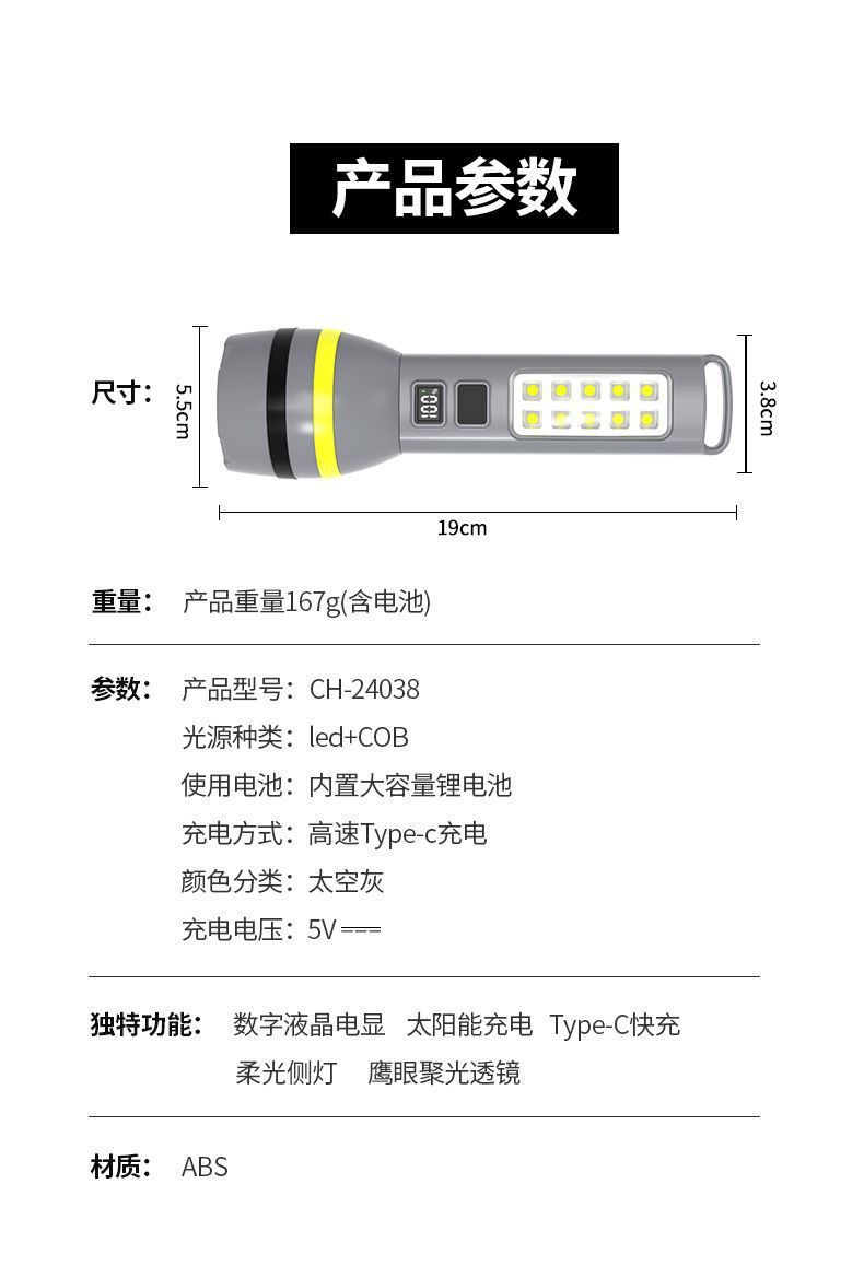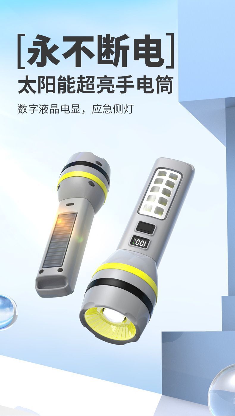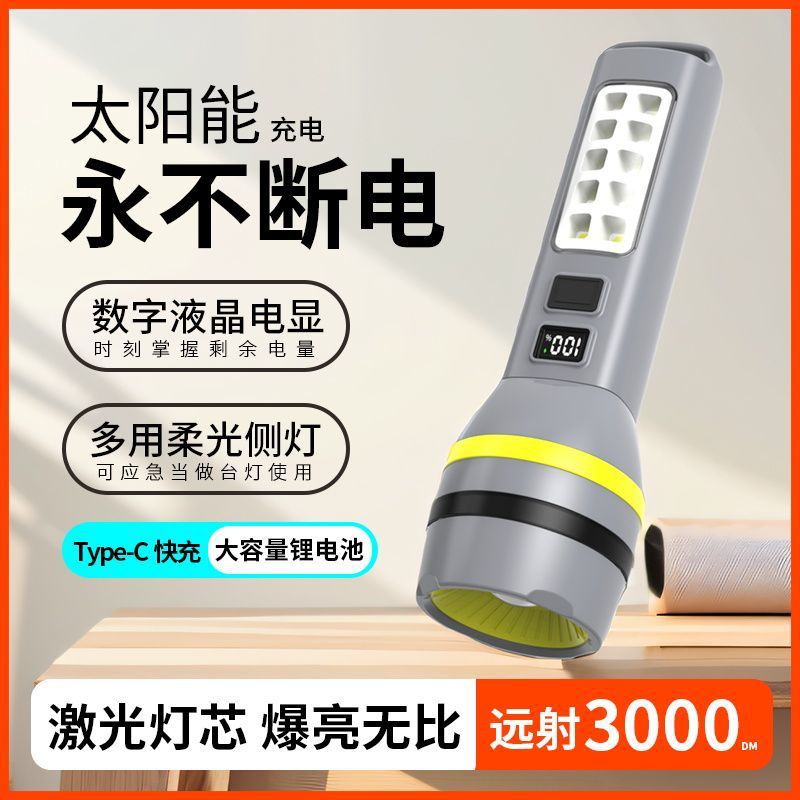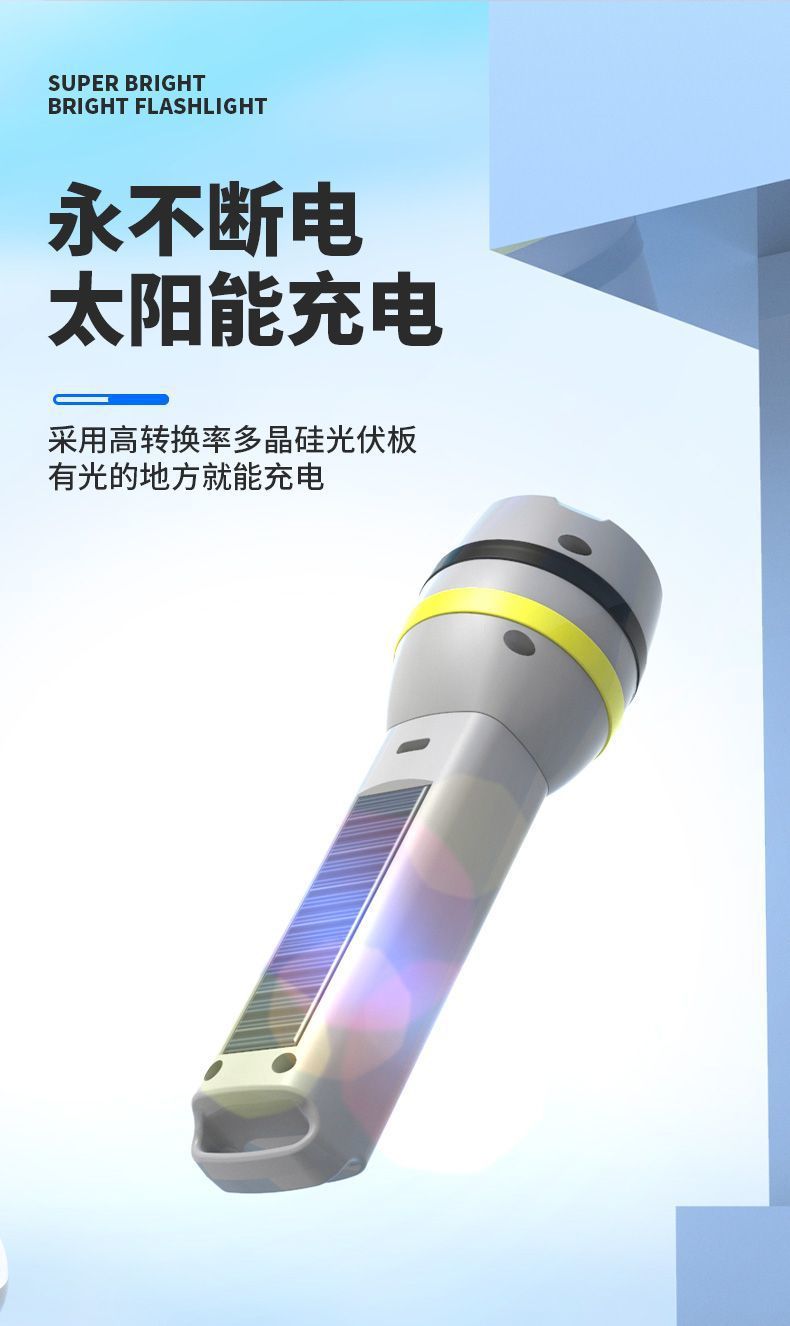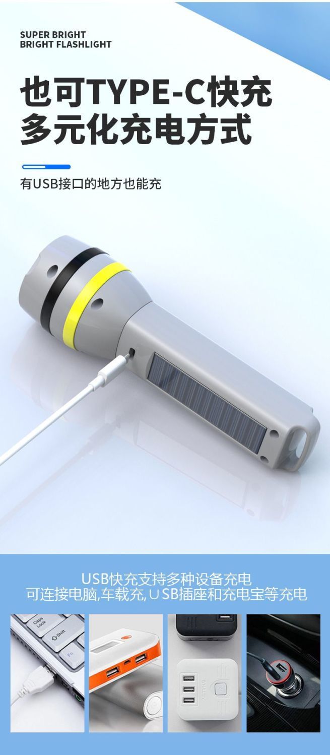 Фонарик на солнечной батарее для путешествий, кемпинга, строительной площадки, прожектор, сильный свет, перезаряжаемый, сверхдлительный режим ожидания, многофункциональная цепь подачи