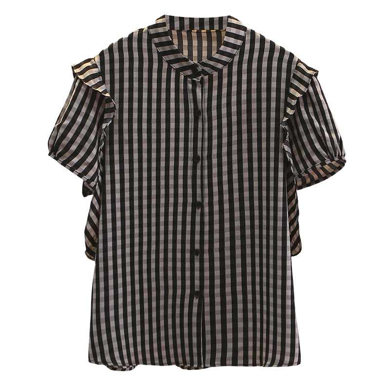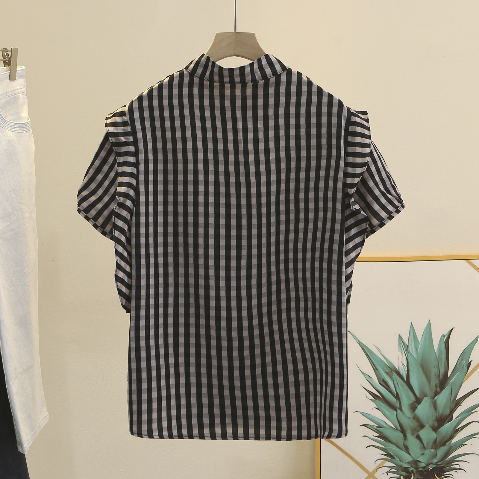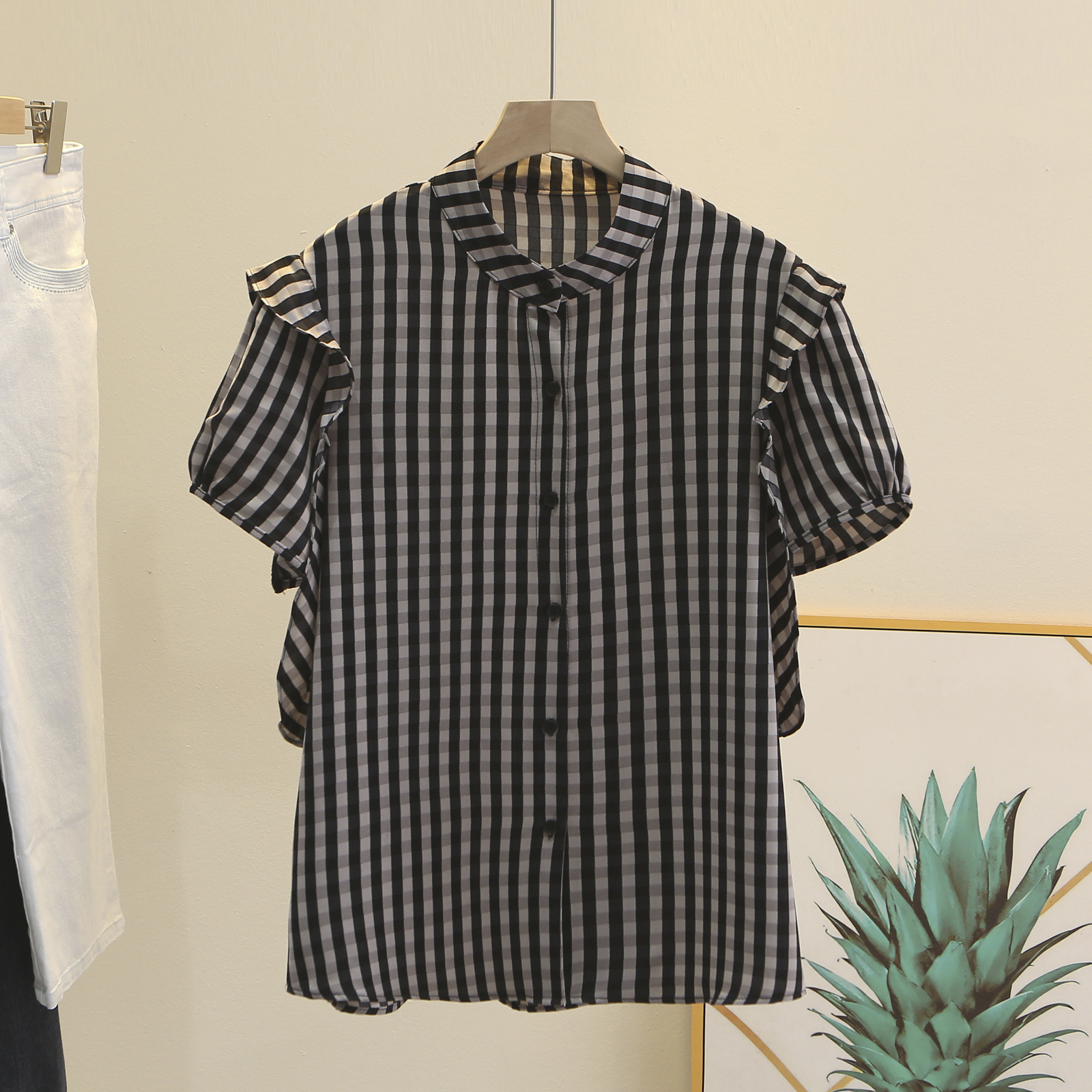Рубашка в клетку с короткими рукавами больших размеров, женская летняя новая свободная и универсальная рубашка для похудения, шикарная рубашка 8515