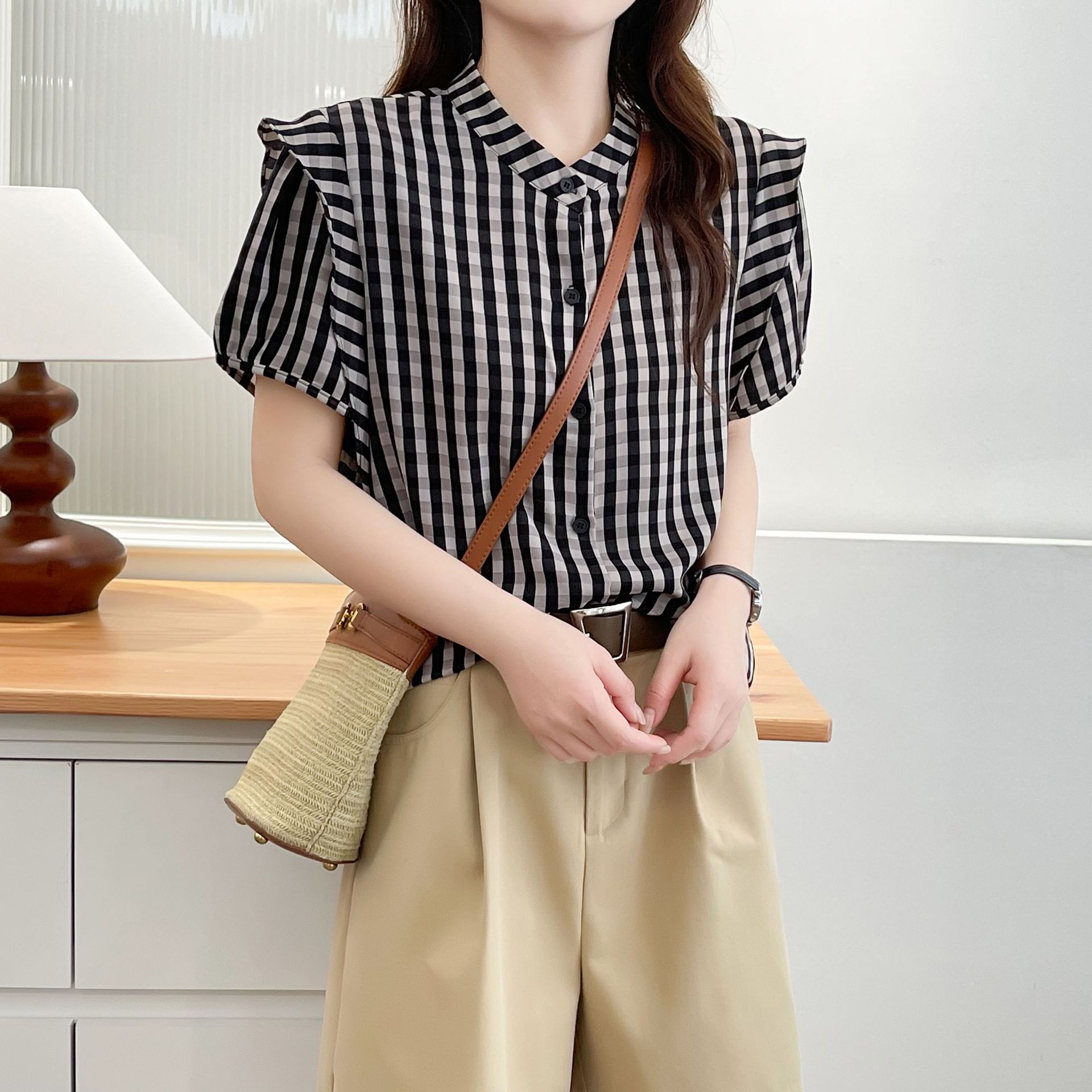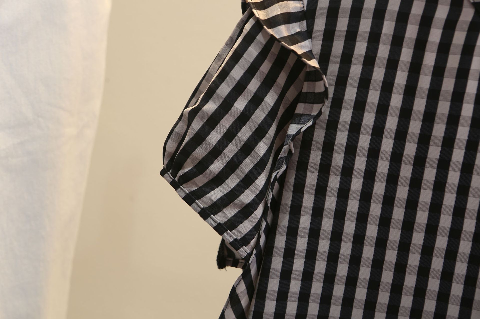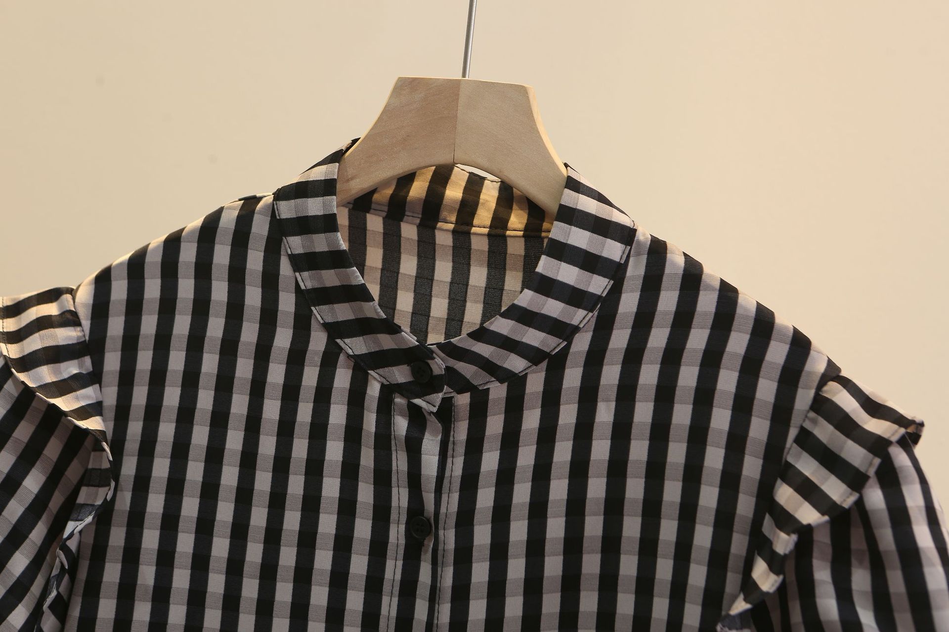 Рубашка в клетку с короткими рукавами больших размеров, женская летняя новая свободная и универсальная рубашка для похудения, шикарная рубашка 8515