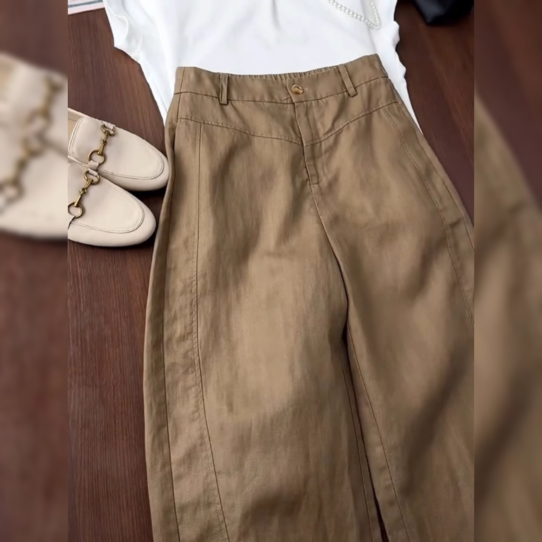 Популярные в этом году широкие брюки с высокой талией в ленивом стиле для женщин летом, коричневые свободные и удобные повседневные брюки из льна Tencel.