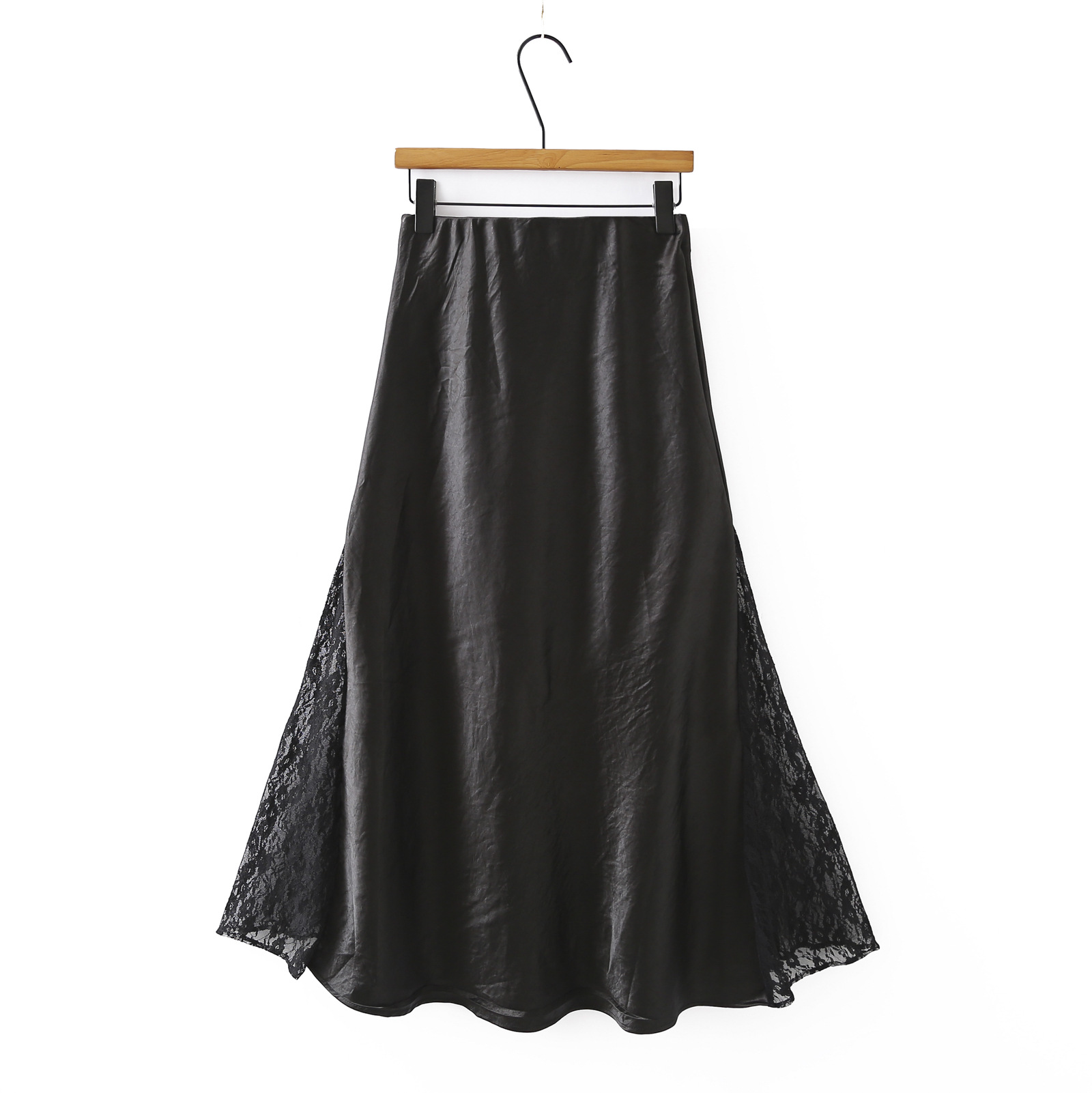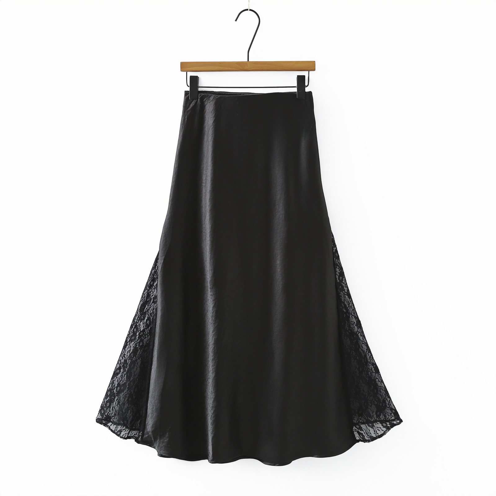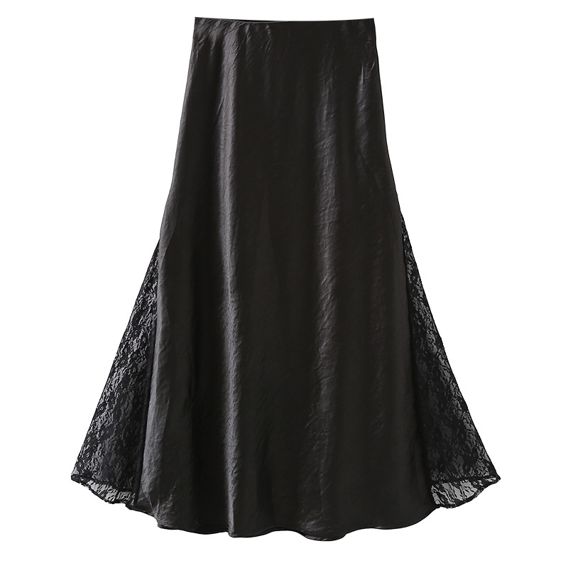 Юбка больших размеров, летняя юбка для полных MM, нишевый дизайн, кружевная юбка с высокой талией, ацетатная атласная юбка длиной до пола 445