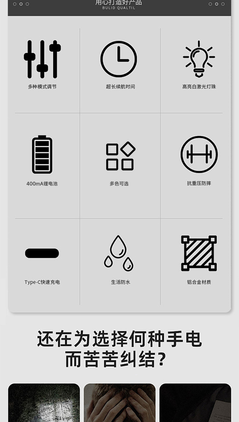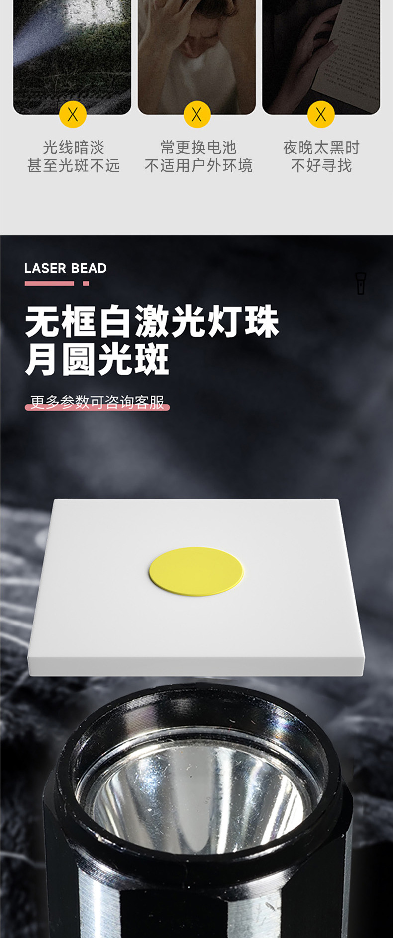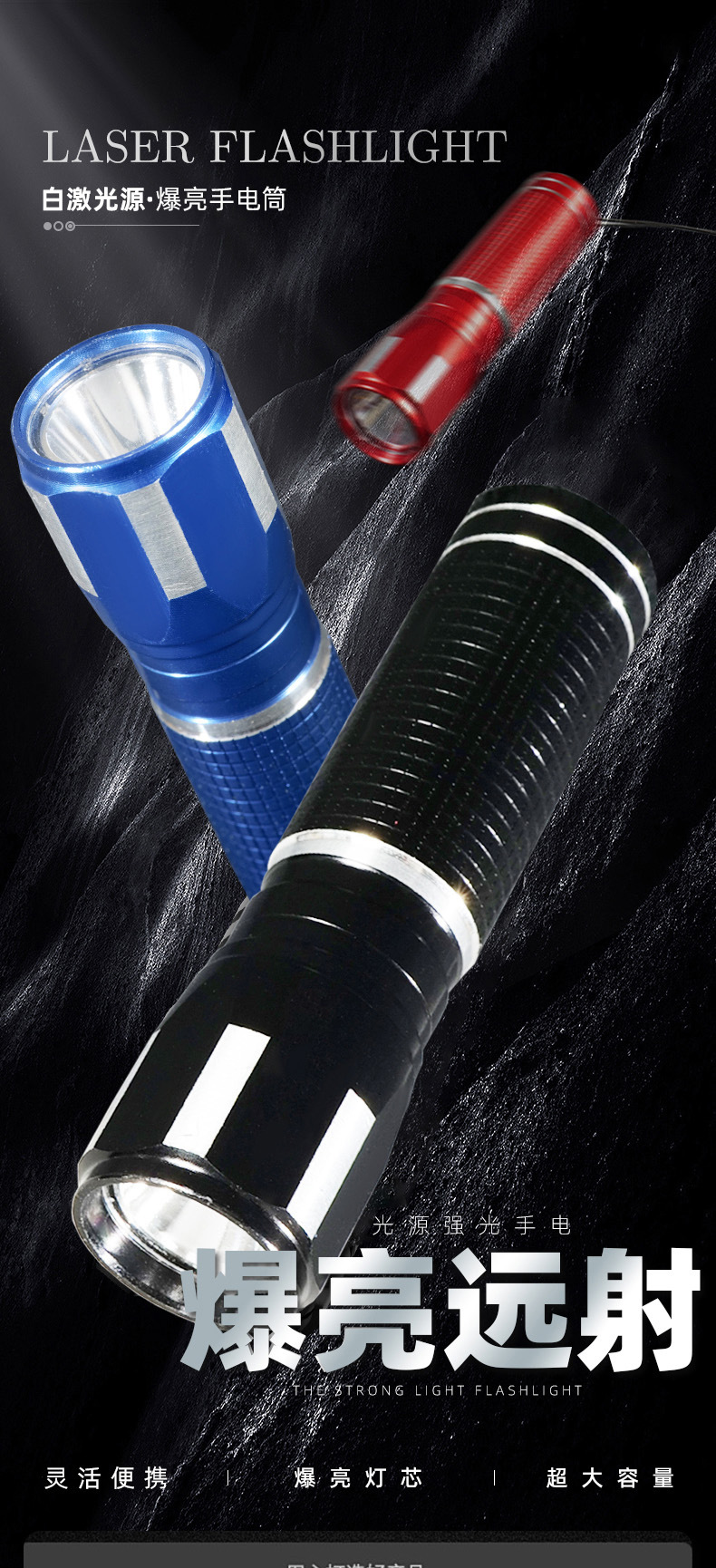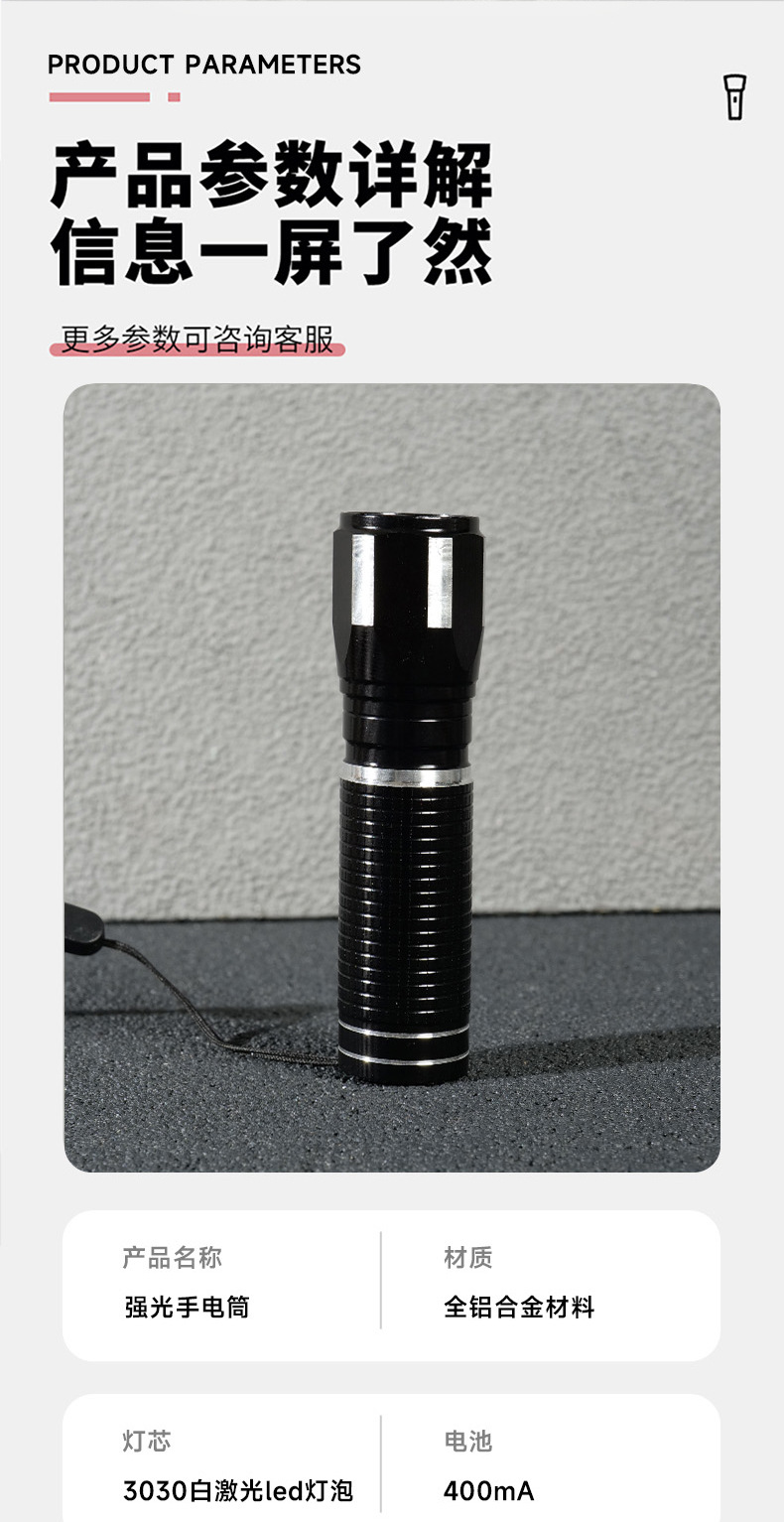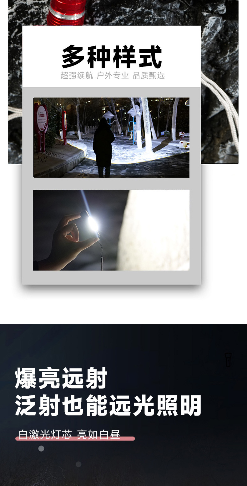 Мини-яркий фонарик, ручной мощный лазерный пистолет, сверхдлинный срок службы литиевой батареи, светодиодный перезаряжаемый уличный мощный свет