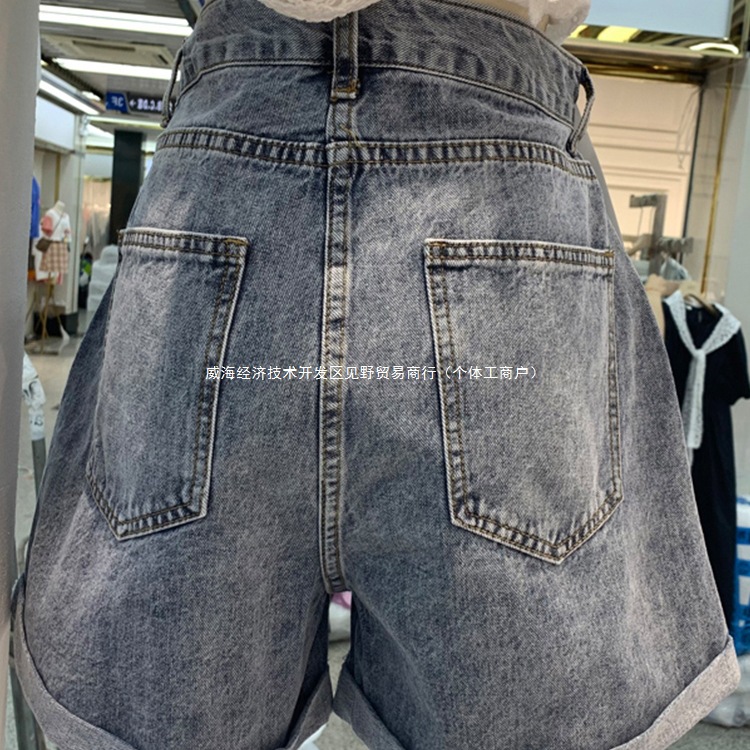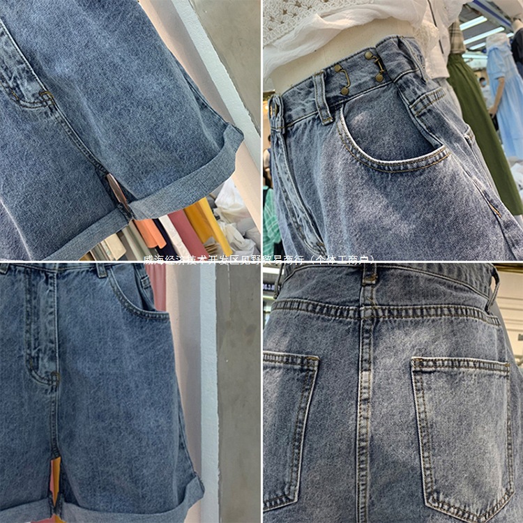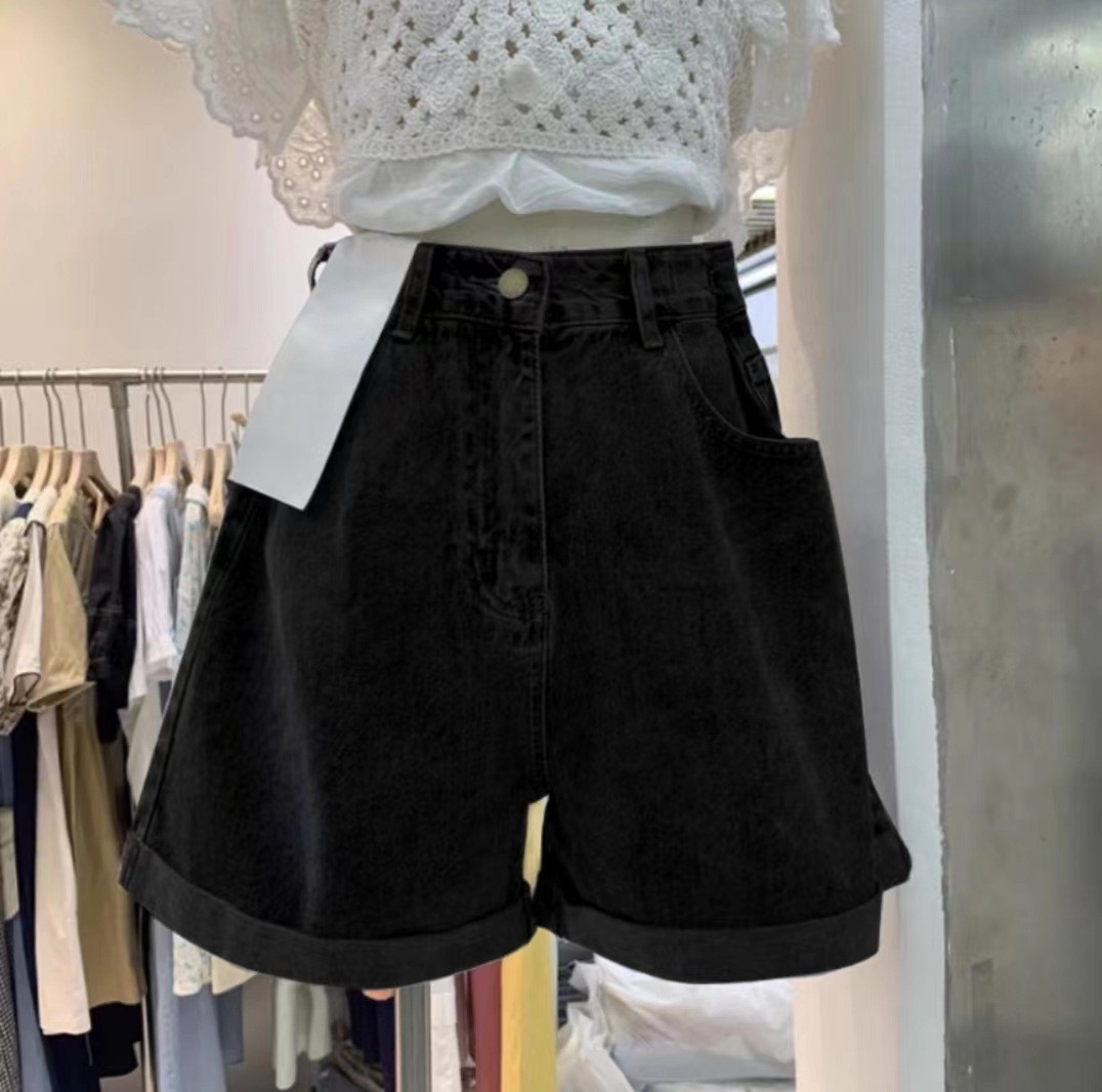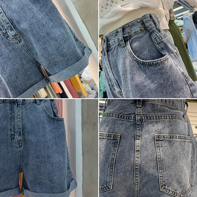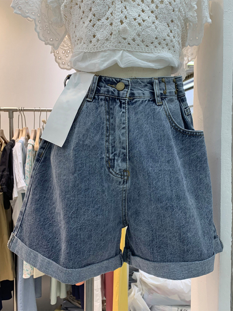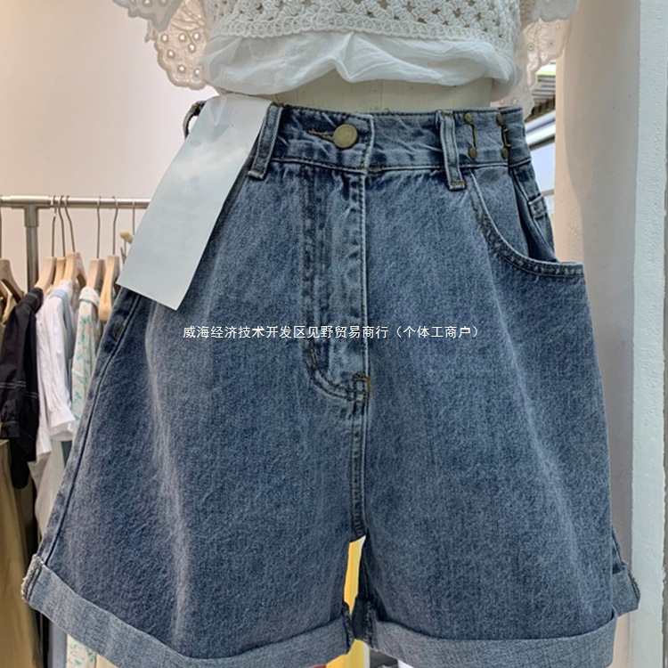 Женские летние джинсовые шорты с высокой талией в форме груши, большие размеры, широкие брюки трапециевидной формы с завитыми широкими штанинами и толстыми бедрами.