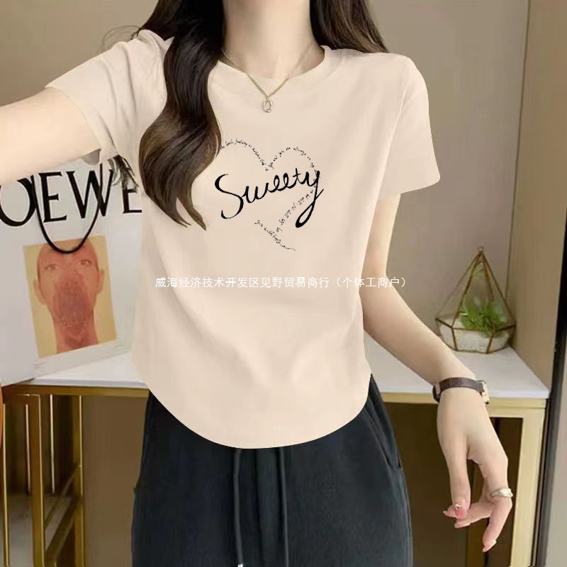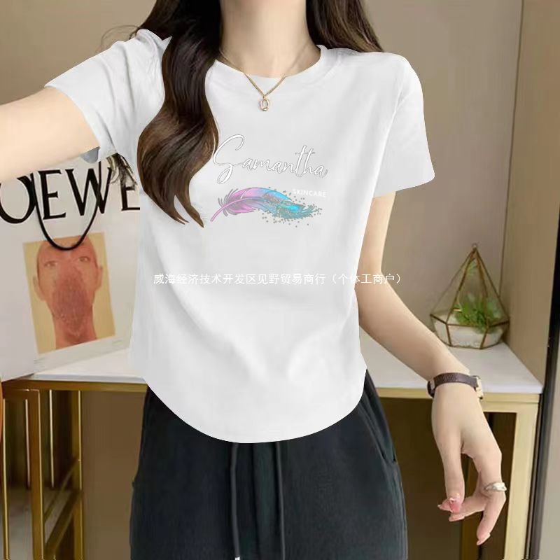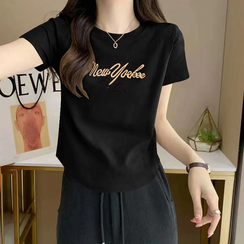 Футболка с короткими рукавами для маленьких людей, женский короткий асимметричный топ, закрывающий живот, летняя тонкая облегающая хлопковая футболка.