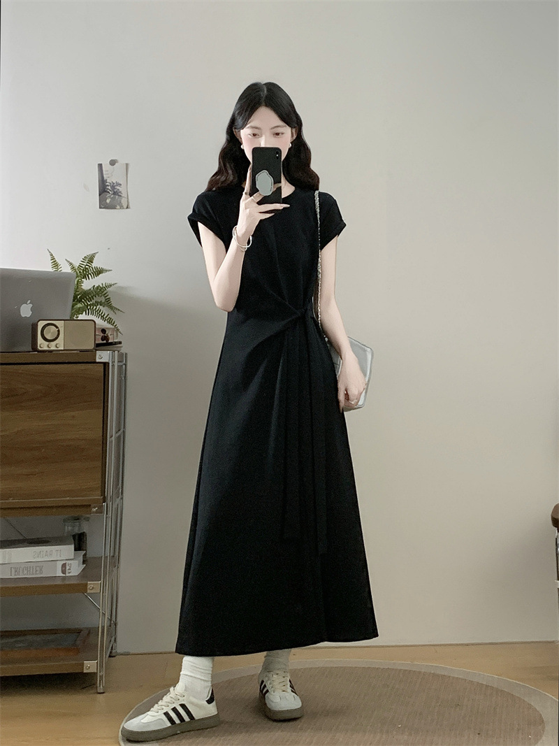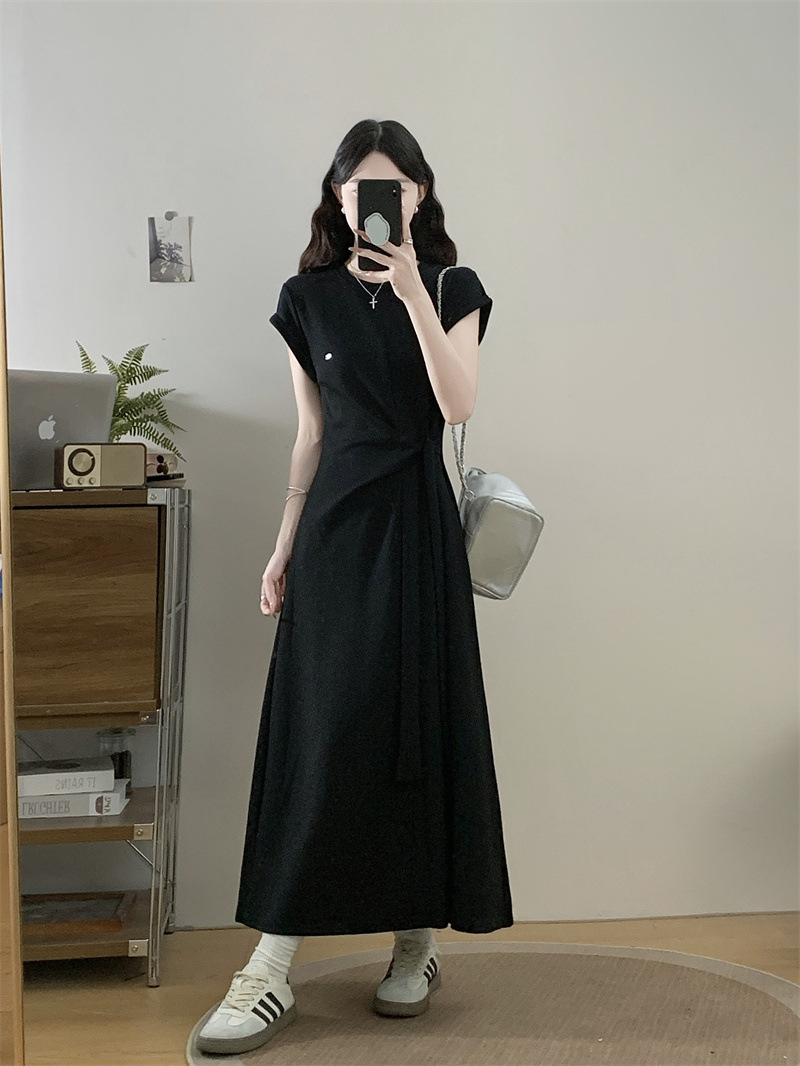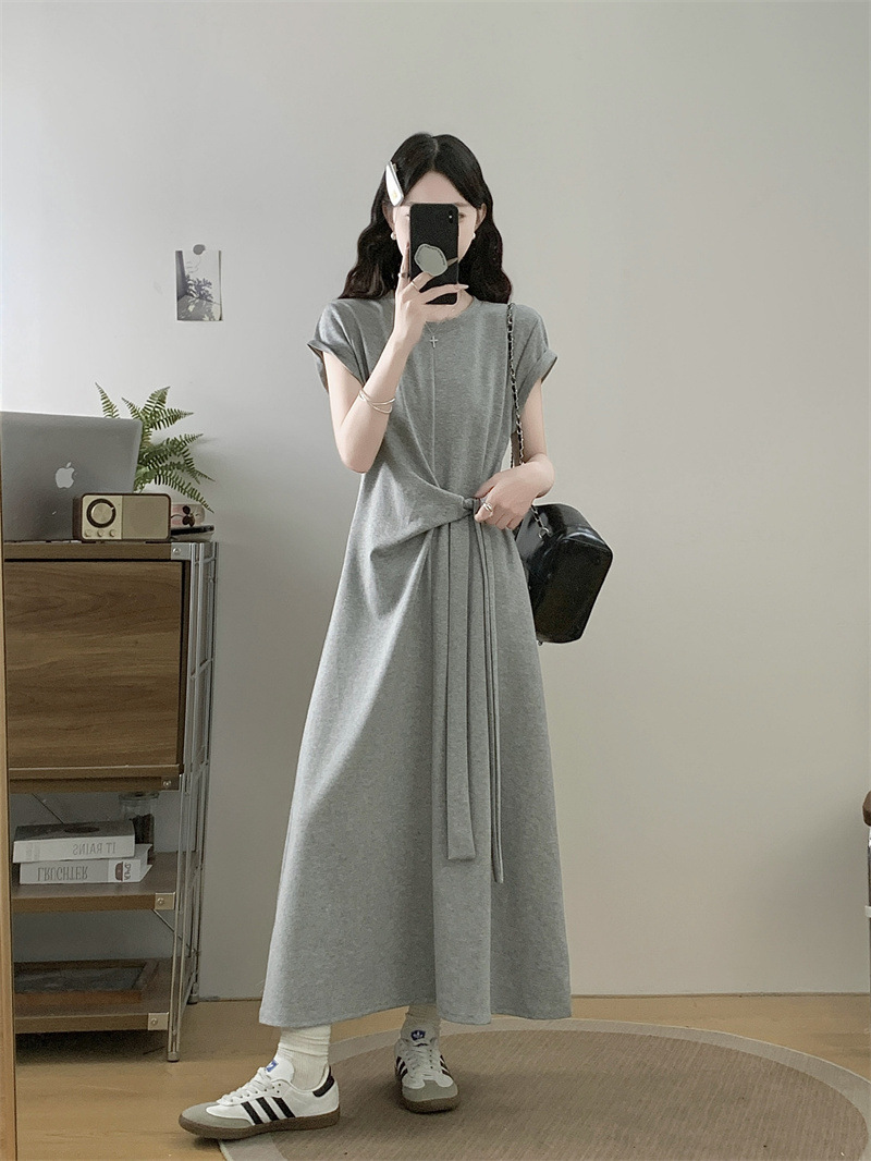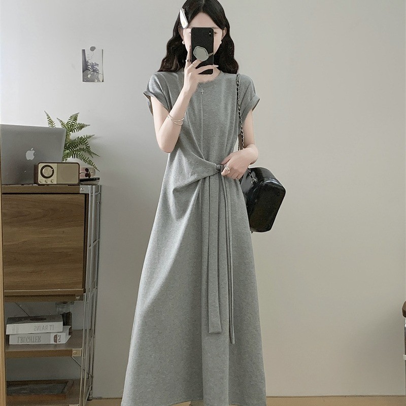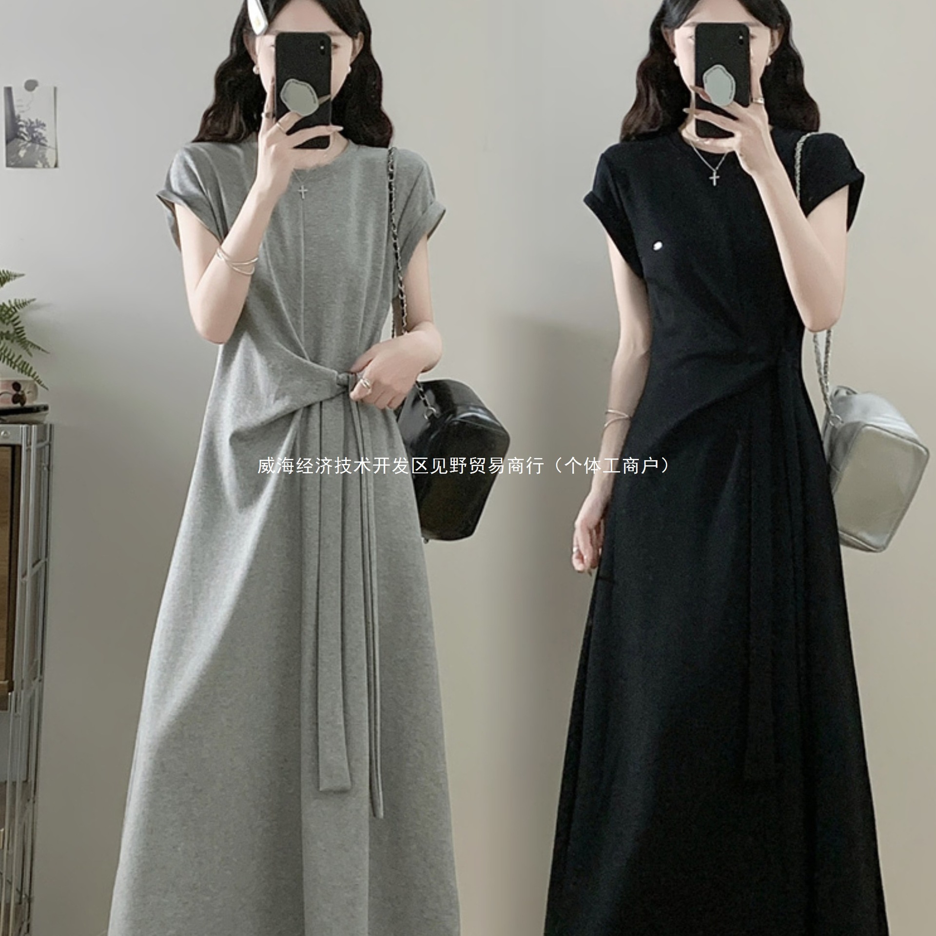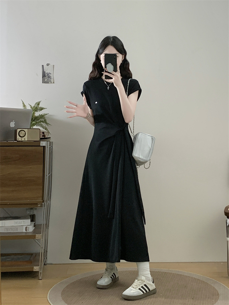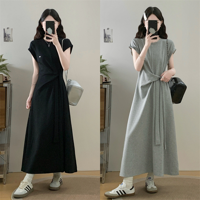 Модный дизайн, плиссированная футболка с короткими рукавами и шнуровкой, длинное женское платье, летнее платье больших размеров, подчеркивающее талию.
