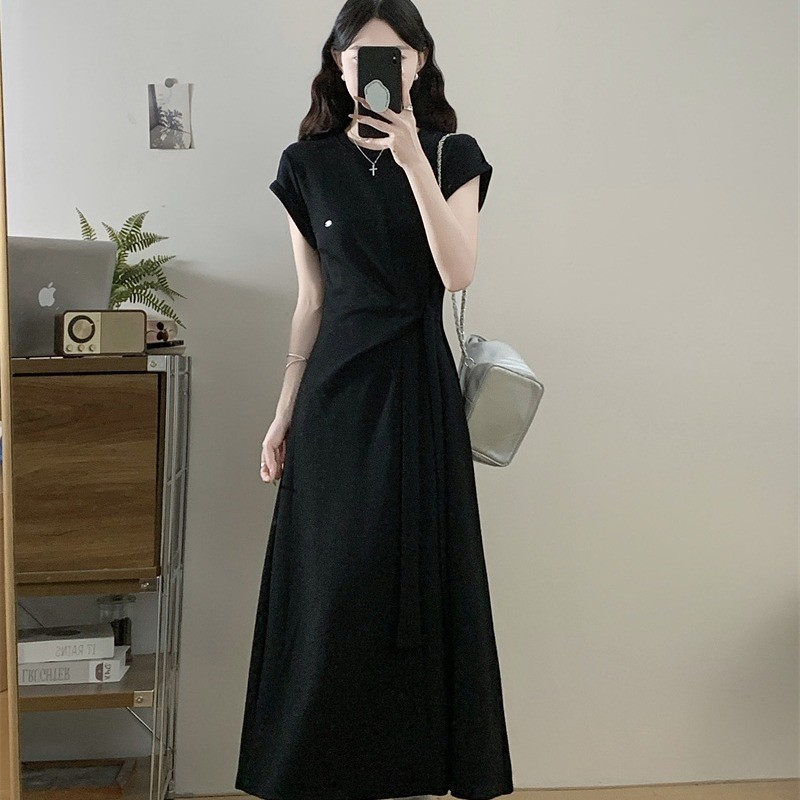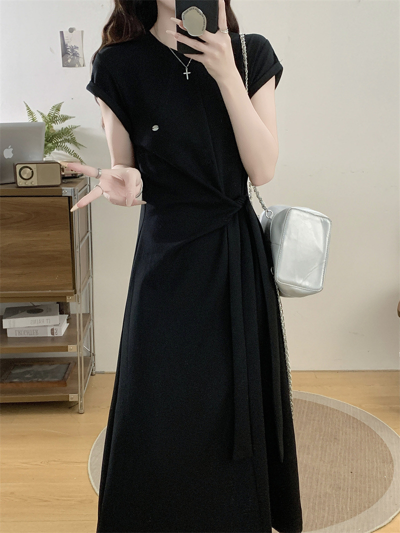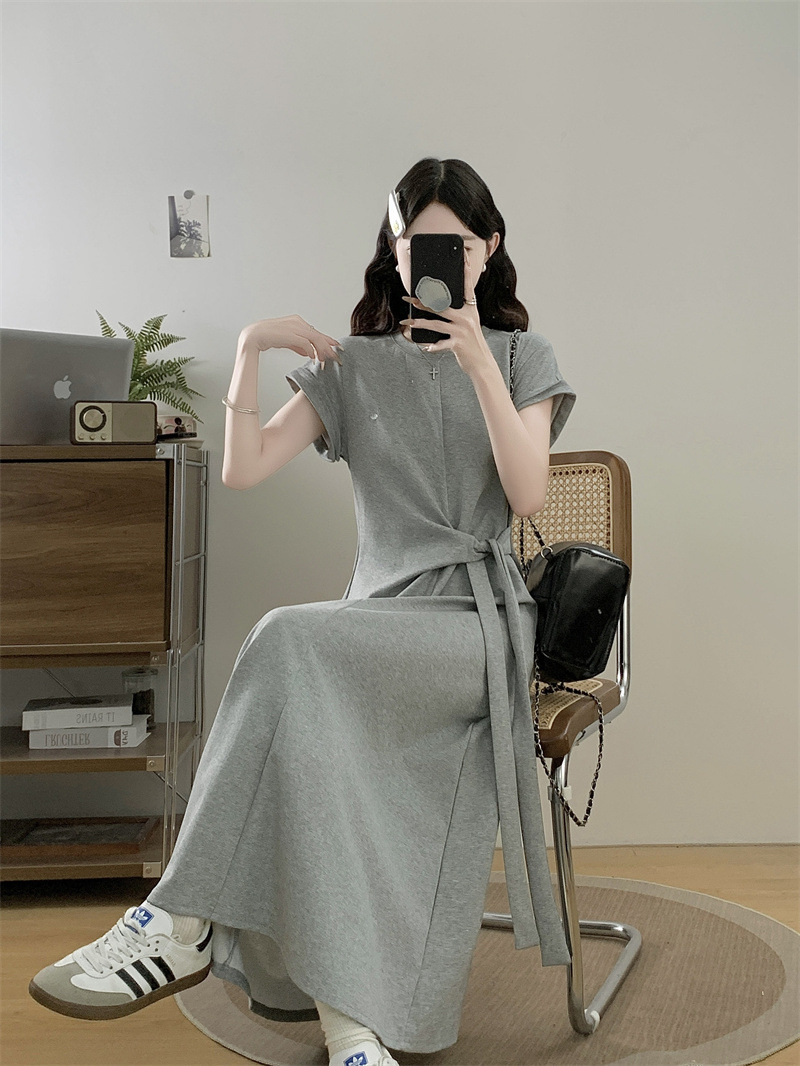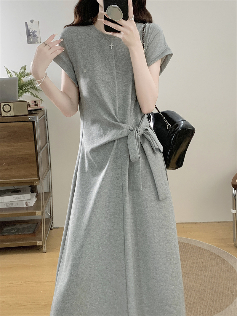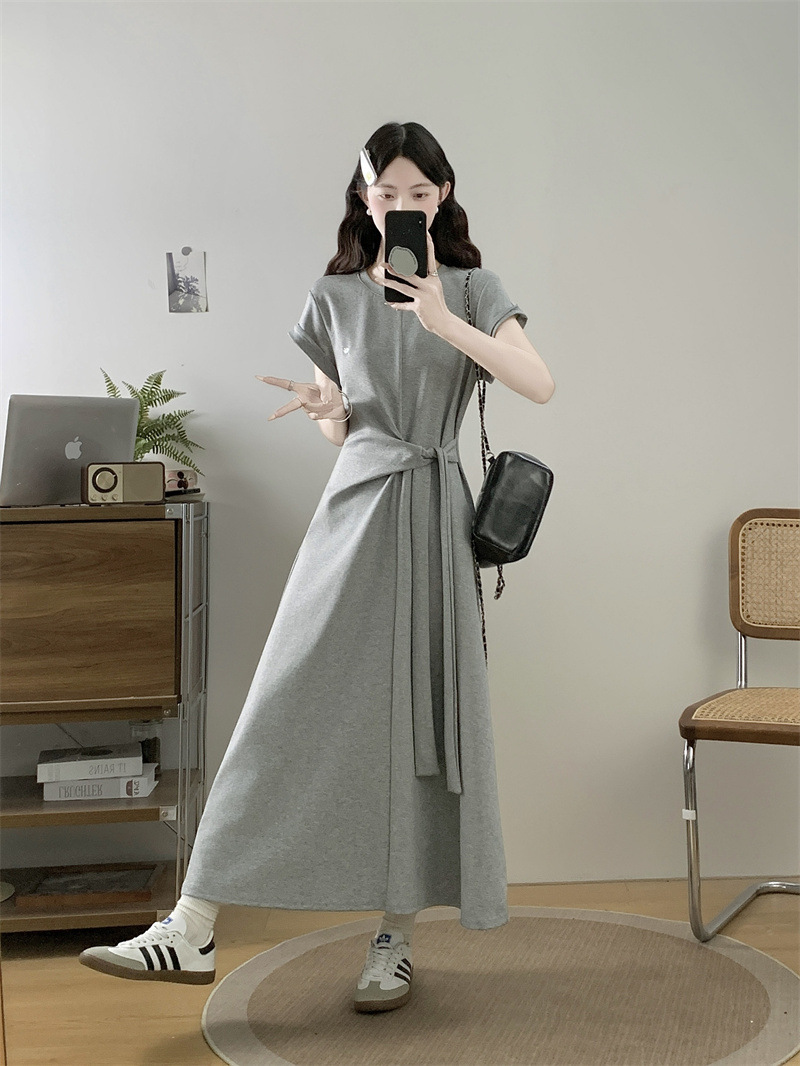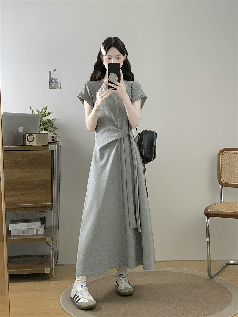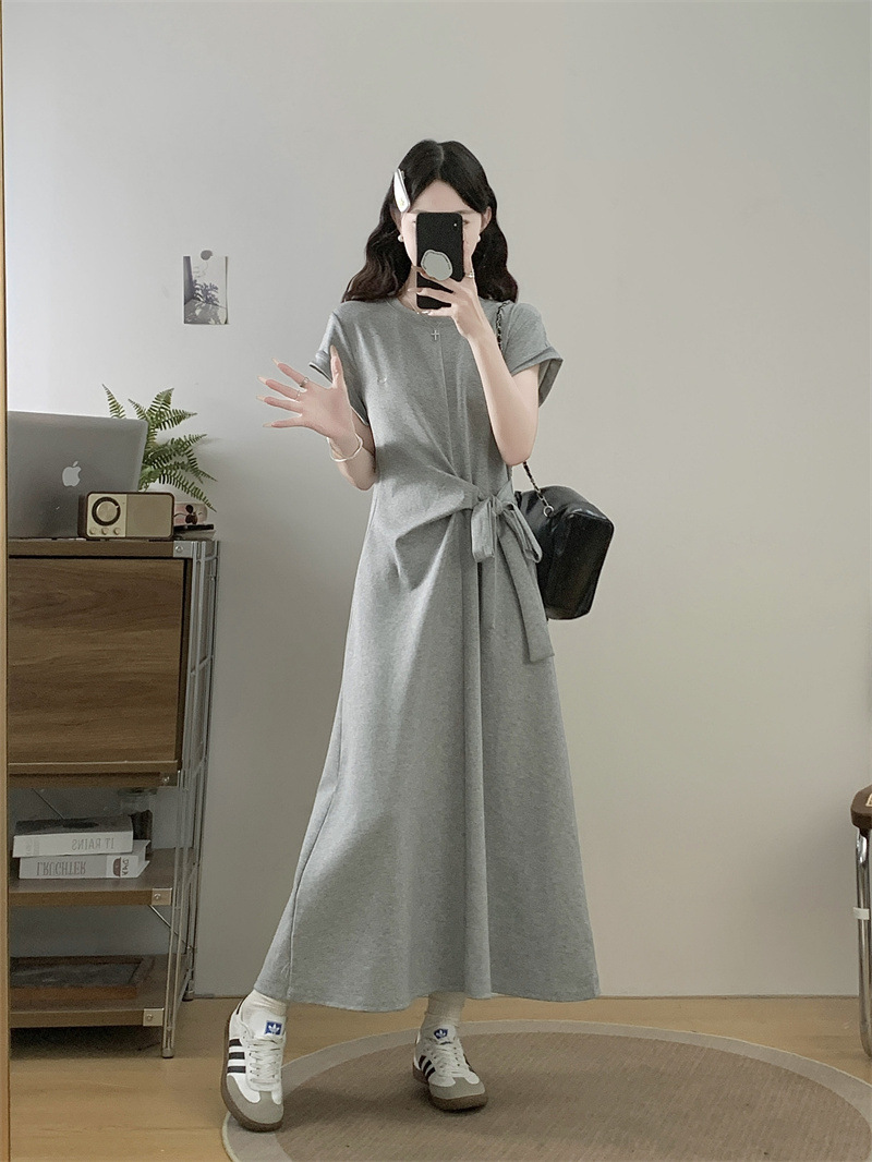 Модный дизайн, плиссированная футболка с короткими рукавами и шнуровкой, длинное женское платье, летнее платье больших размеров, подчеркивающее талию.