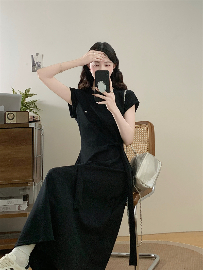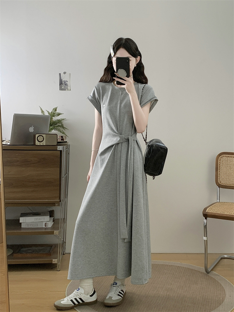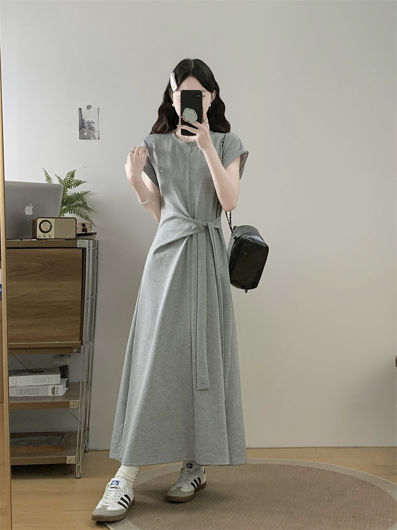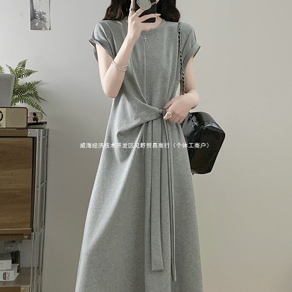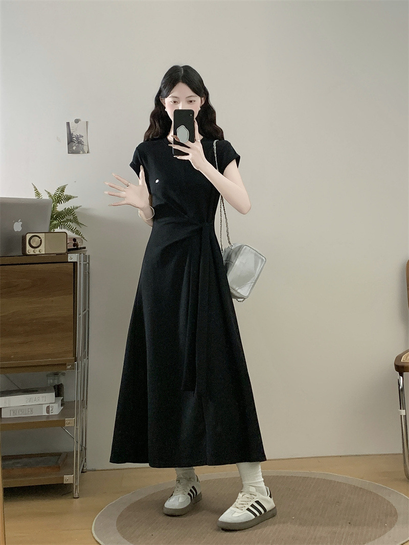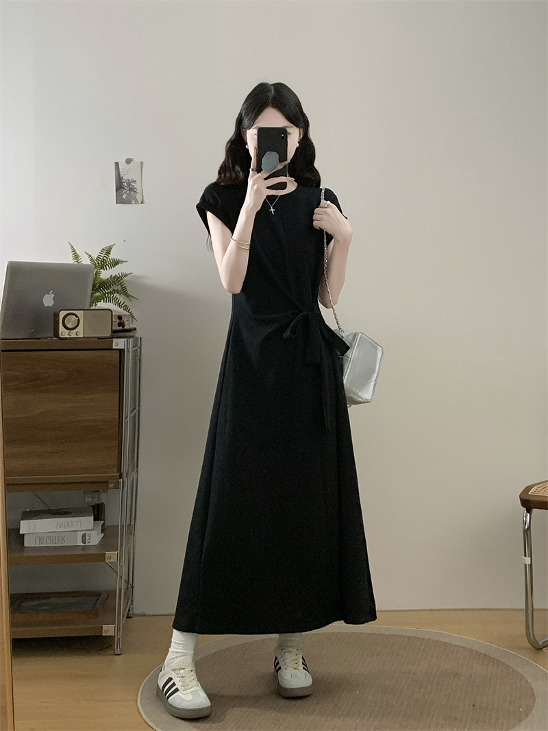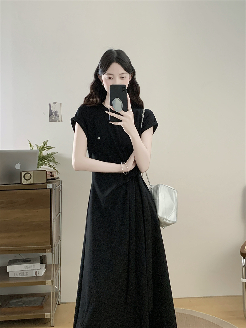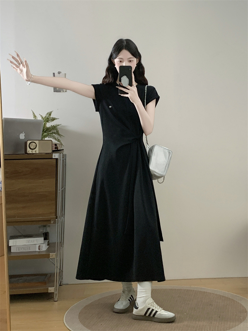 Модный дизайн, плиссированная футболка с короткими рукавами и шнуровкой, длинное женское платье, летнее платье больших размеров, подчеркивающее талию.
