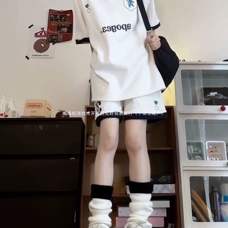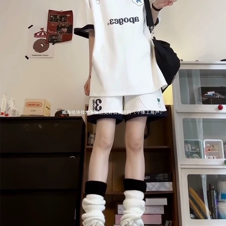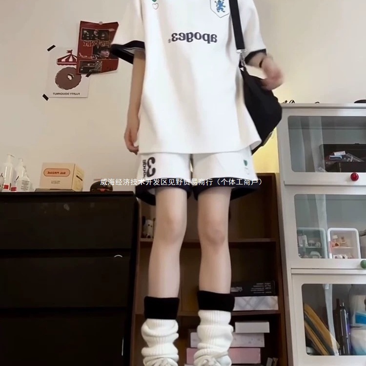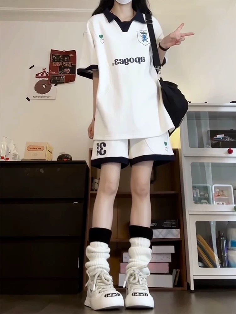 Спортивный костюм в студенческом стиле для летних студенток, свободная модная рубашка-поло в корейском стиле, шорты с короткими рукавами, повседневный комплект из двух предметов