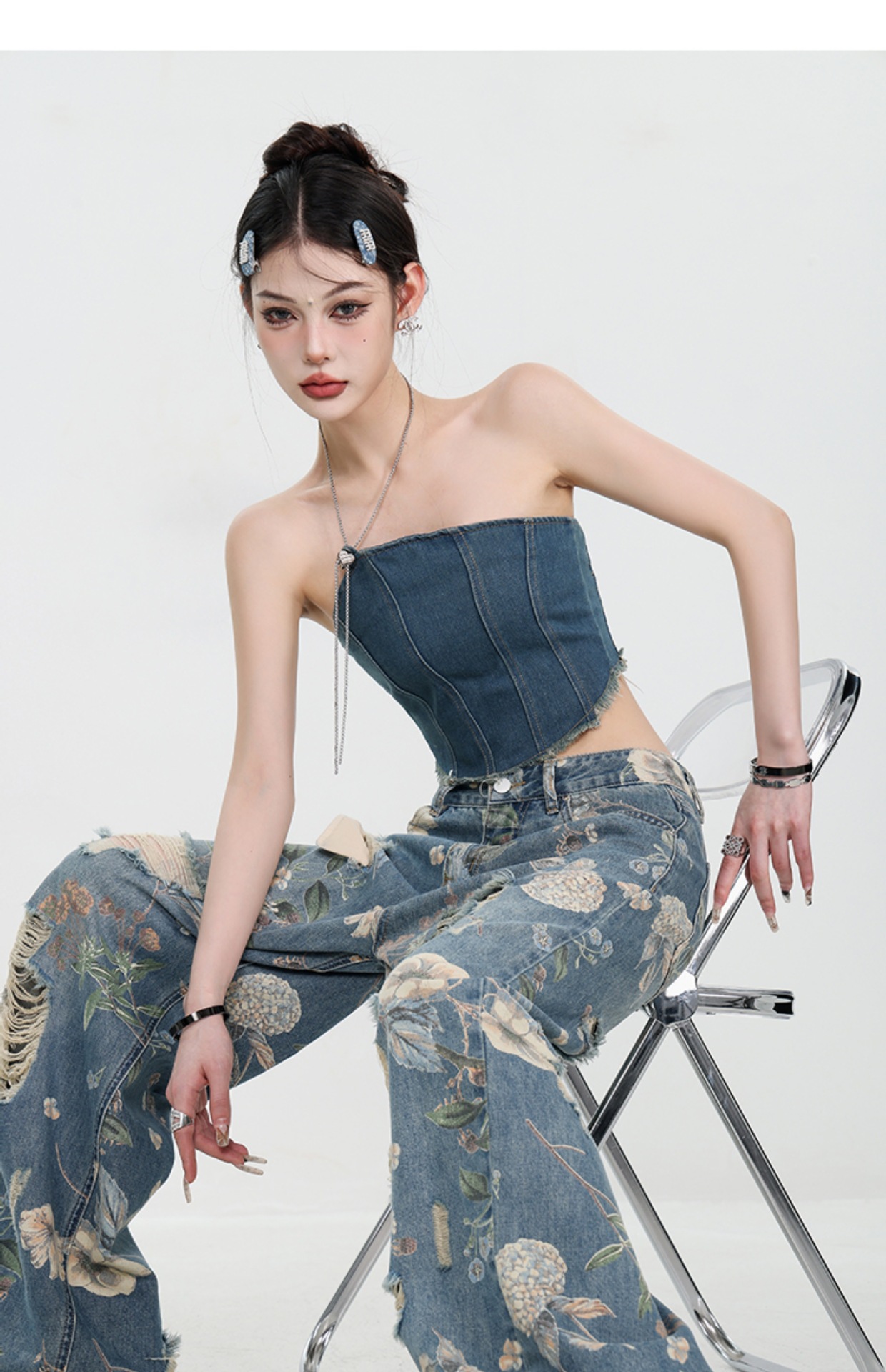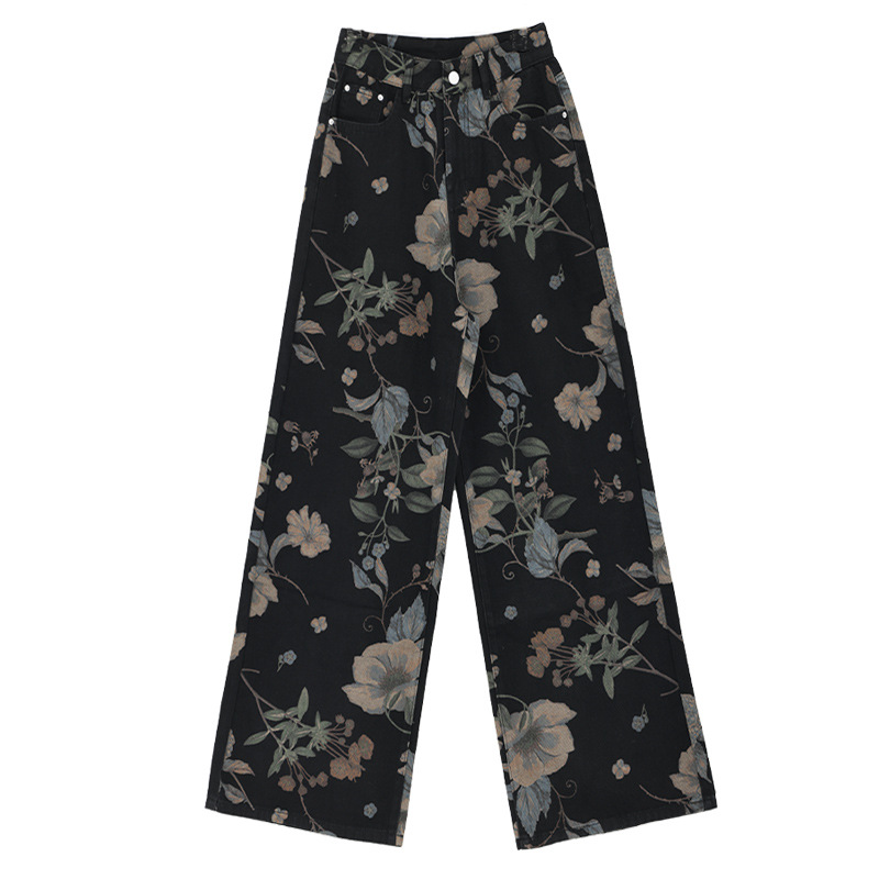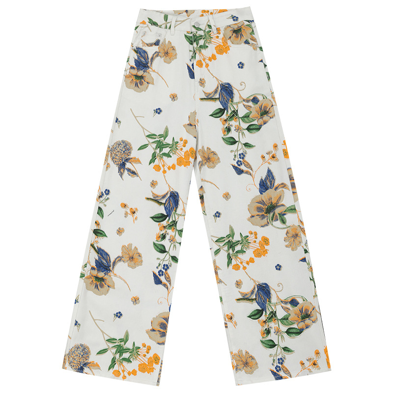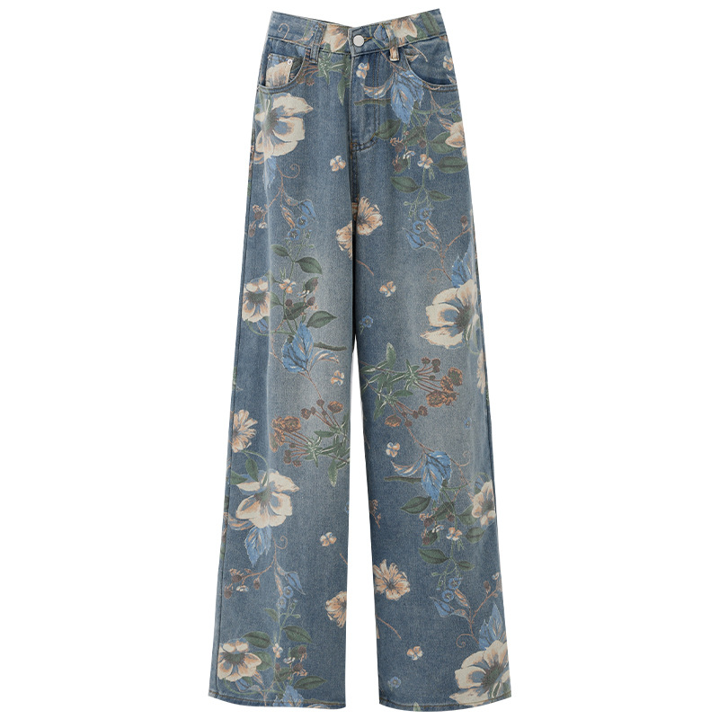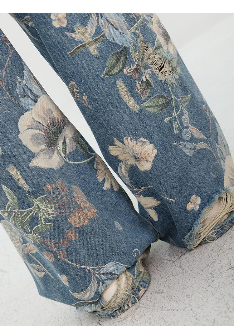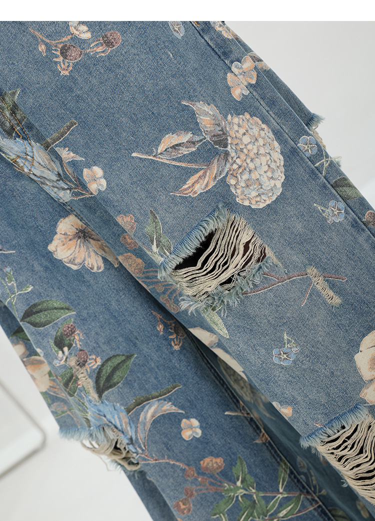 ABWEAR оригинальные летние новые рваные джинсы в американском стиле ретро с принтом, женские свободные прямые широкие брюки длиной до пола