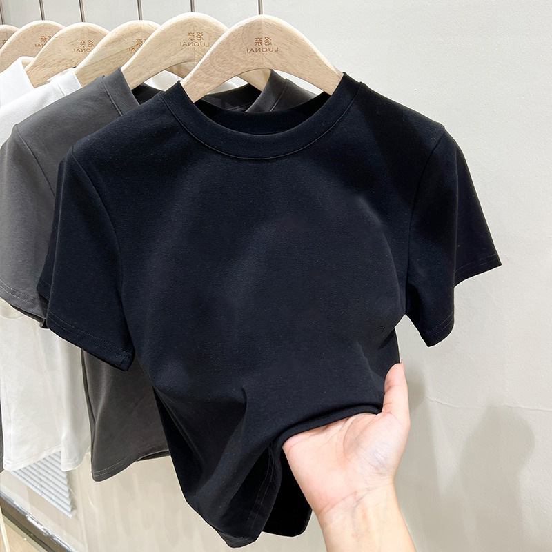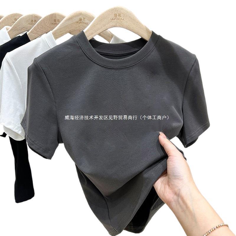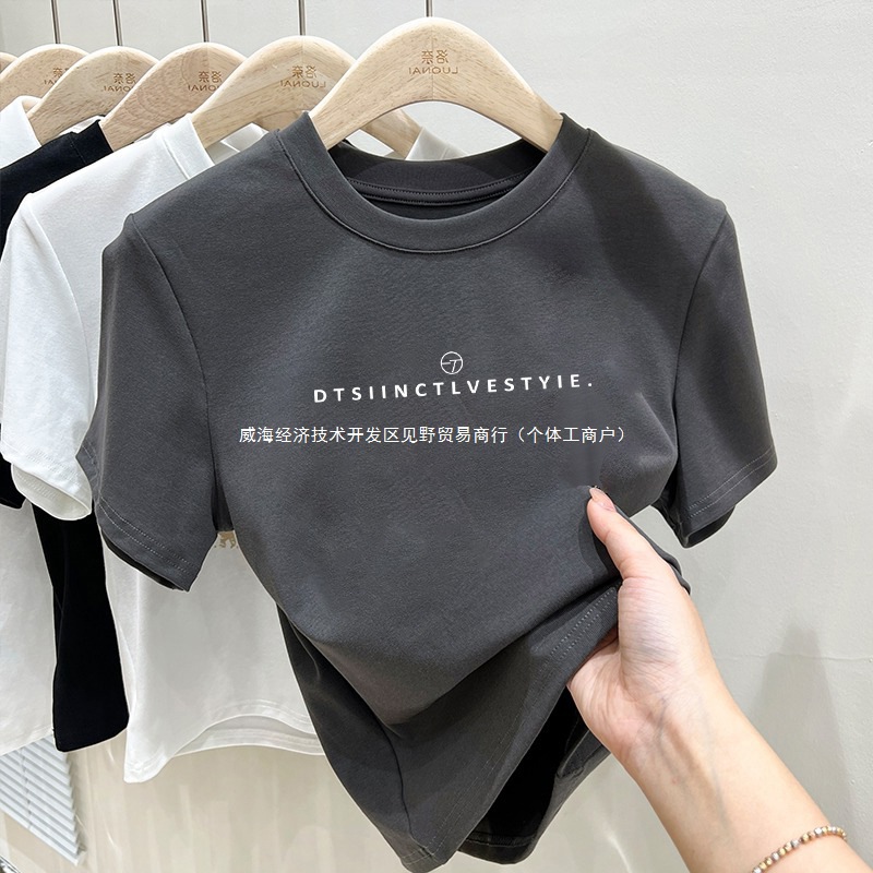 Темно-серая футболка с короткими рукавами на правое плечо, женская летняя новая облегающая хлопковая футболка 2025 года, красивый модный топ
