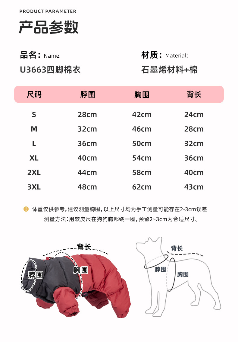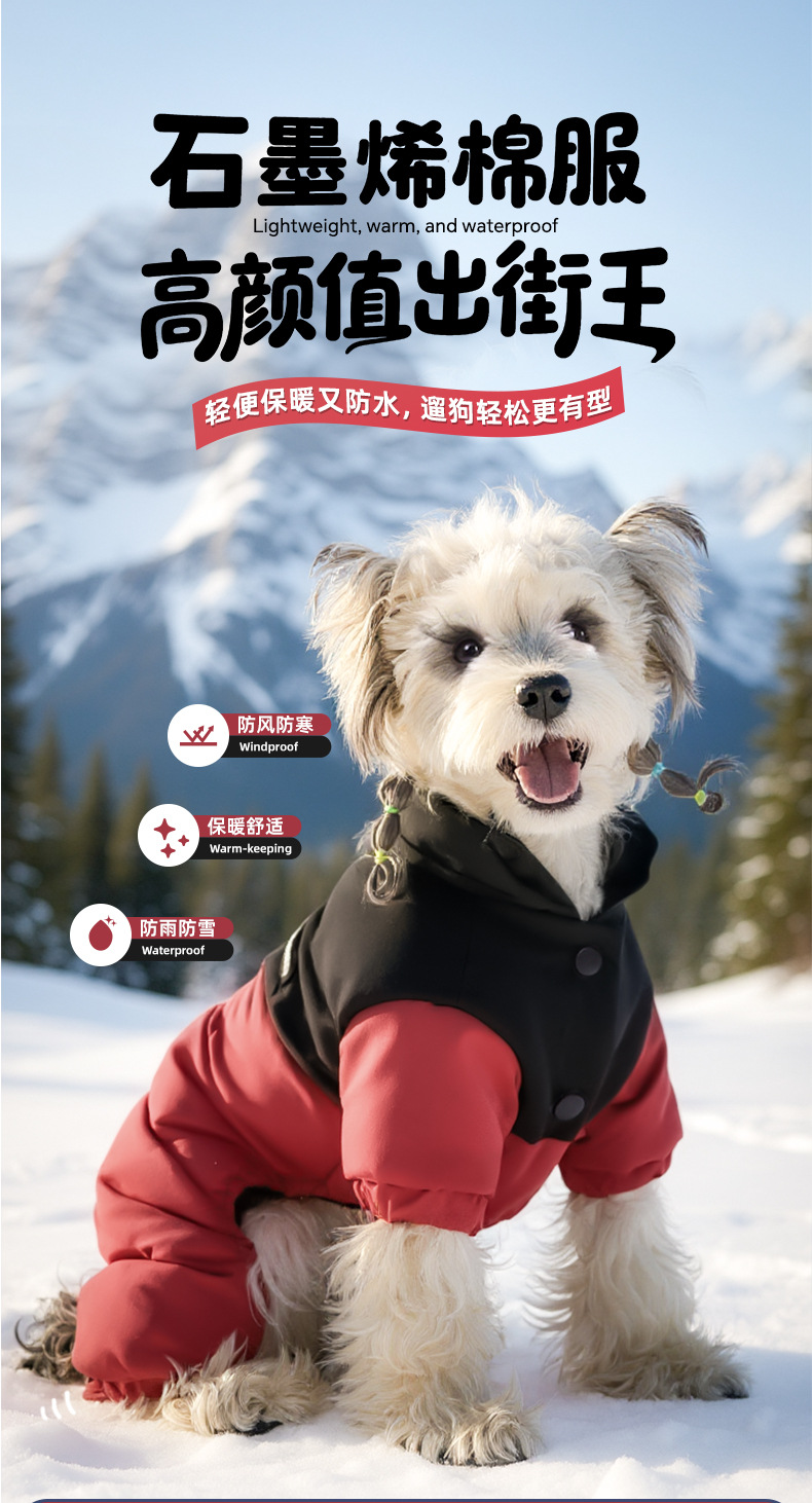 Хлопковое пальто для домашних животных, зимнее теплое и утолщенное хлопковое пальто на четырех ногах, ветрозащитная одежда для собак из графена, водонепроницаемый Тедди с тягой