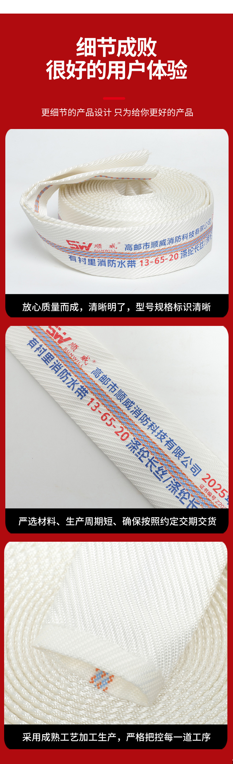 Пожарный рукав 13-65-20, полиуретановый, тип 13, усиленный, полиэфирный