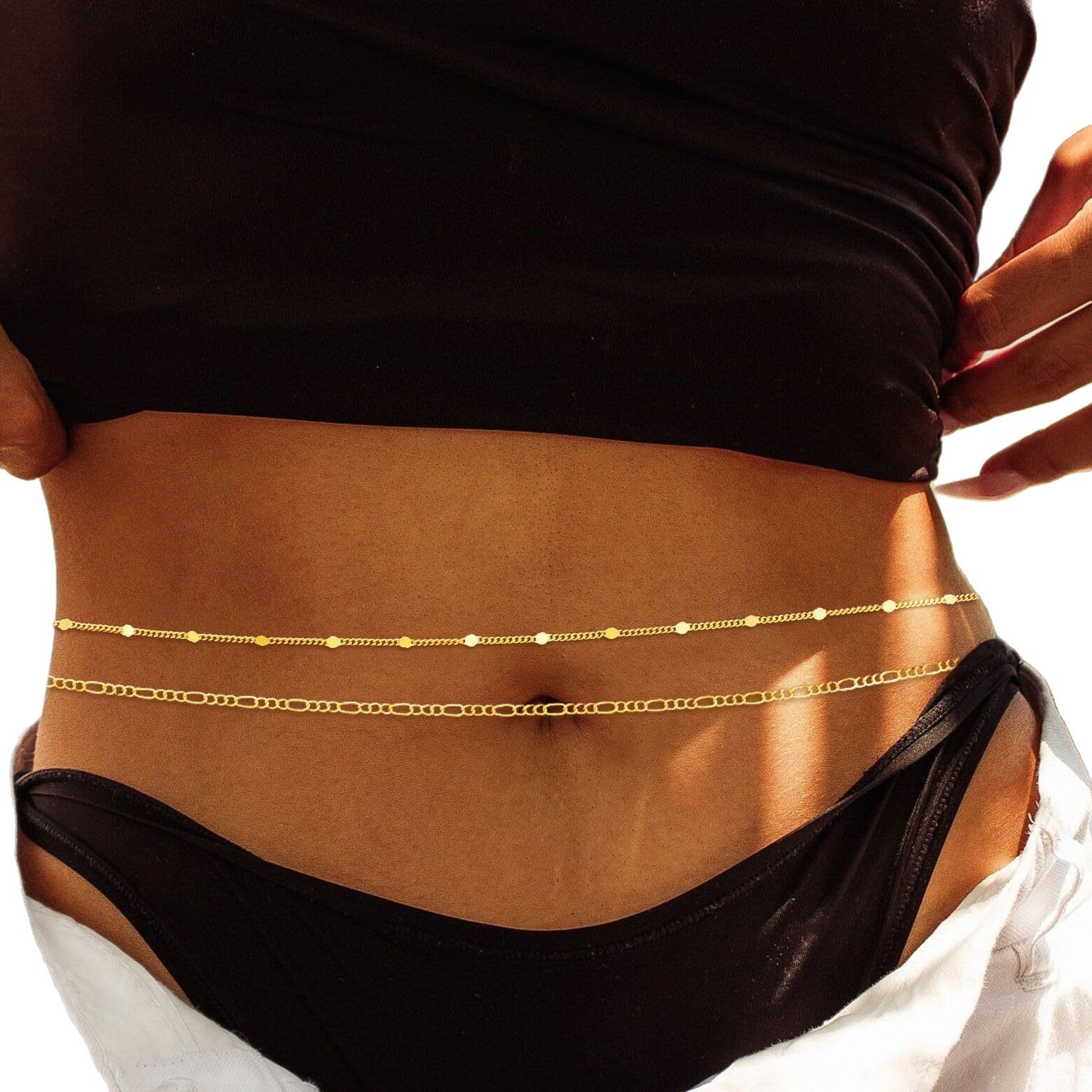 Европейская и американская трансграничная ювелирная мода, большая цепочка из шариковых бусин, двухслойная поясная цепочка, летняя пляжная металлическая цепочка для тела для женщин