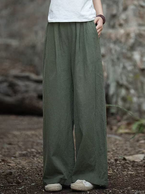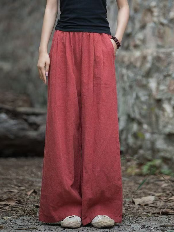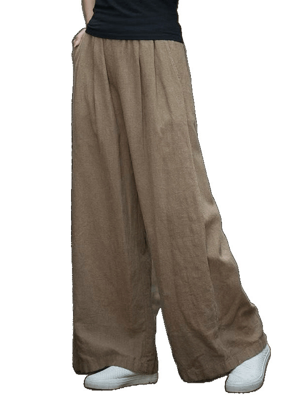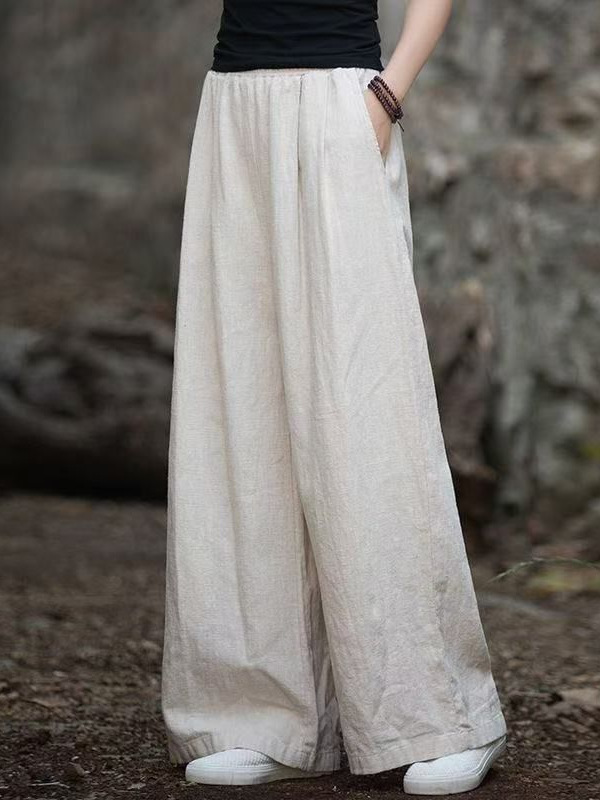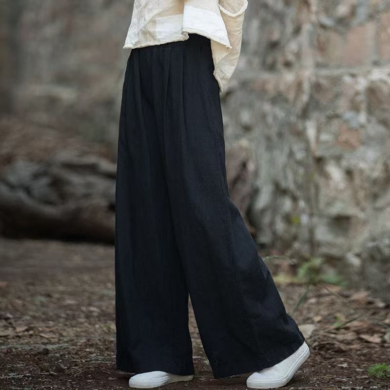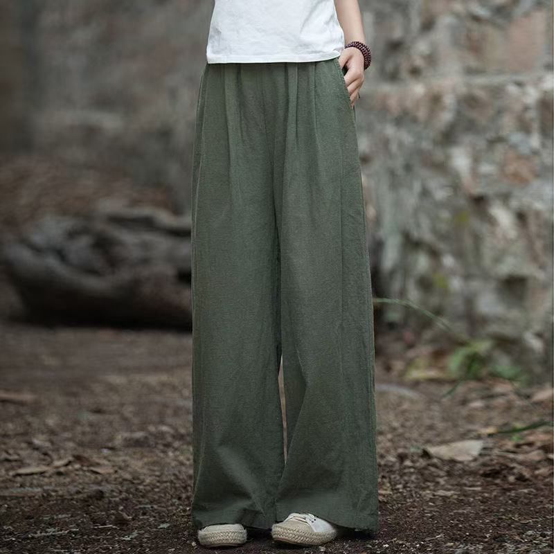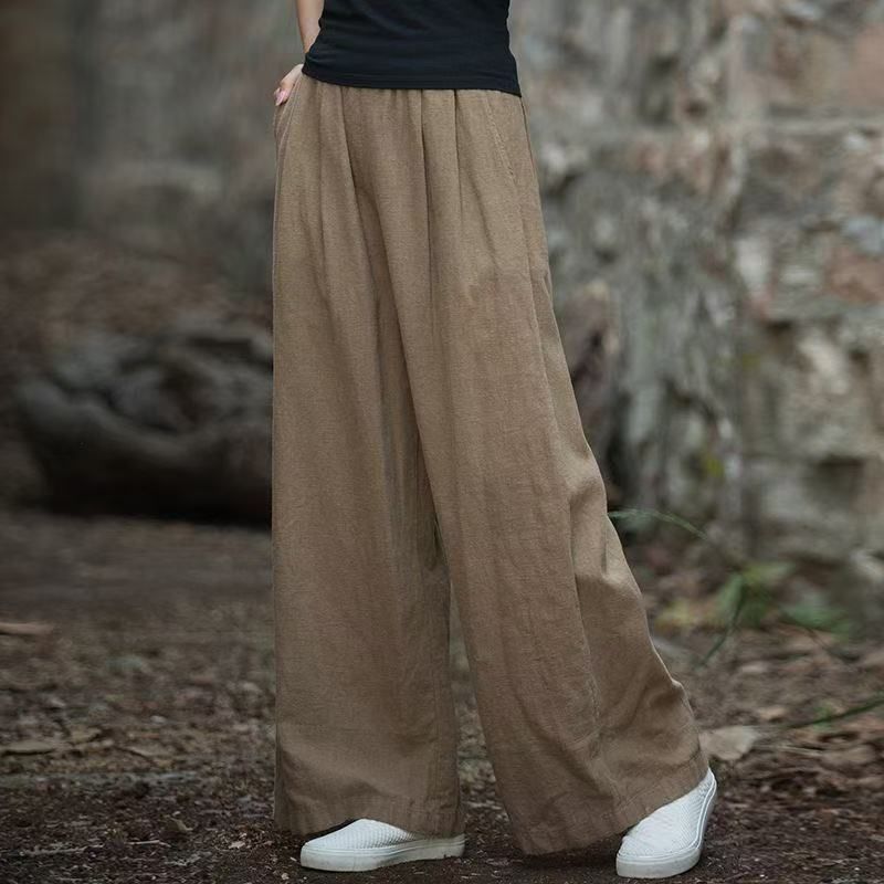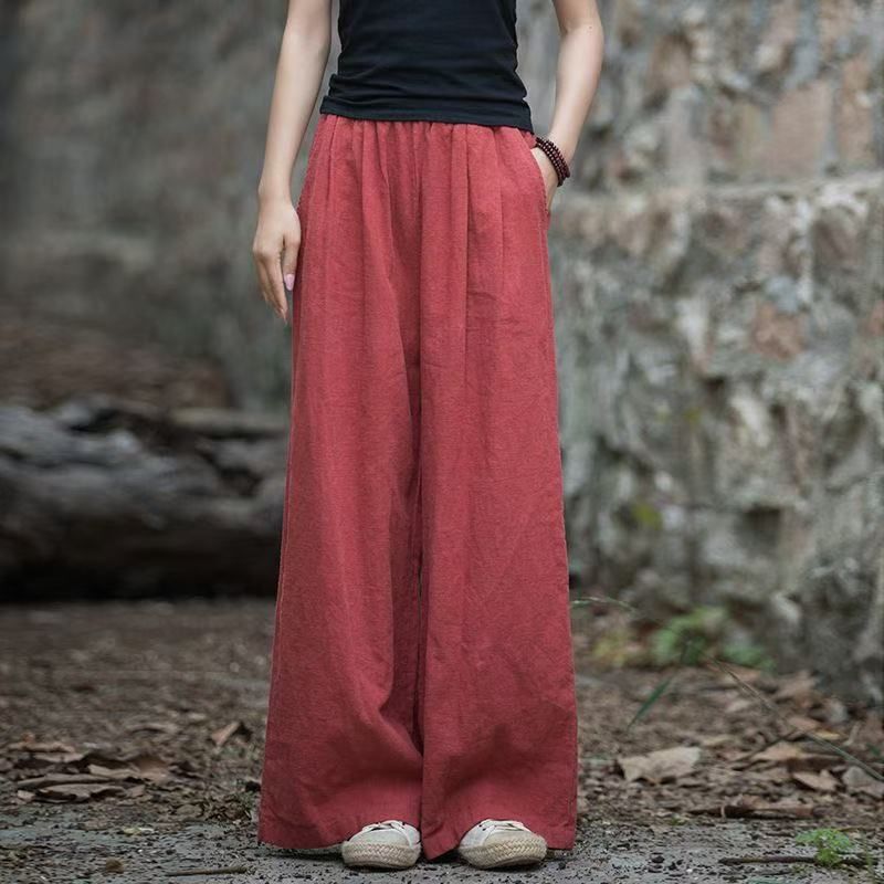 Весной и летом в новом стиле художественные повседневные брюки из хлопка и льна с эластичной резинкой на талии, утягивающие широкие брюки для женщин, большие размеры, свободные и плотно прилегающие.