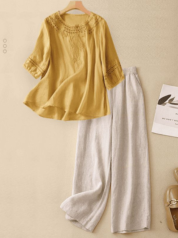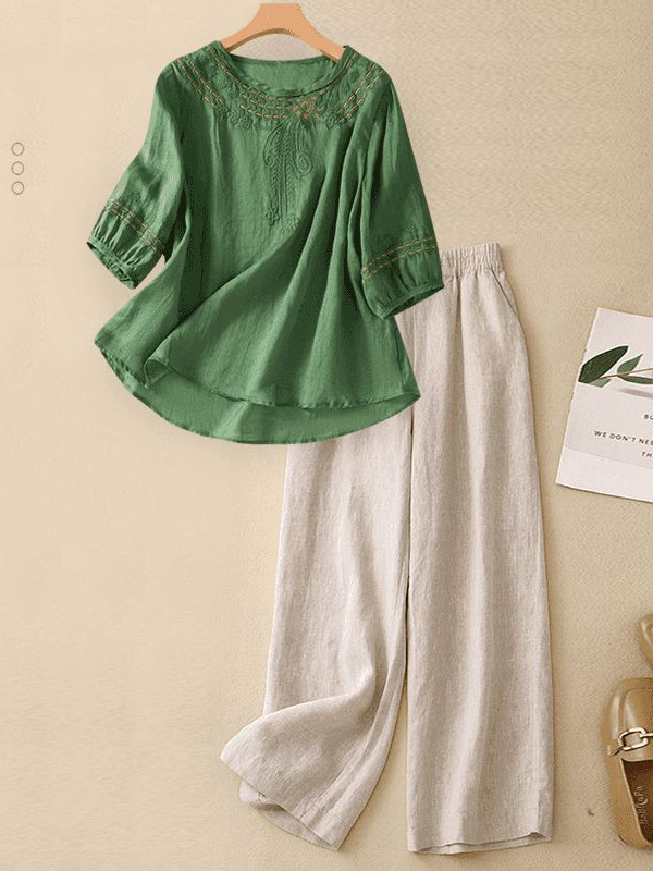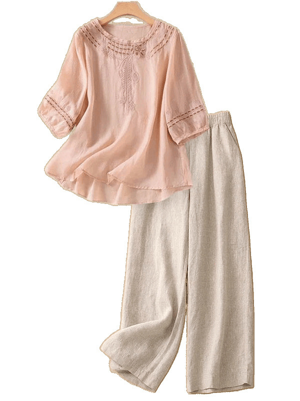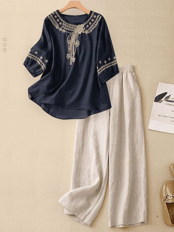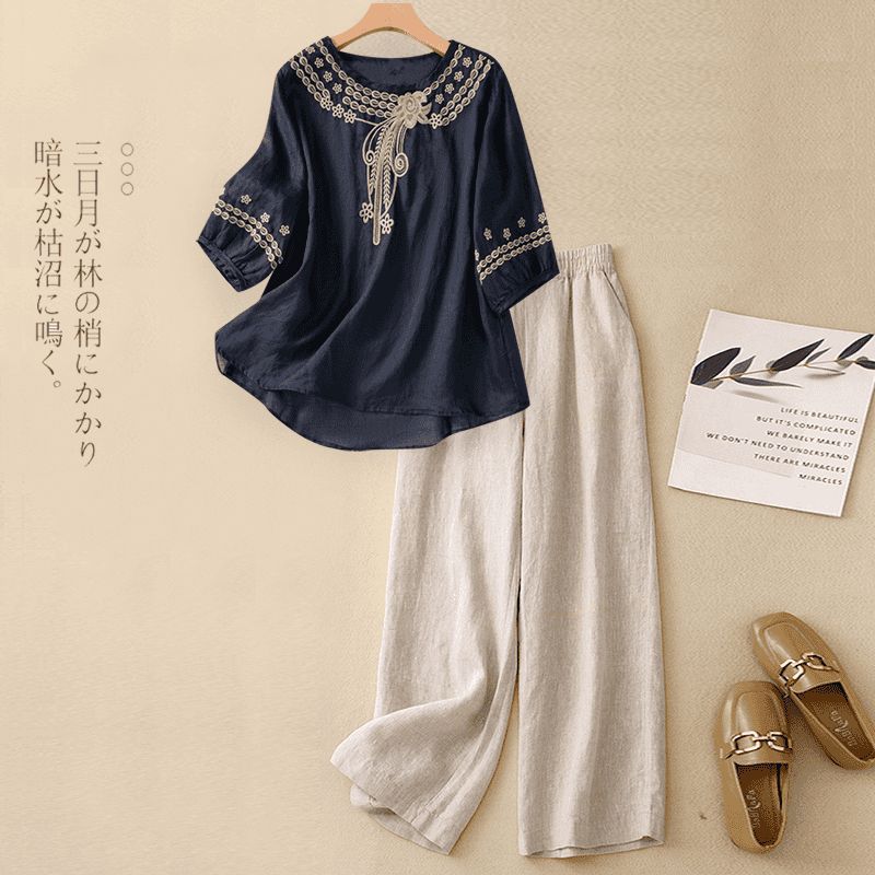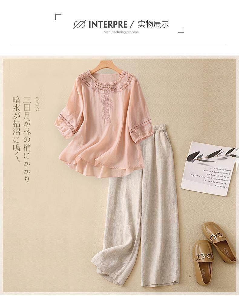 Новый китайский модный костюм с короткими рукавами в этническом стиле, состоящий из двух частей, топы из хлопка и льна, литературные ретро-повседневные темпераментные широкие брюки