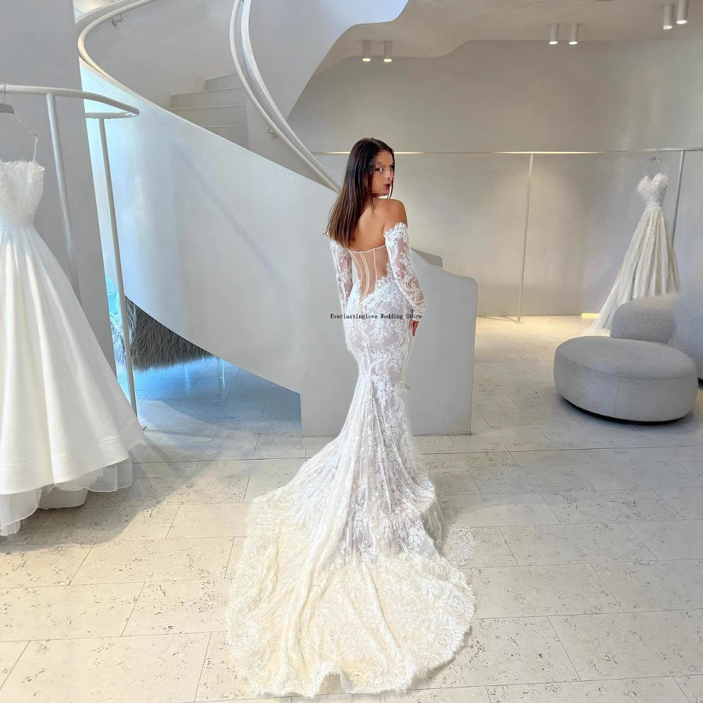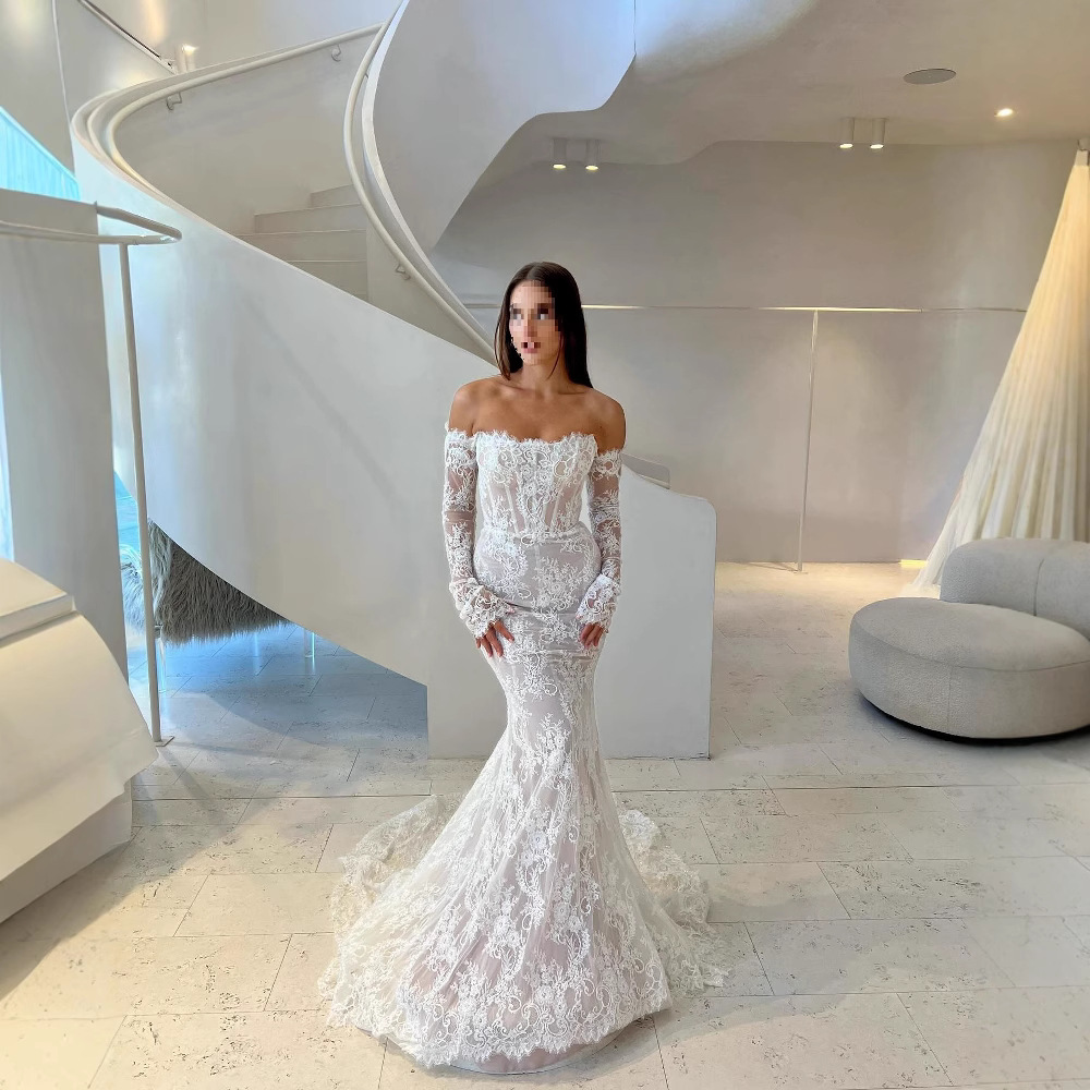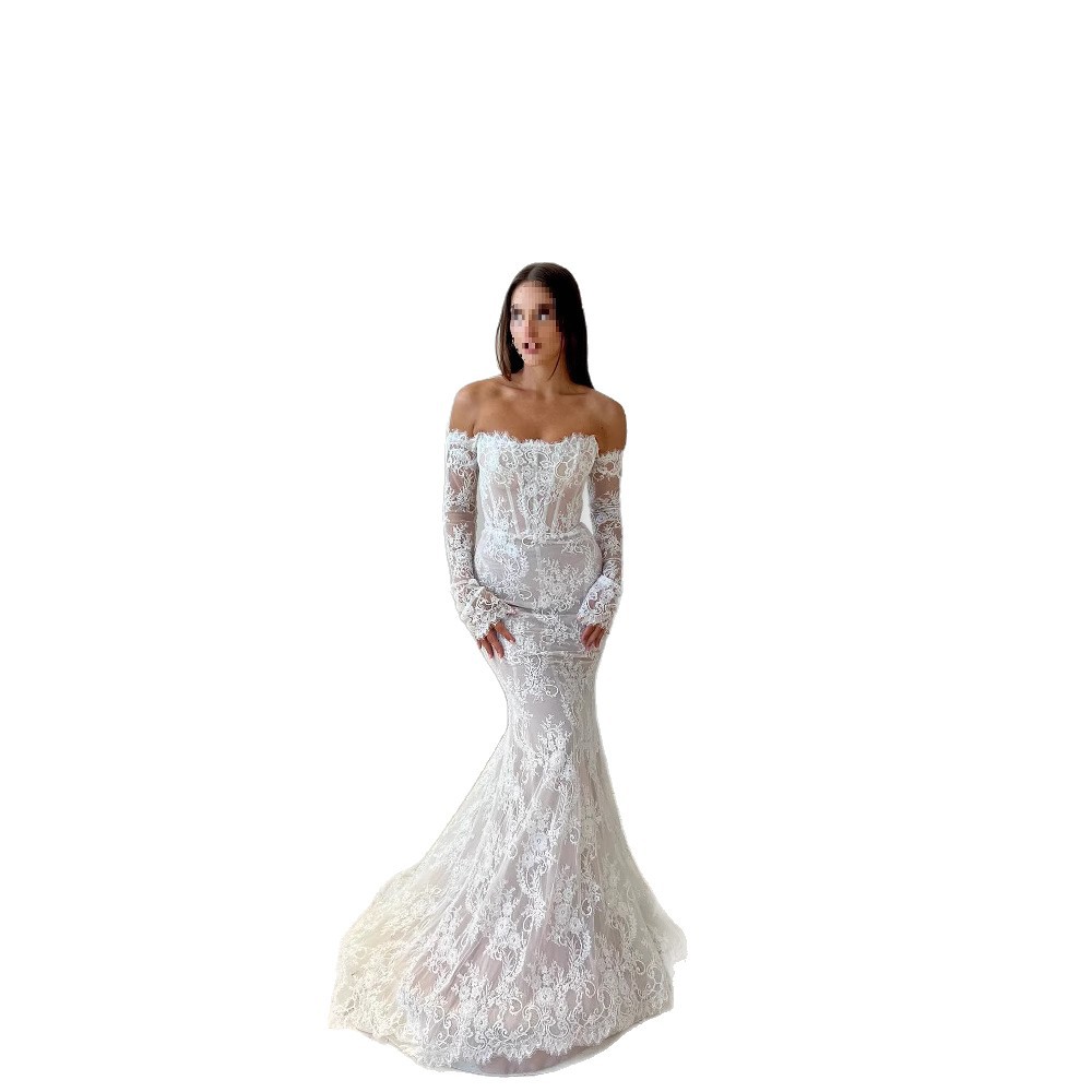 AliExpress кружевное свадебное платье с длинными рукавами и открытыми плечами, тяжелая аппликация, облегающее свадебное платье со шлейфом для женщин.
