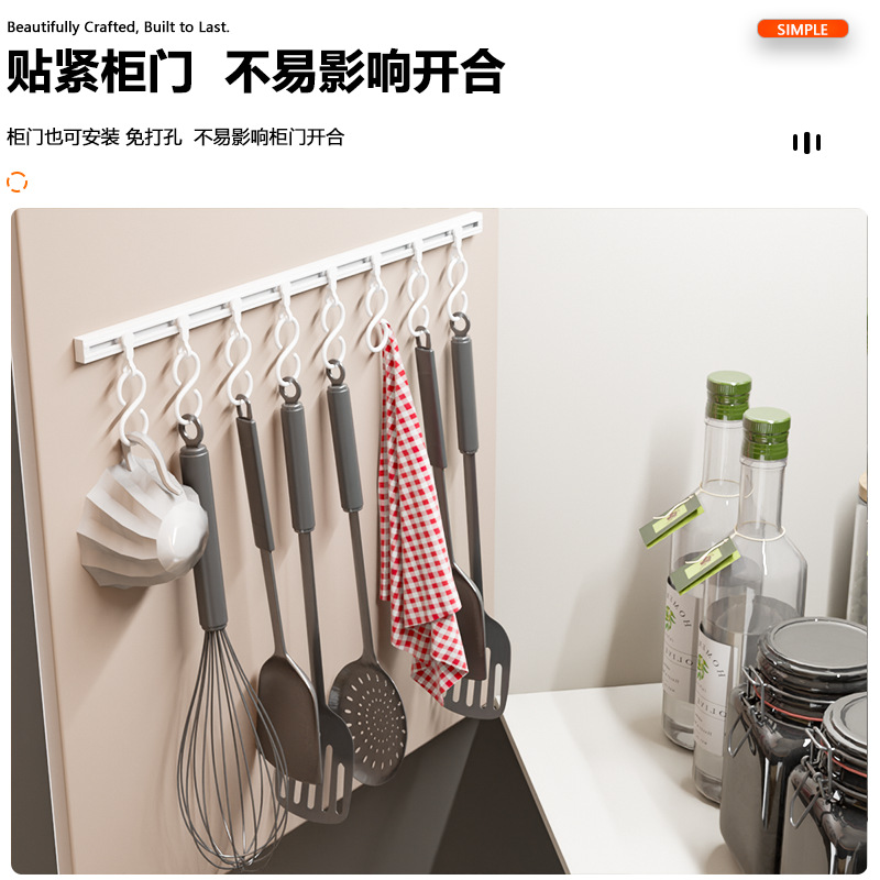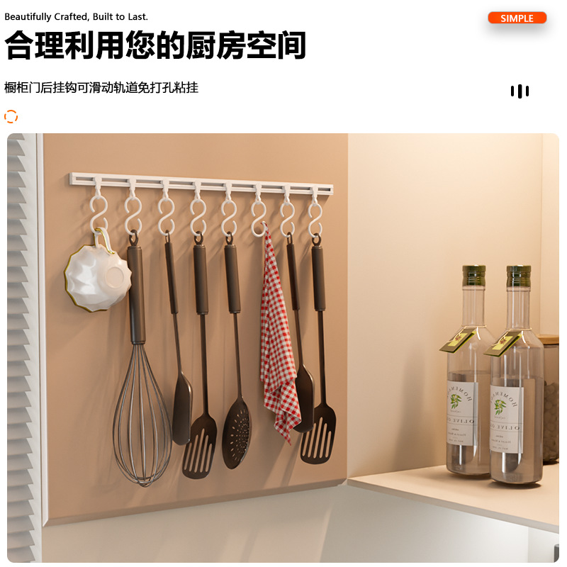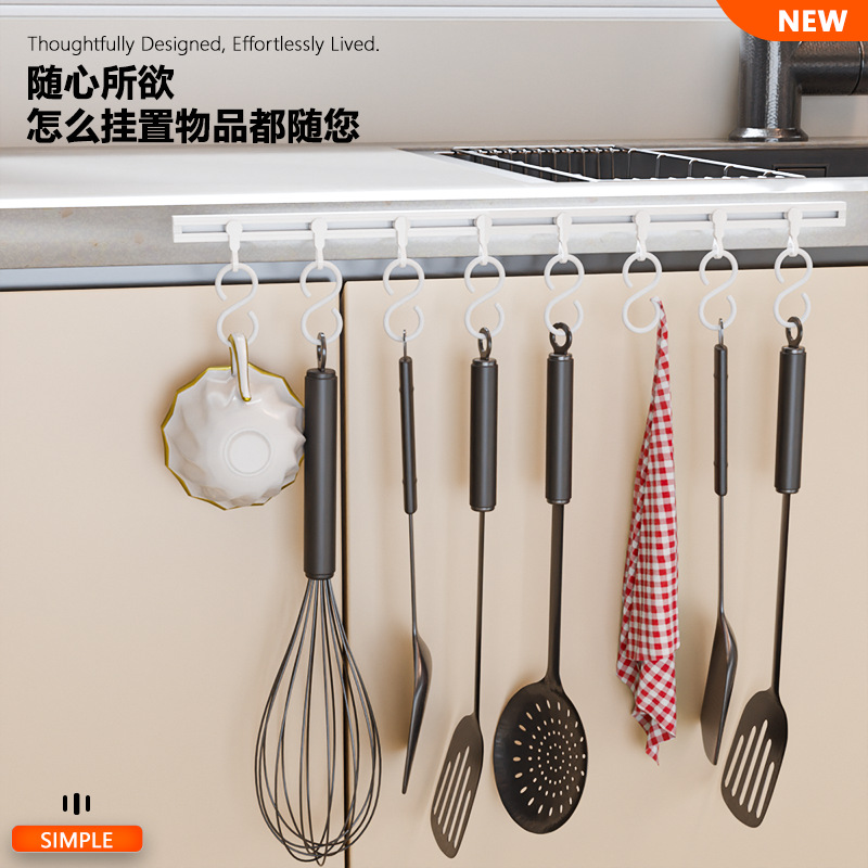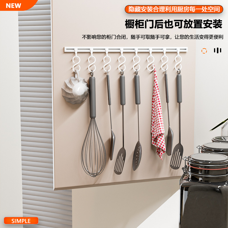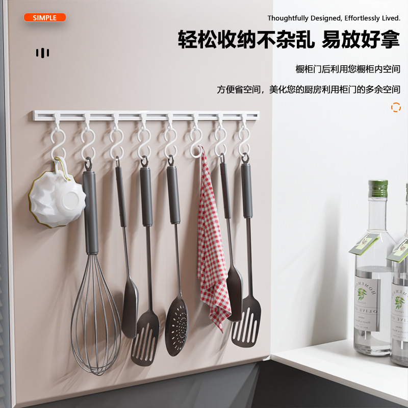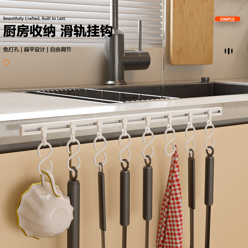 厨房收纳滑动轨道挂钩柜门收纳挂钩器神免打孔橱柜门后收纳置物架 厨房收纳滑动轨道挂钩柜门收纳挂钩神器免打孔橱柜门后收纳置物架 橱柜门后滑动轨道挂钩厨房免打孔壁挂收纳置物架 厨房吸盘挂钩轻奢免打孔滑动轨道联排挂钩橱柜门后锅铲勺子收纳架 厨房自粘挂钩一排滑轨挂钩免打孔挂杆门内滑动挂架橱柜收纳置物架 滑轨挂钩家用收纳门后粘钩排钩免打孔一排式挂架挂杆连排可滑动