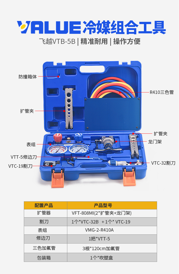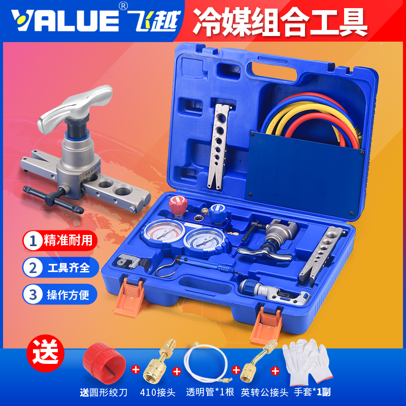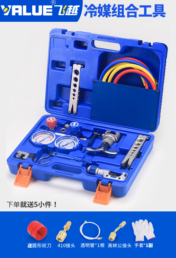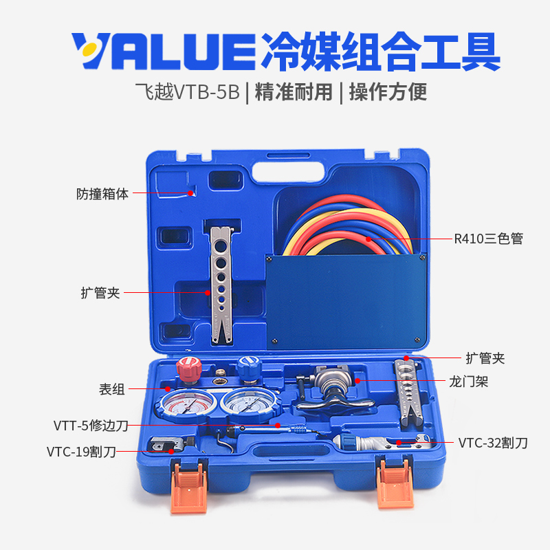 VTB-5B Комбинированный инструмент для измерения хладагента с двойным манометром, расширитель труб, инструмент для развальцовки, набор манометров для хладагента