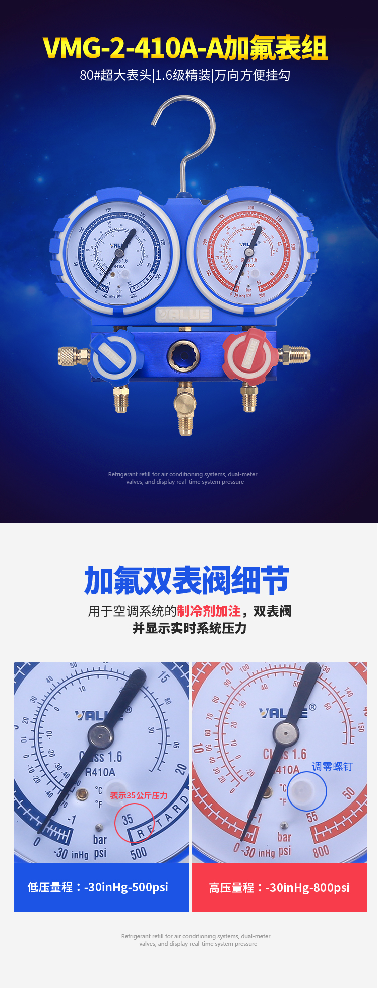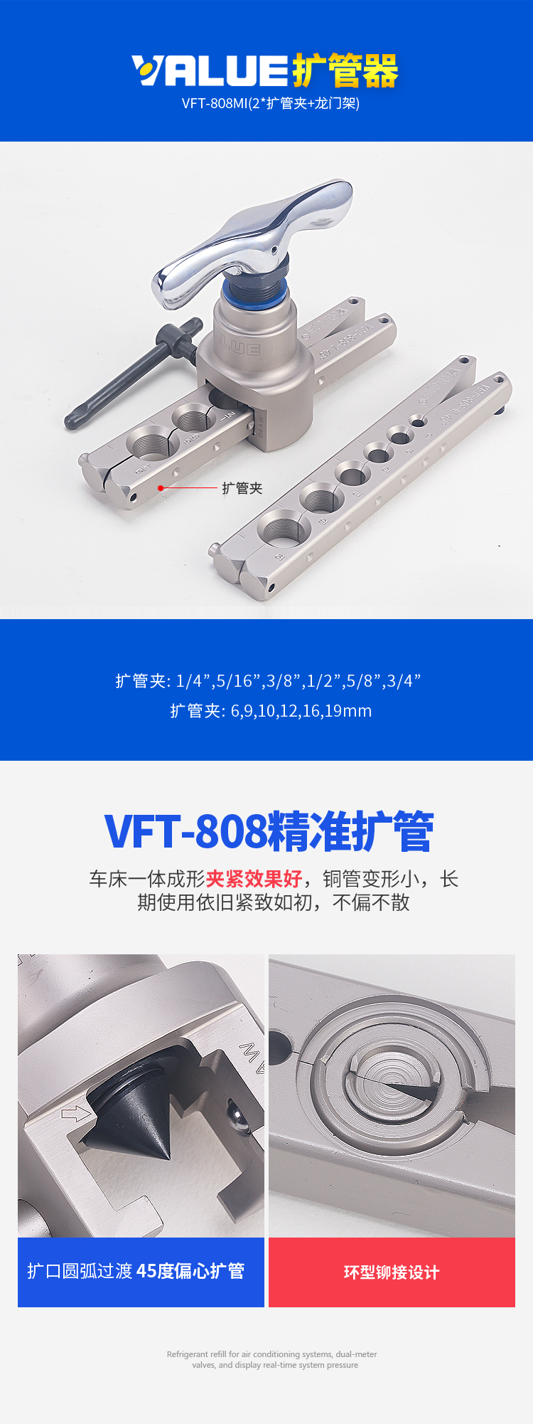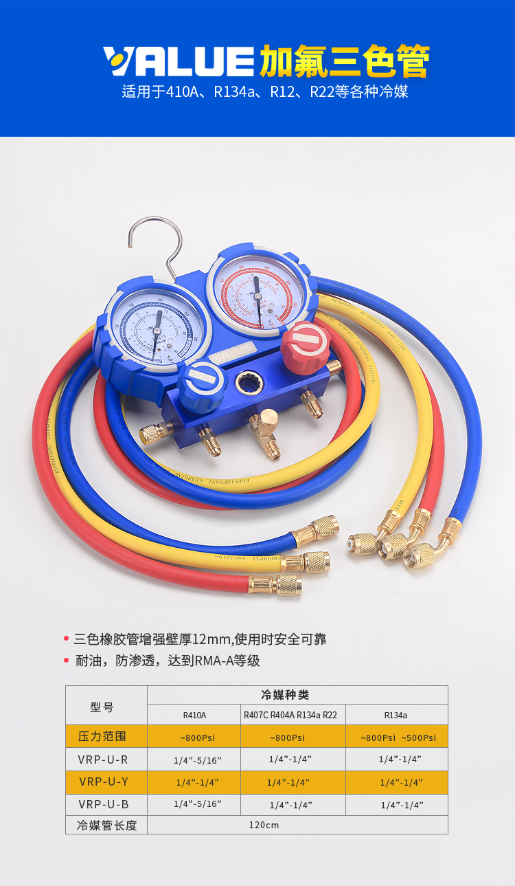 VTB-5B Комбинированный инструмент для измерения хладагента с двойным манометром, расширитель труб, инструмент для развальцовки, набор манометров для хладагента