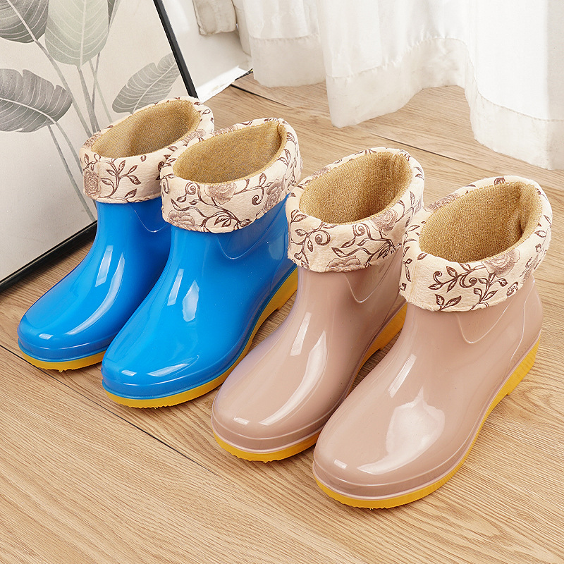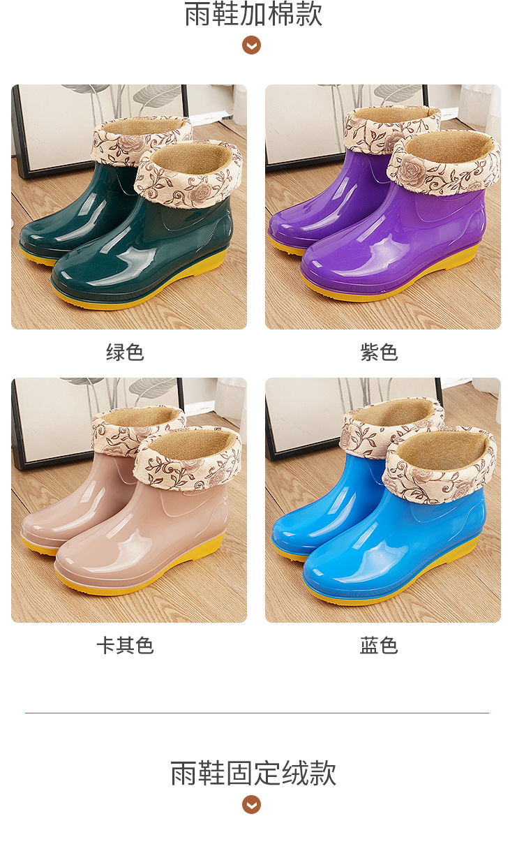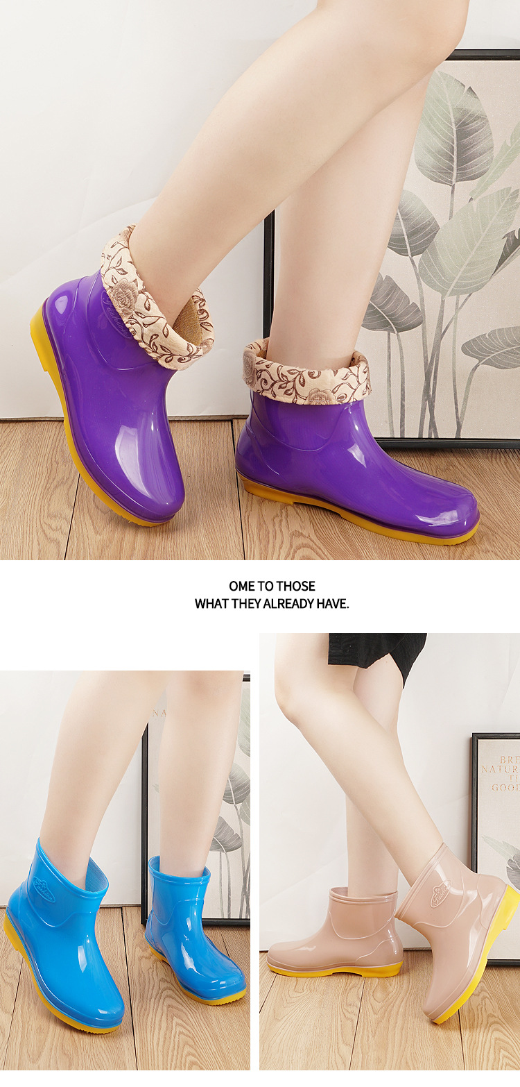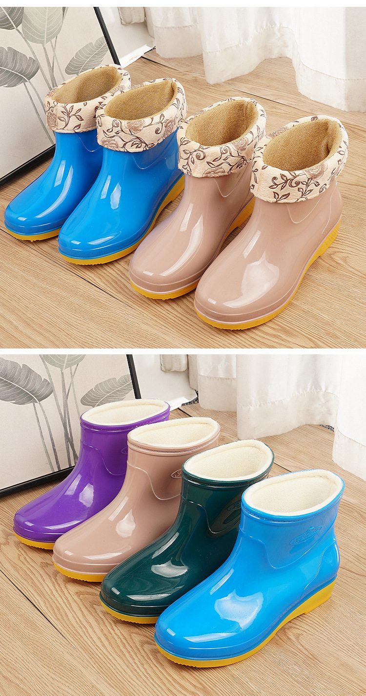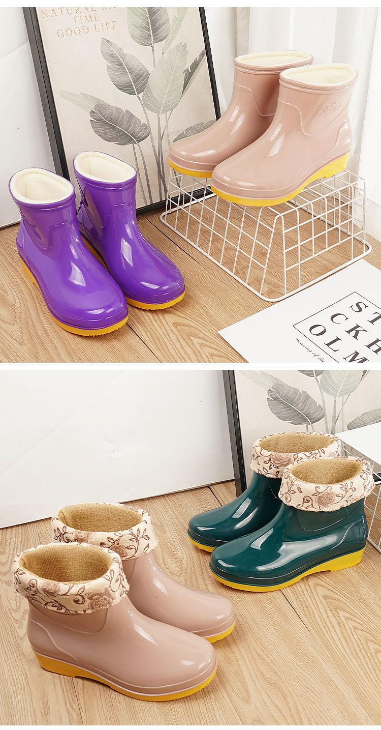 Женские резиновые сапоги, модные нескользящие резиновые сапоги с короткими трубками, обувь для воды для взрослых, водные сапоги для верхней одежды, кухонная водонепроницаемая обувь, теплая хлопчатобумажная резиновая обувь.
