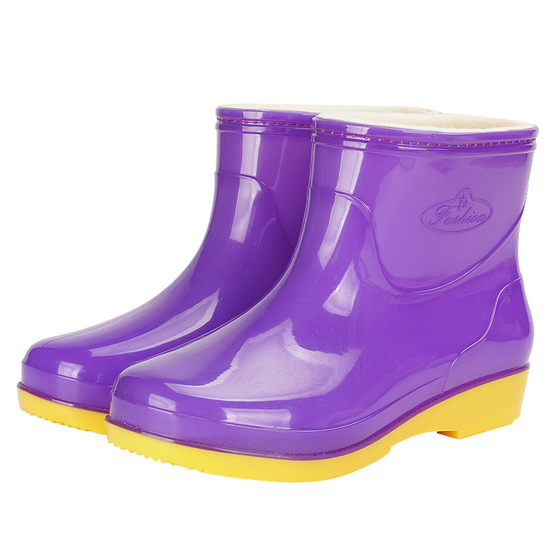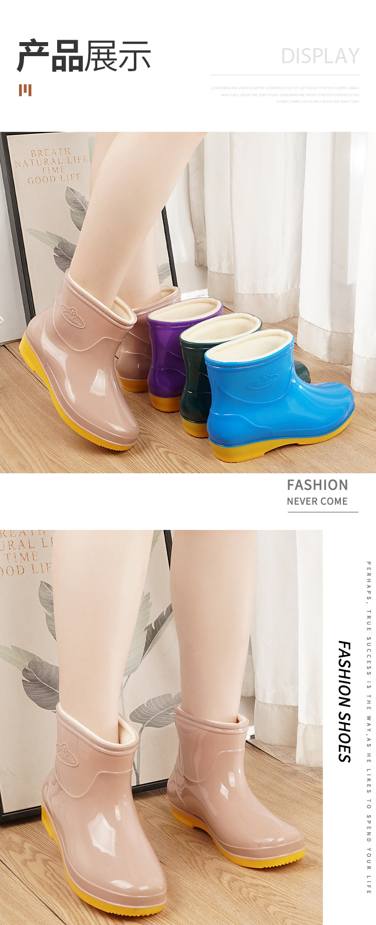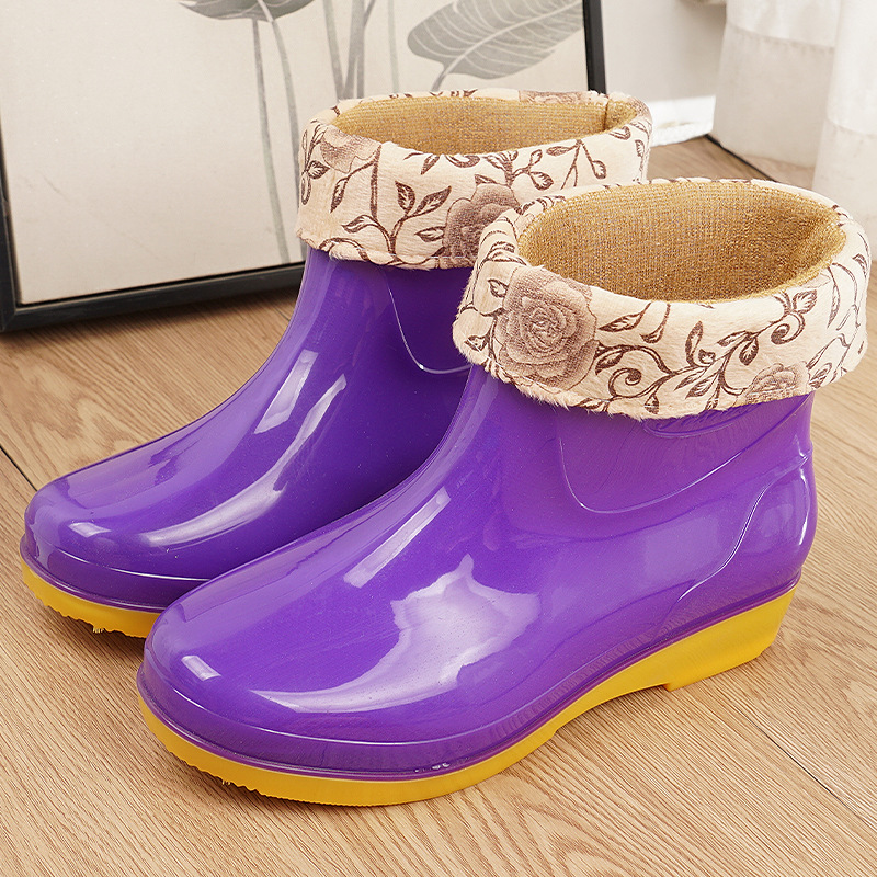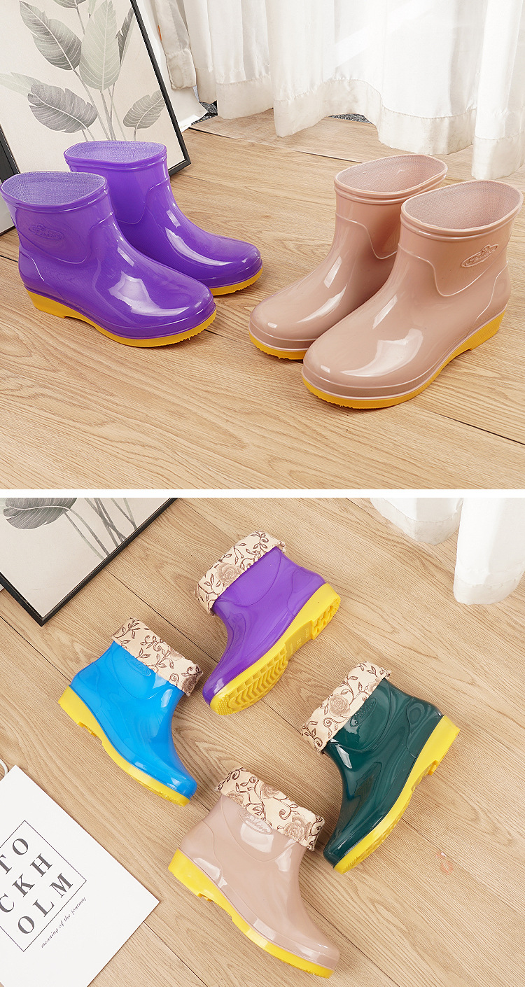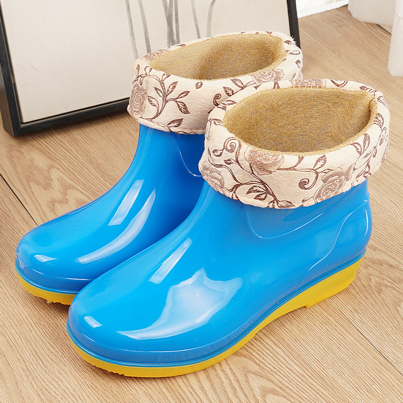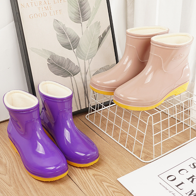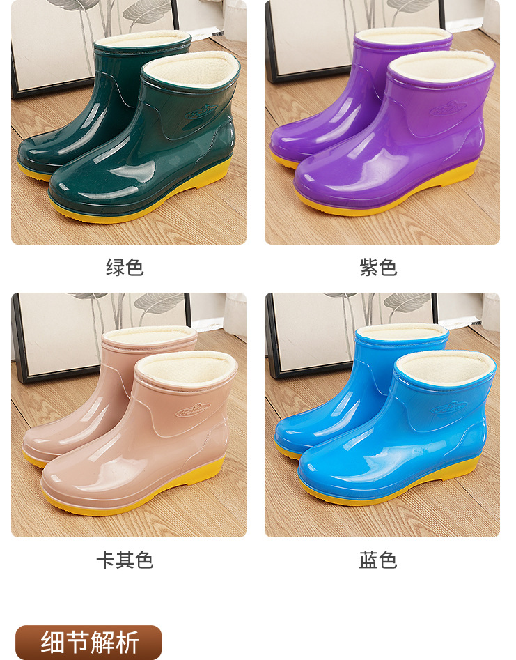 Женские резиновые сапоги, модные нескользящие резиновые сапоги с короткими трубками, обувь для воды для взрослых, водные сапоги для верхней одежды, кухонная водонепроницаемая обувь, теплая хлопчатобумажная резиновая обувь.