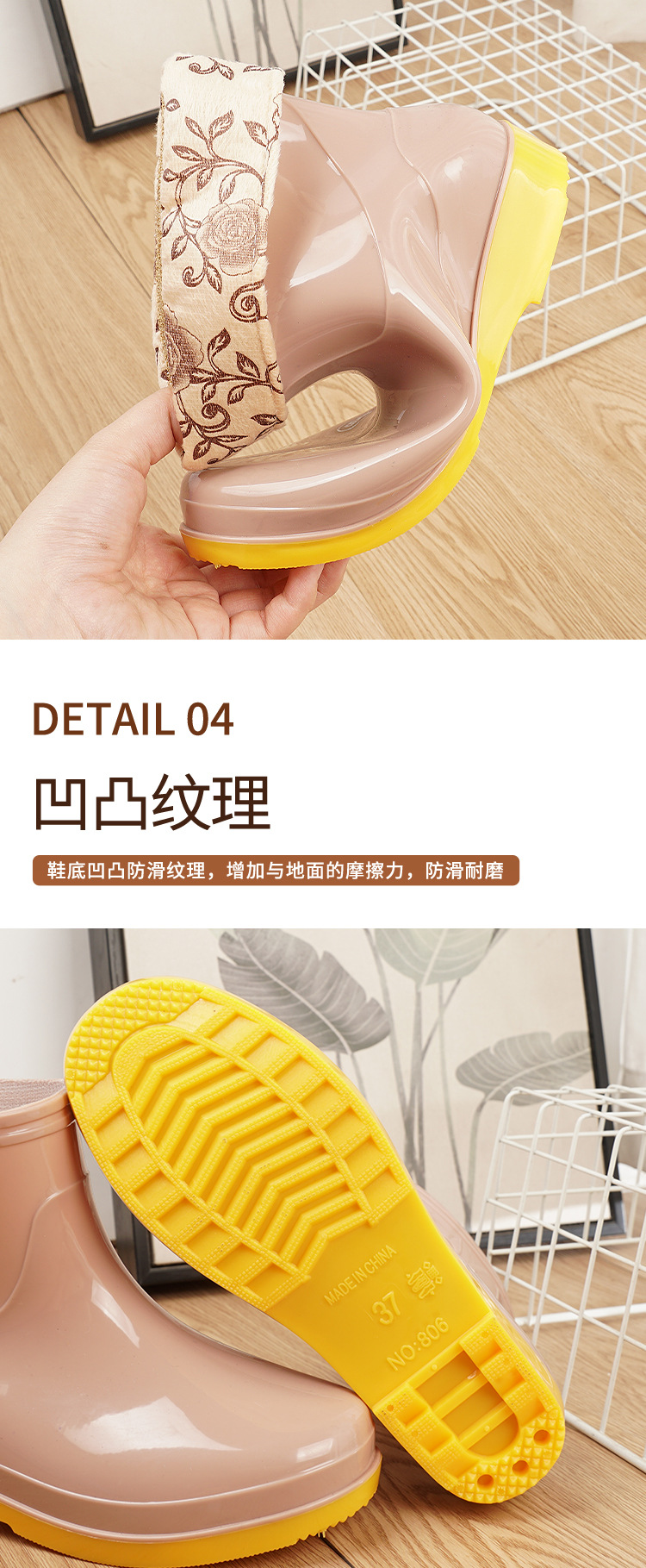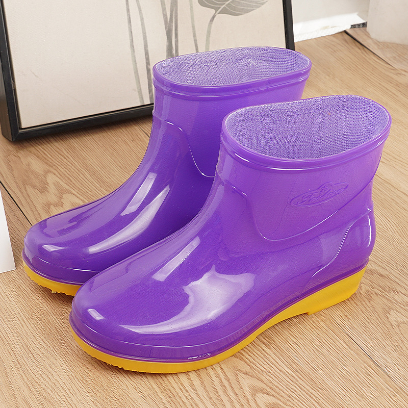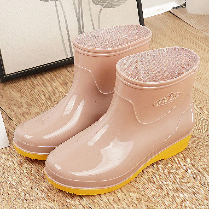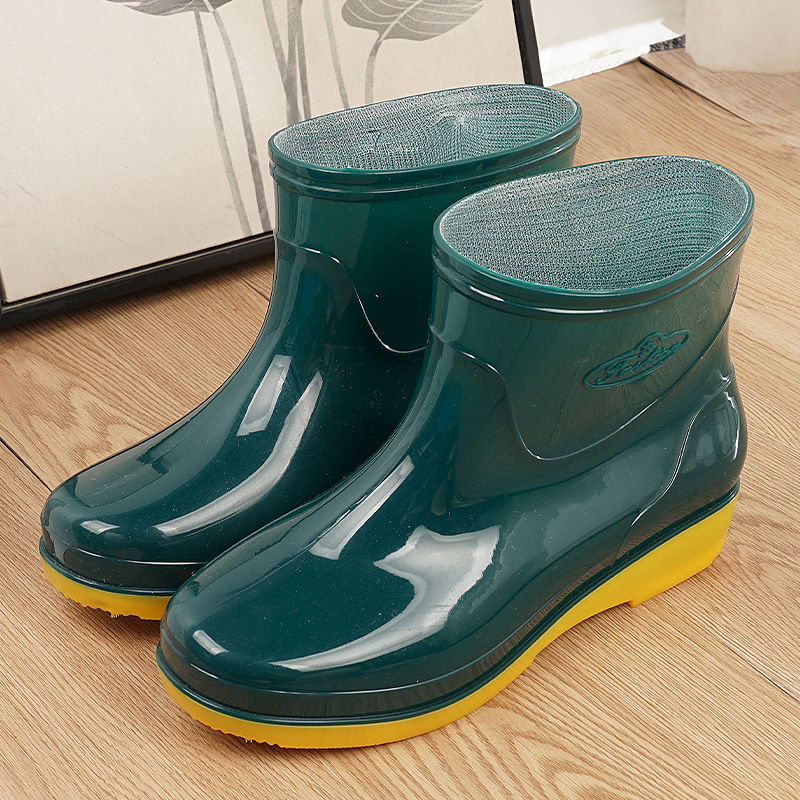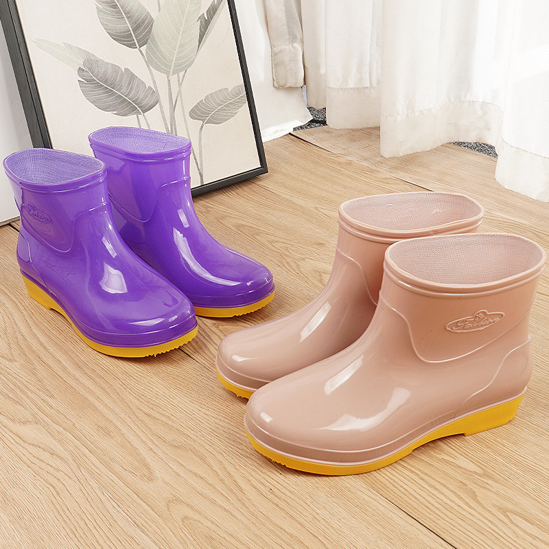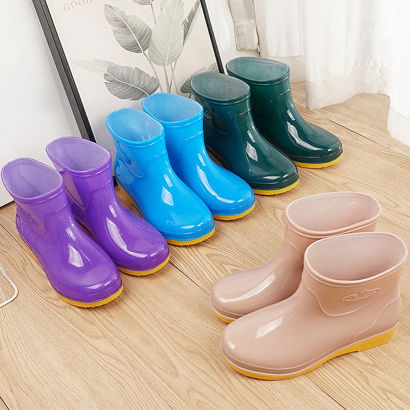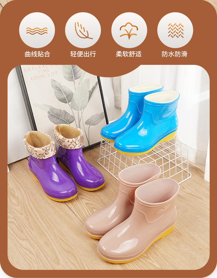 Женские резиновые сапоги, модные нескользящие резиновые сапоги с короткими трубками, обувь для воды для взрослых, водные сапоги для верхней одежды, кухонная водонепроницаемая обувь, теплая хлопчатобумажная резиновая обувь.