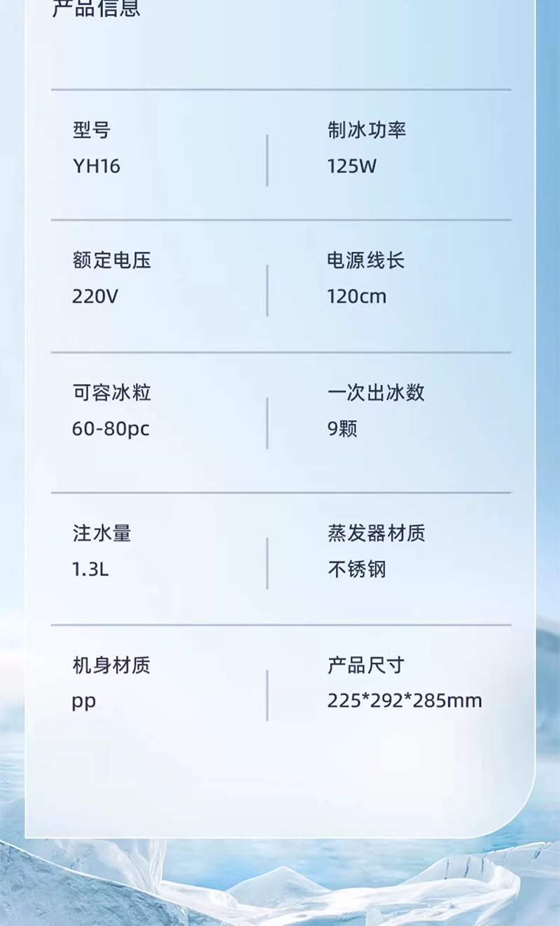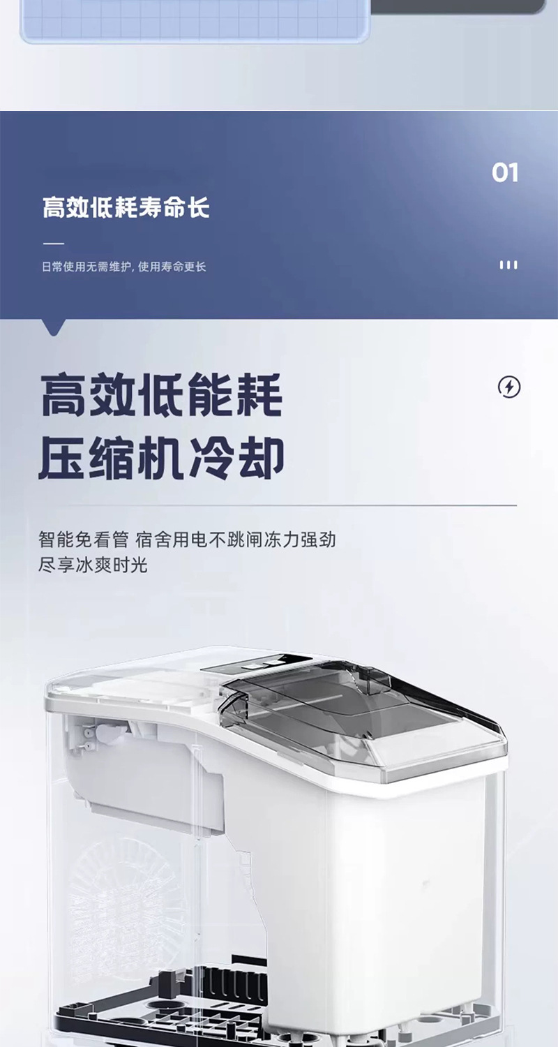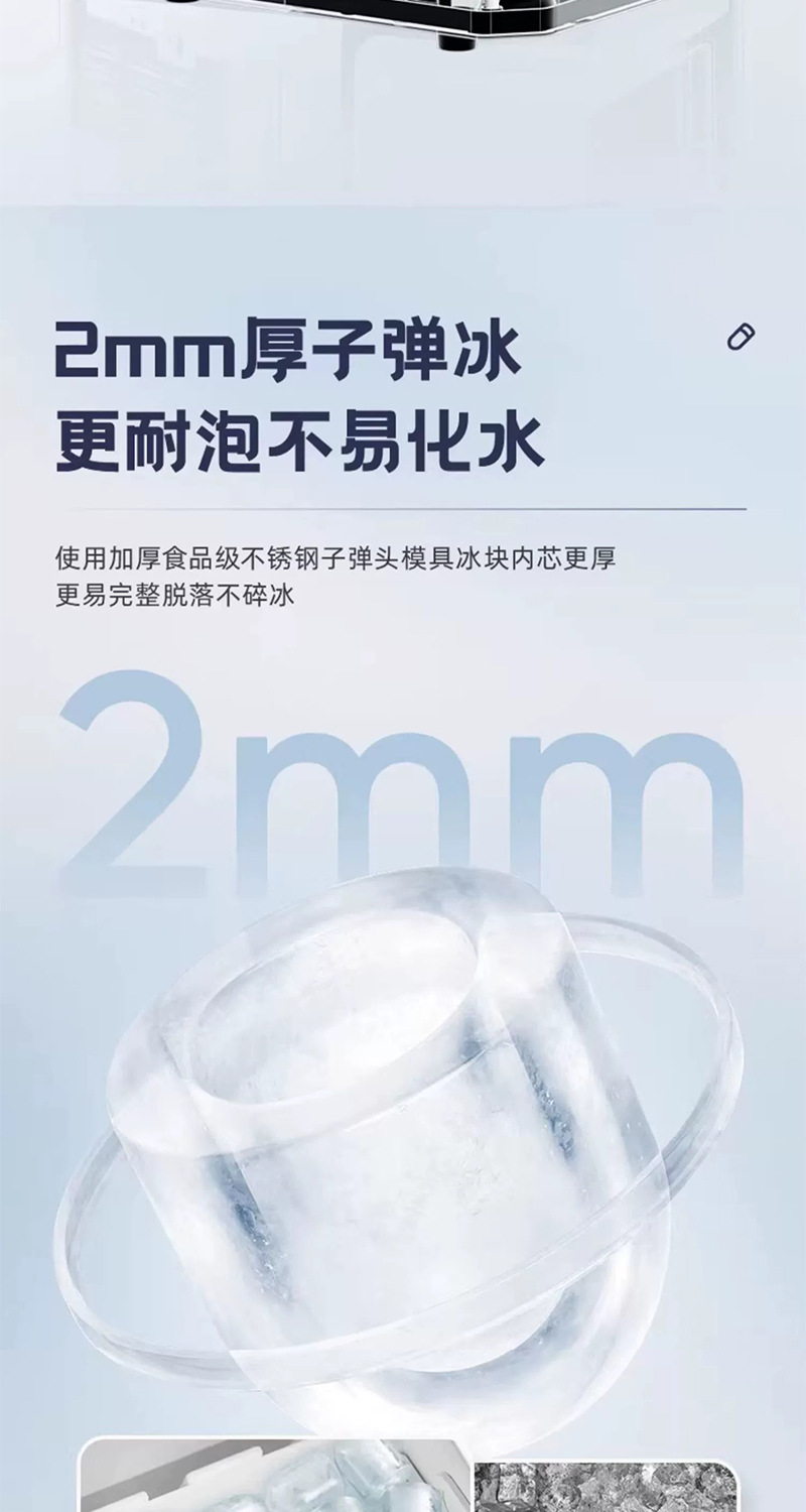(Базовая модель) Приготовление льда в один клик, быстрое приготовление льда за 6 минут.; (Роскошная модель) Автоматическая очистка, регулируемый размер пули льда.; (Модель премиум-класса) Теплоизоляция и инфракрасное обнаружение льда