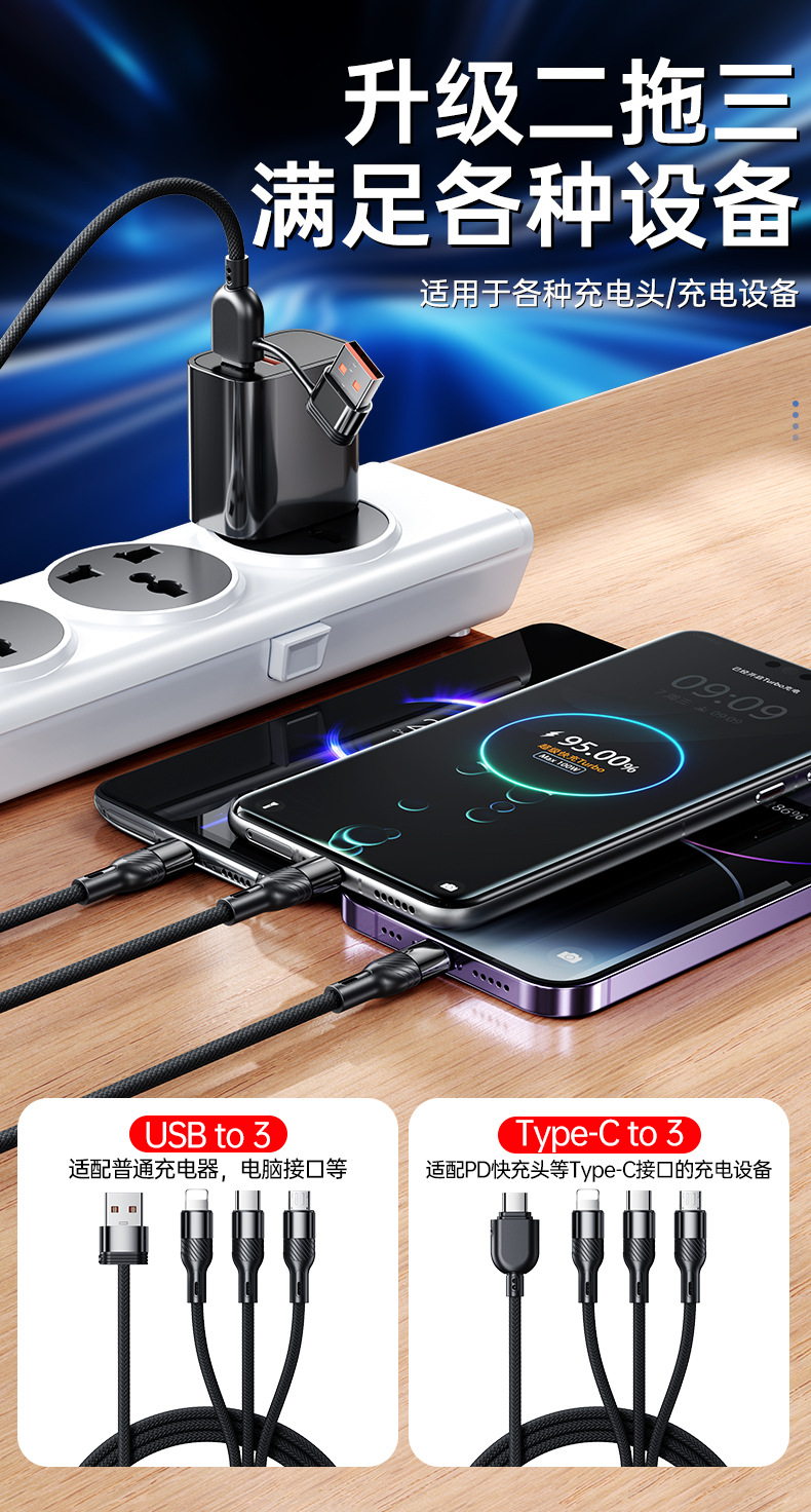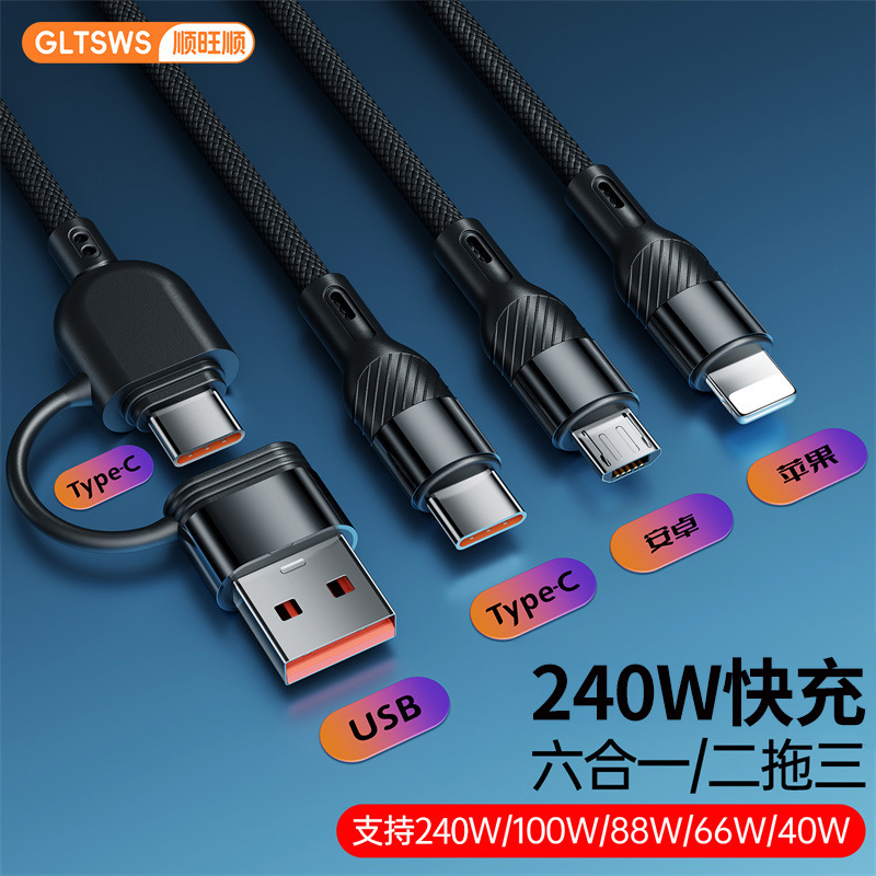 PD240W сверхбыстрая зарядка кабель для передачи данных два-to-три мобильный телефон планшет ноутбук автомобильный зарядный кабель «пять в одном»