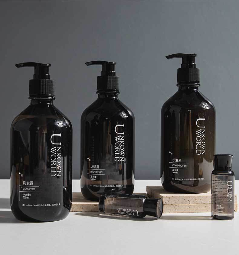 Оптовая продажа наборов для гостиниц: большие бутылки шампуня, геля для душа, кондиционера, средств по уходу и принадлежностей для ванны.