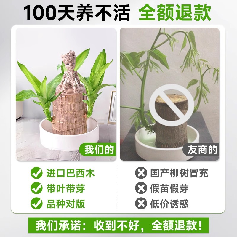 如需跨境发国外的亲们,可以联系客服,或者备注 【巴西木俩头加蜡】 这个方法巴西木可以长时间运输,不容易干裂不容易发霉。客户收到之后用刀子去掉其中一头的蜡,去掉蜡的那头就可以放在水中水培【我们可以送英文说明书!!!】