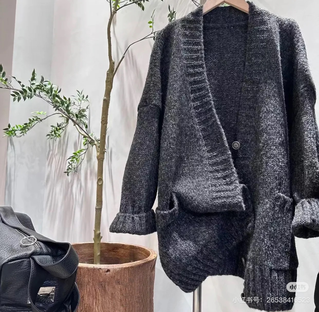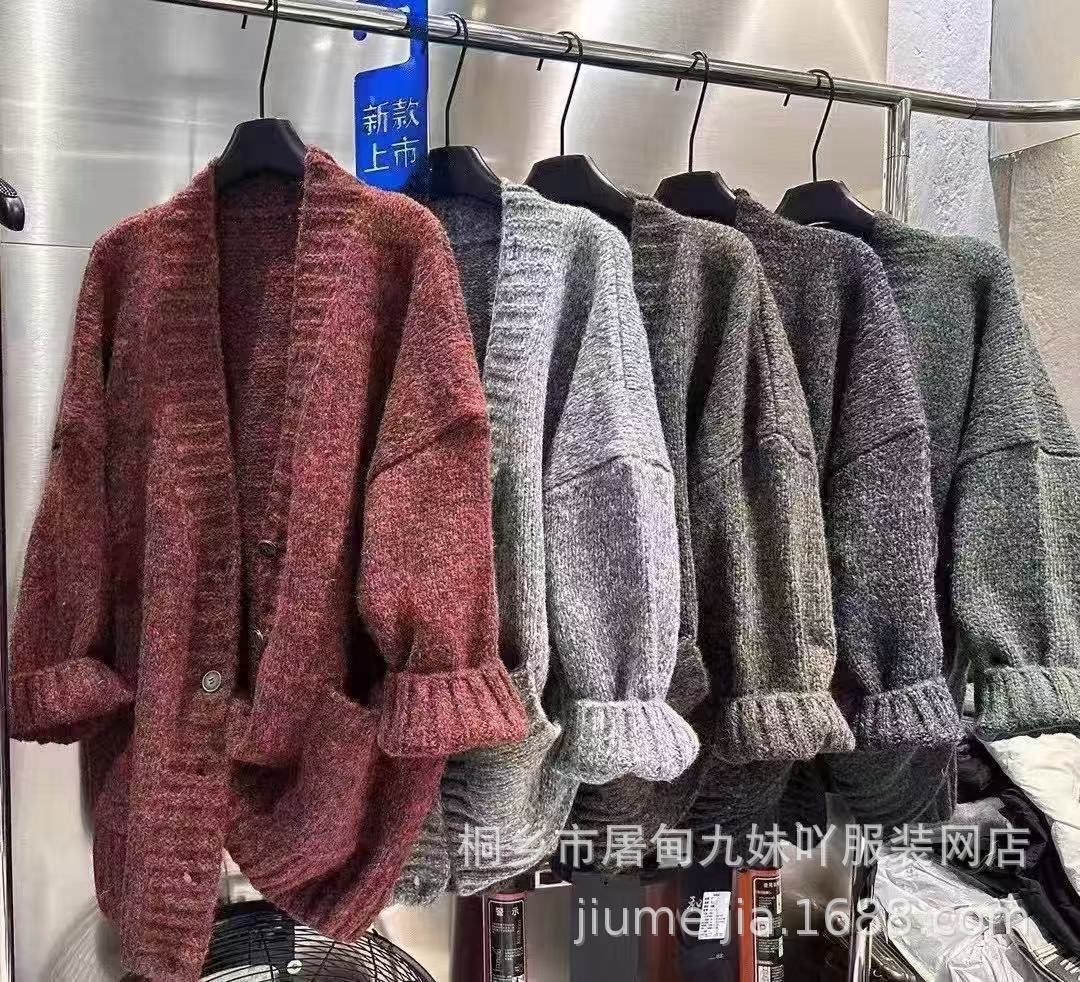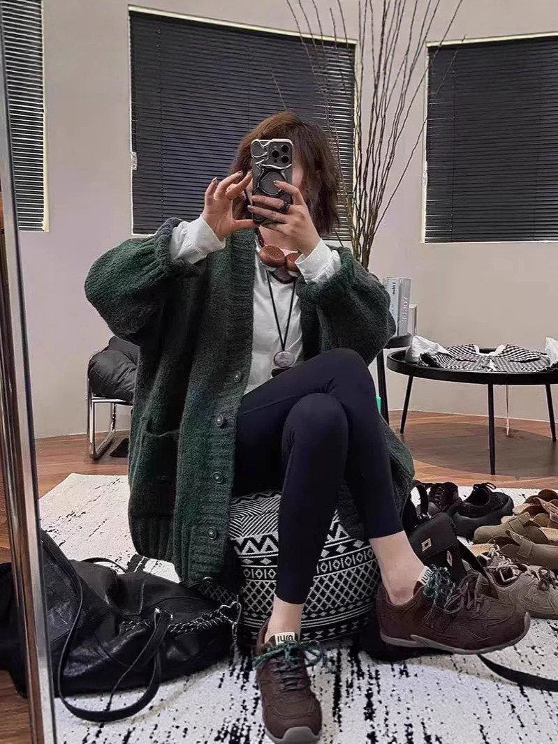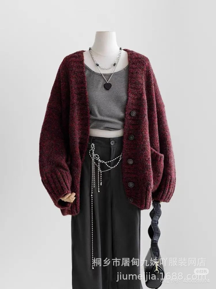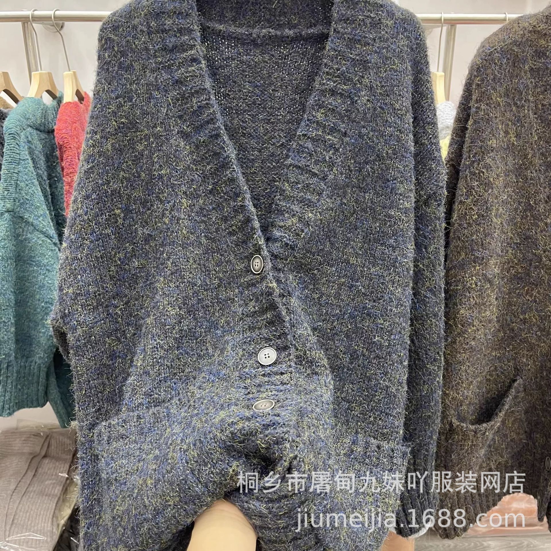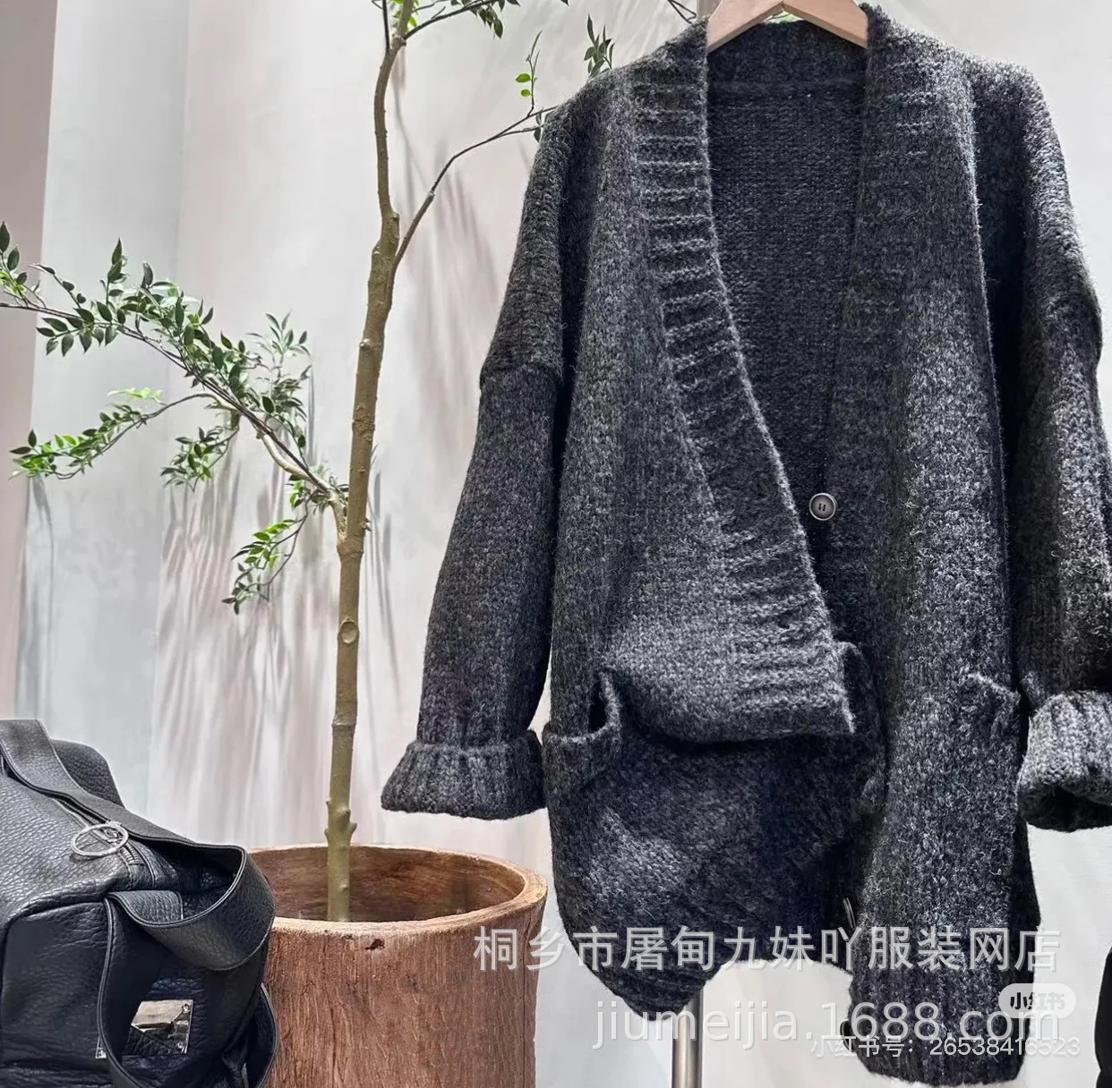 Европейская станция 2025 Осень/Зима Новая мода Универсальный свободный утягивающий свитер средней длины Толстый ленивый вязаный жакет.