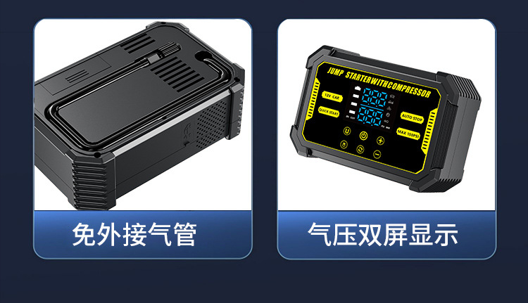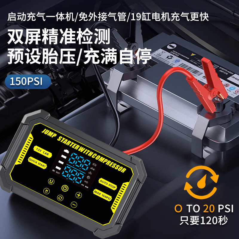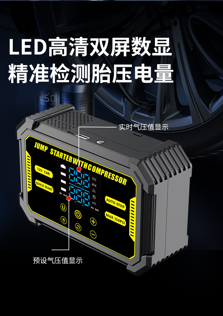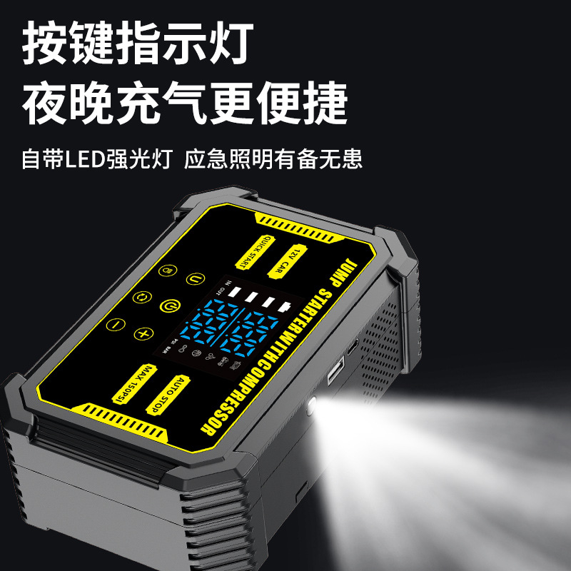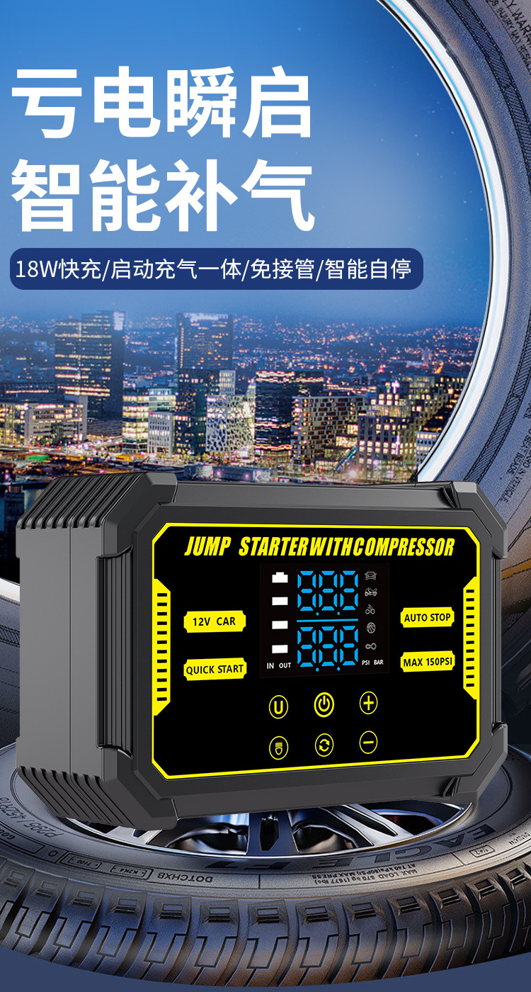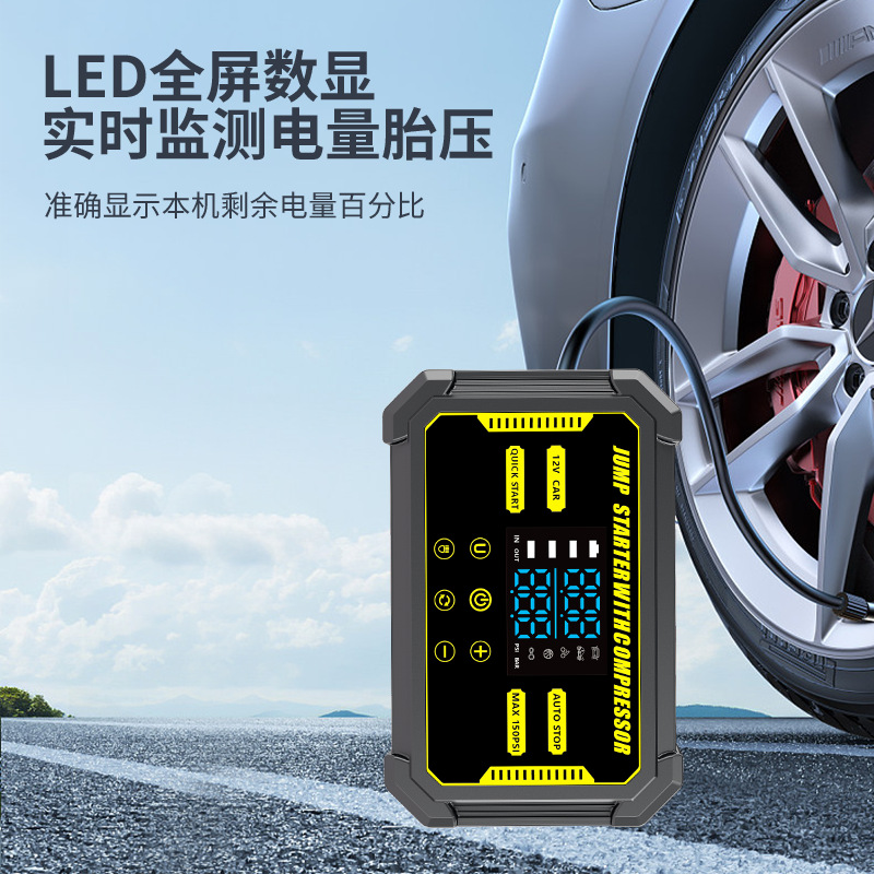 Портативный миниатюрный перезаряжаемый воздушный насос, универсальное автомобильное резервное устройство для запуска двигателя с функцией power bank и автомобильным аккумулятором.