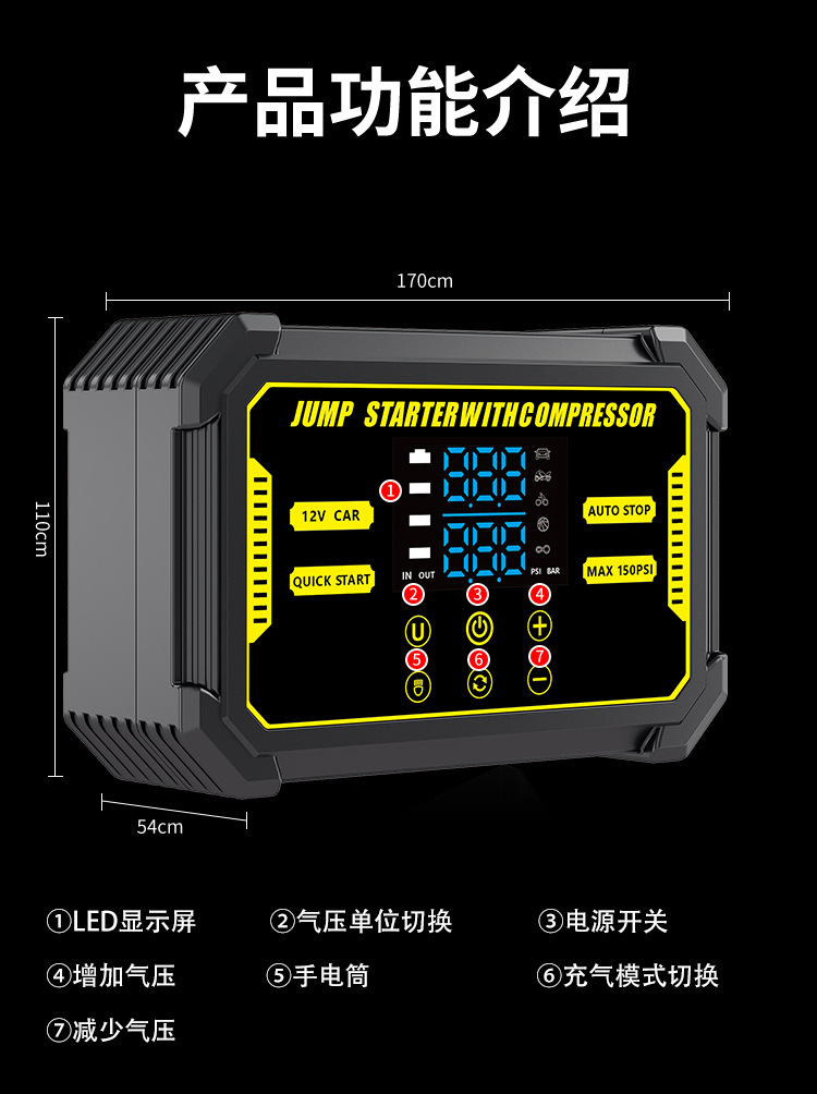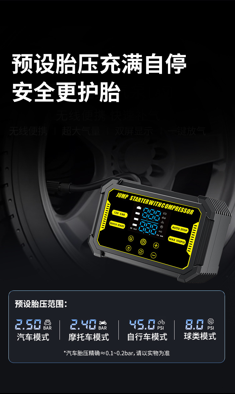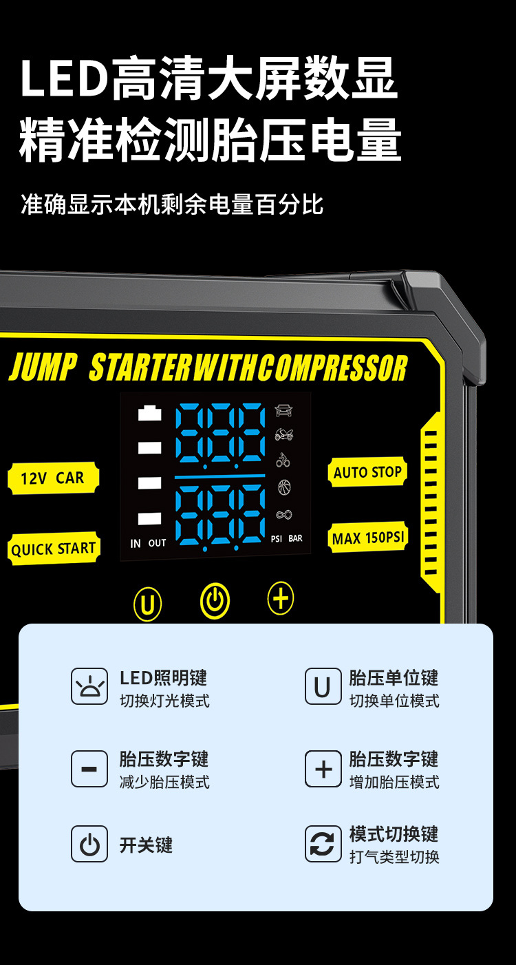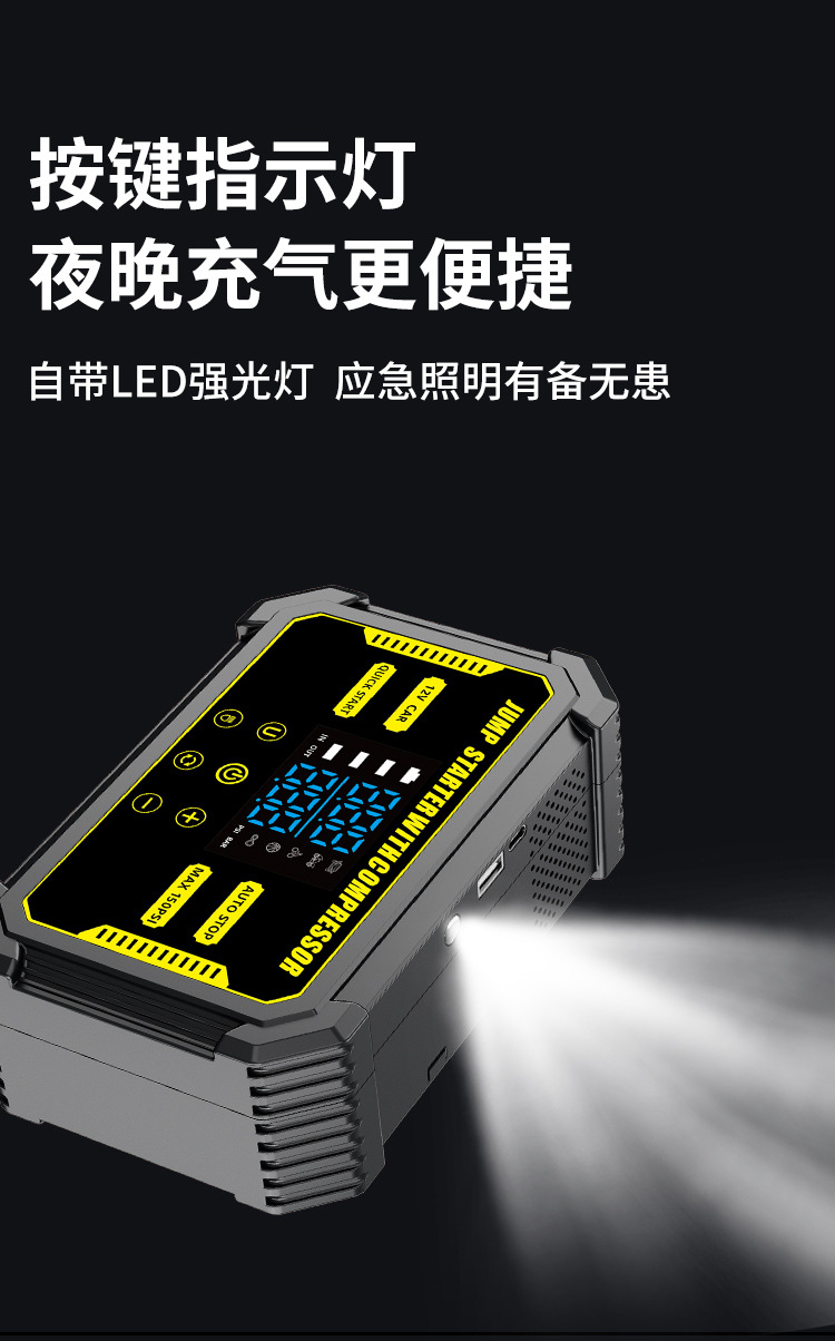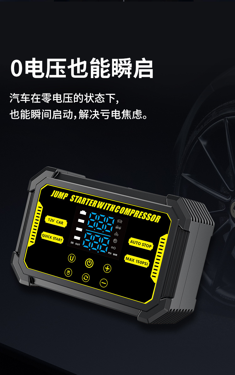 Портативный миниатюрный перезаряжаемый воздушный насос, универсальное автомобильное резервное устройство для запуска двигателя с функцией power bank и автомобильным аккумулятором.