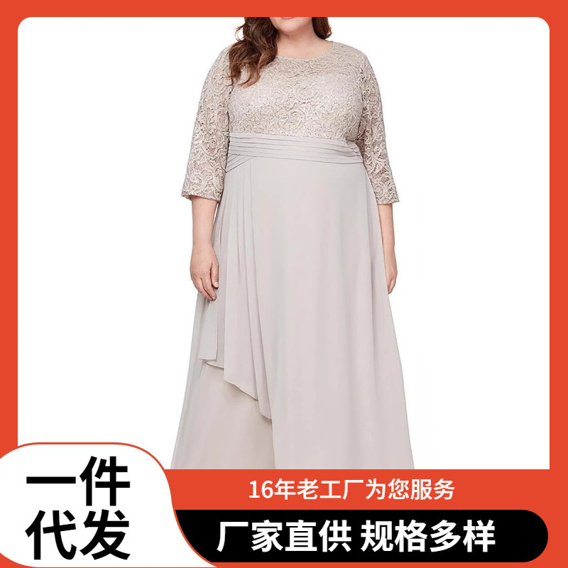 Вечернее платье для мамы в стиле ленивого шика с кружевными аппликациями для свадеб и торжеств, кросс-граничная торговля на Amazon