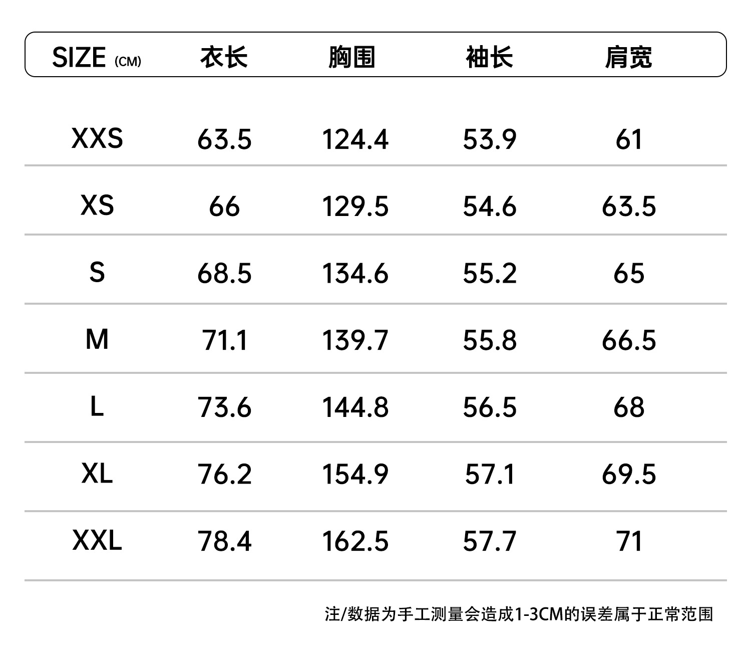 XXS; XS; S; M; L; XL; XXL