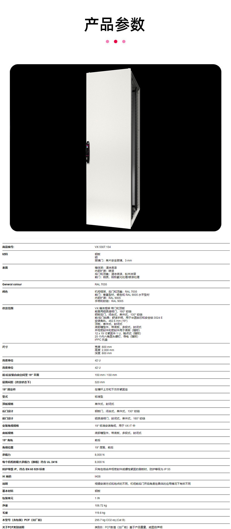 Сетевой серверный шкаф RITTAL German Rittal VX IT со стеклянной дверью и 19inch угловыми направляющими