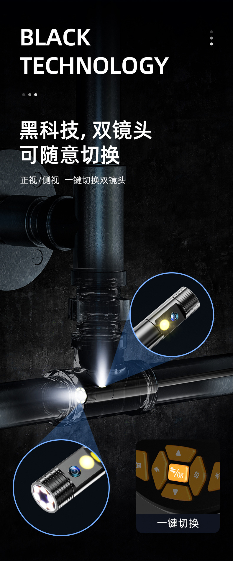 Промышленный эндоскоп Jitaike с двумя объективами, оборудование для обслуживания автомобилей, оборудование для проверки трубопроводов, визуальный водонепроницаемый зонд