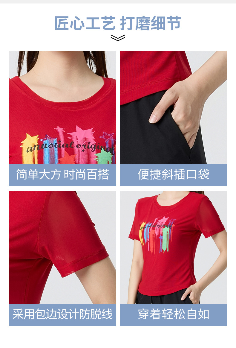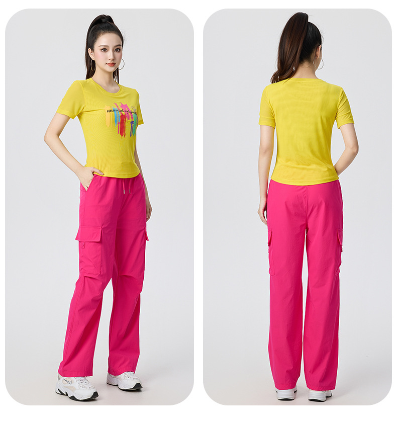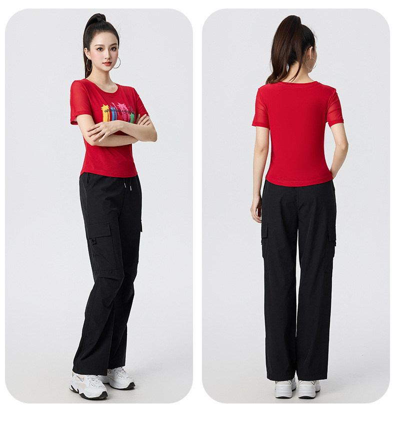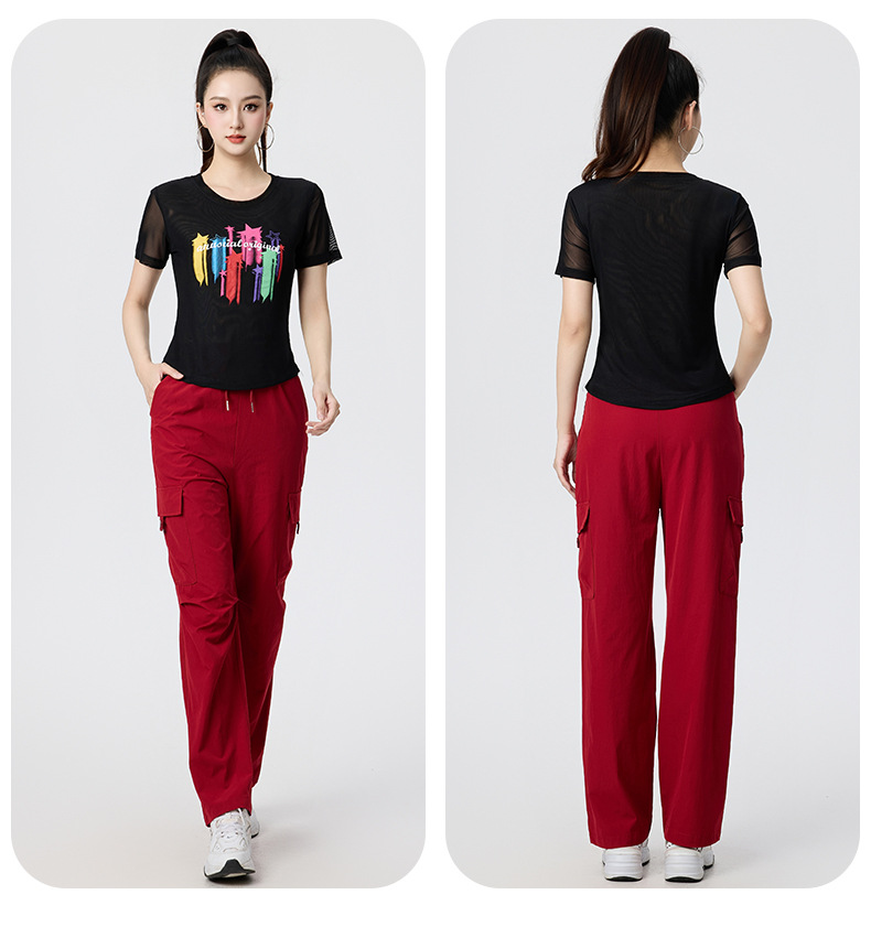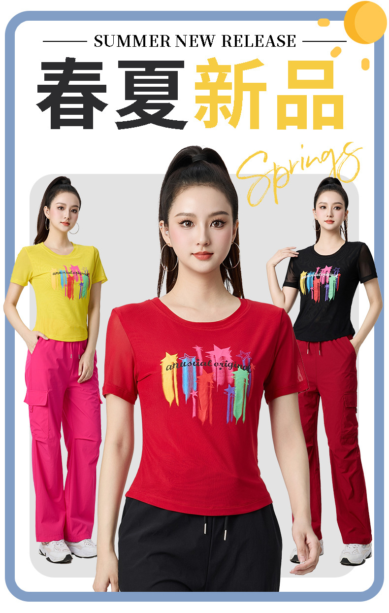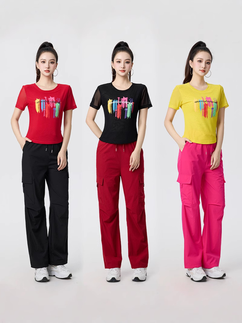 Новая летняя спортивная одежда, топы, двухслойная сетчатая одежда с круглым вырезом и принтом, высокоэластичная модная одежда для фитнеса в стиле хип-хоп, танцевальная одежда