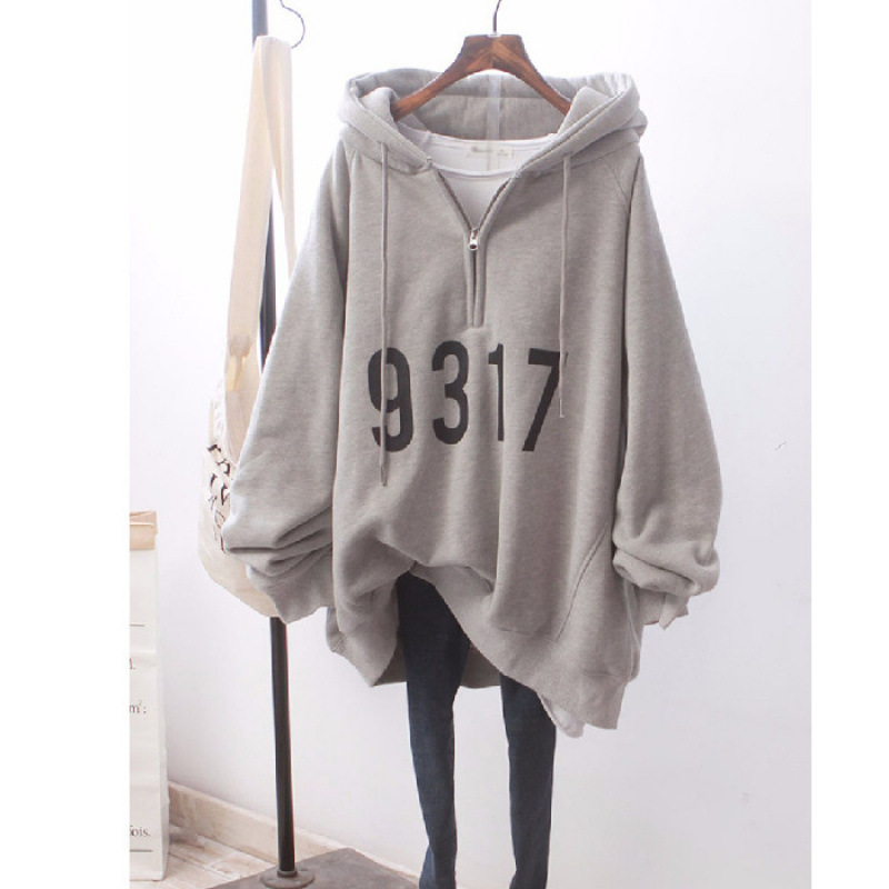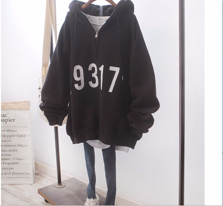 Трансграничный экспорт осенне-зимнего корейского стиля ins в стиле Харадзюку bf, свободная куртка-толстовка большого размера с капюшоном на флисовой подкладке на половине молнии