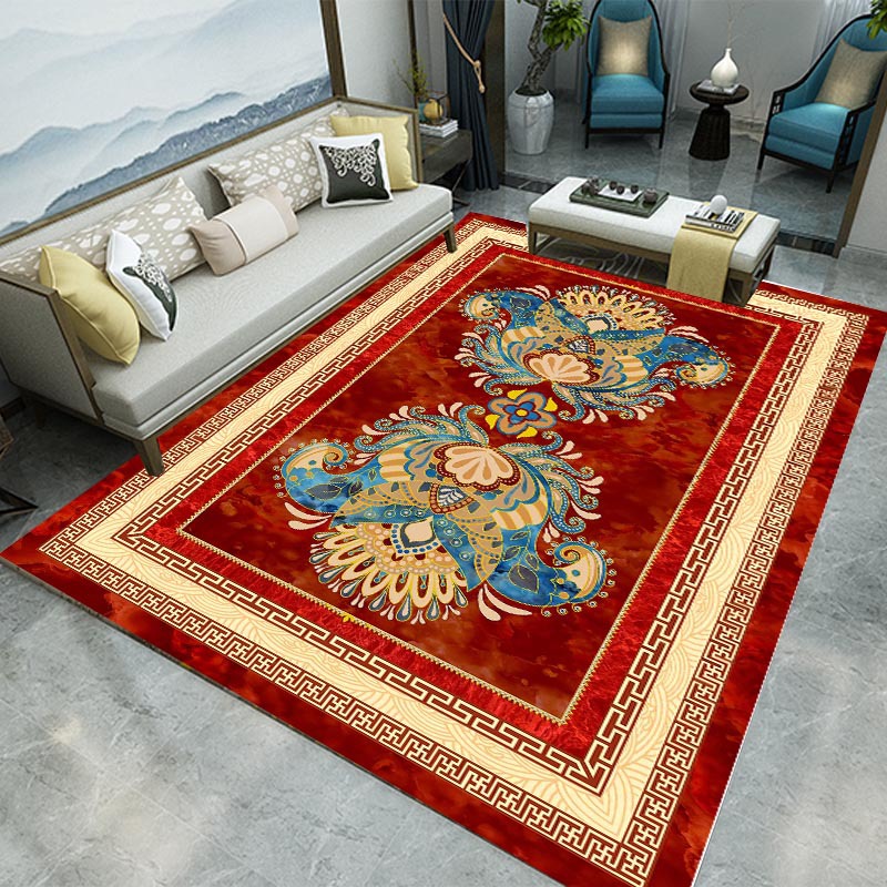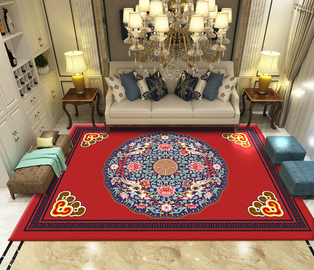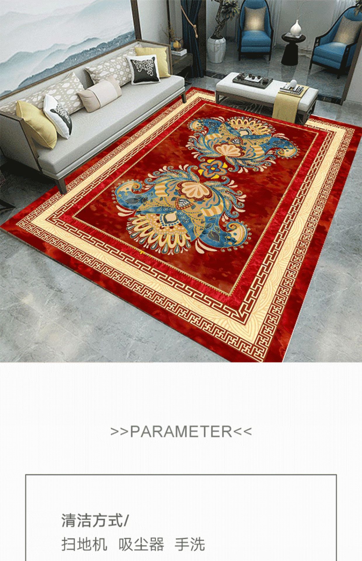 Новый китайский стиль, традиционная красная ковровая дорожка, гостиная, спальня, прикроватное одеяло, доступное роскошное ретро-прямое эфирное помещение, кабинет, свадебное фото, пол J ^