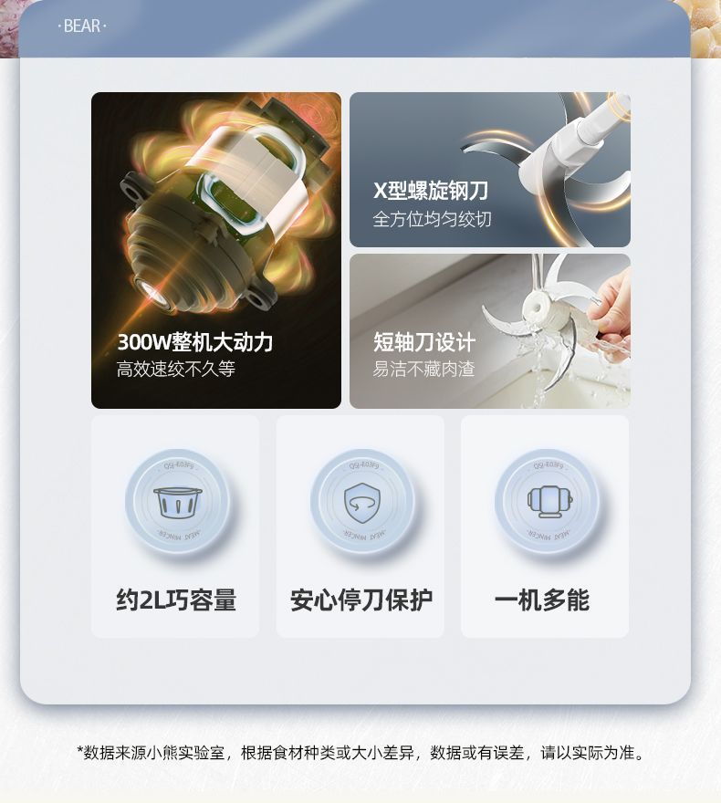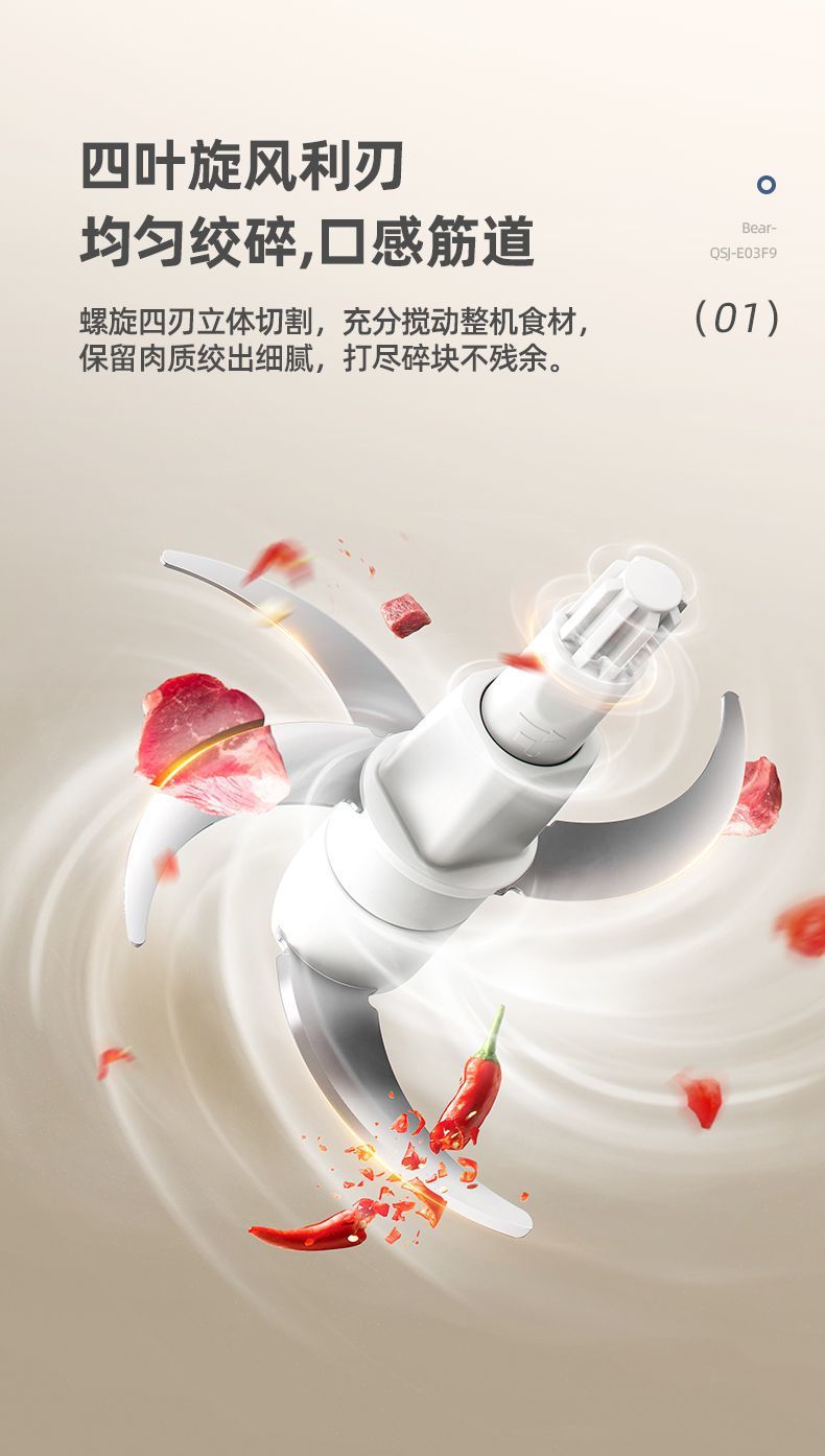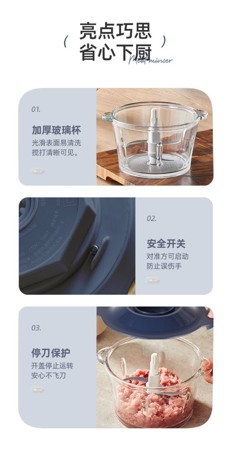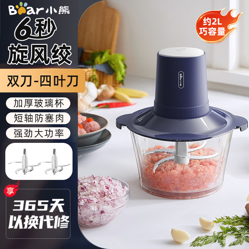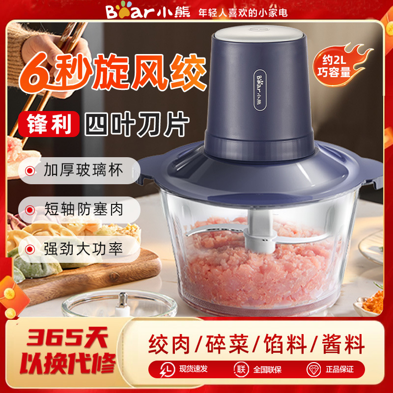 Мясорубка Bear, новый электрический кухонный комбайн с защитой от помех для домашнего использования, мясорубка, миксер для овощей, машина для приготовления чесночной пасты, стеклянная чаша.