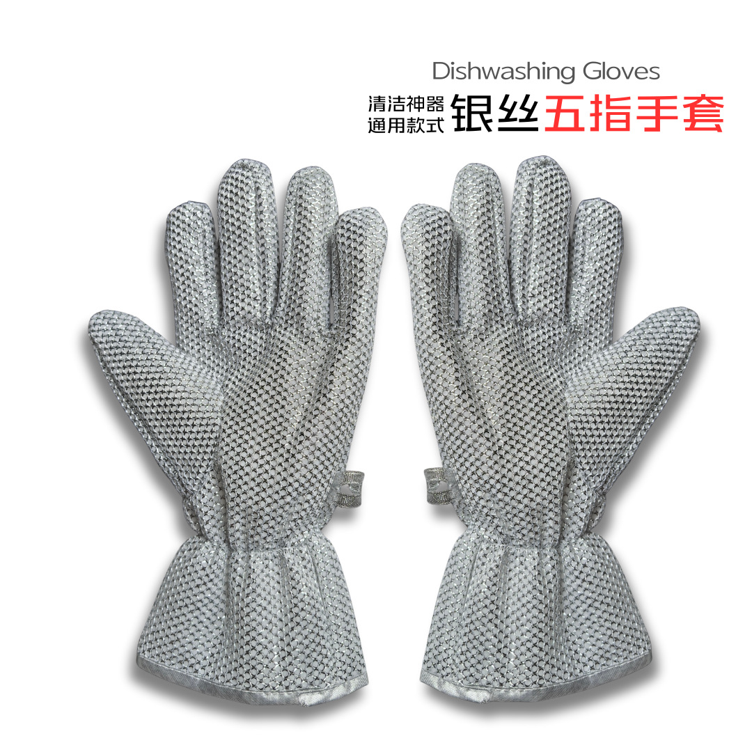 【Пара】Серебряные перчатки с пятью пальцами.; [Одинарные] Перчатки для мытья посуды с серебряной проволокой