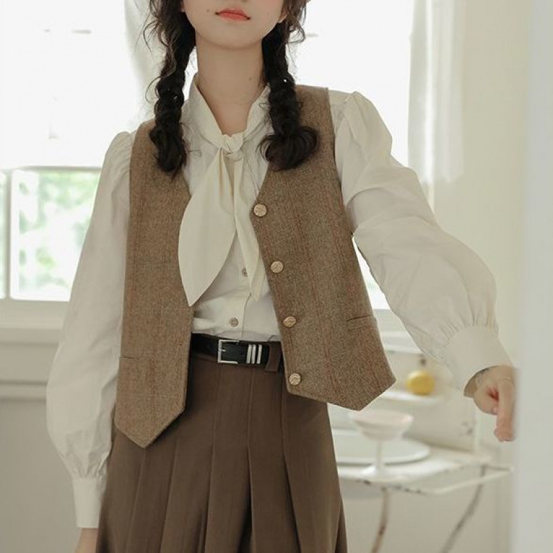 Британский ретро французский жилет в стиле преппи, короткий жилет для женщин, весна-осень 2025, новый жилет-топ
