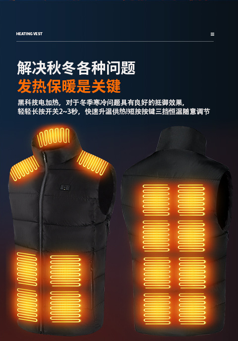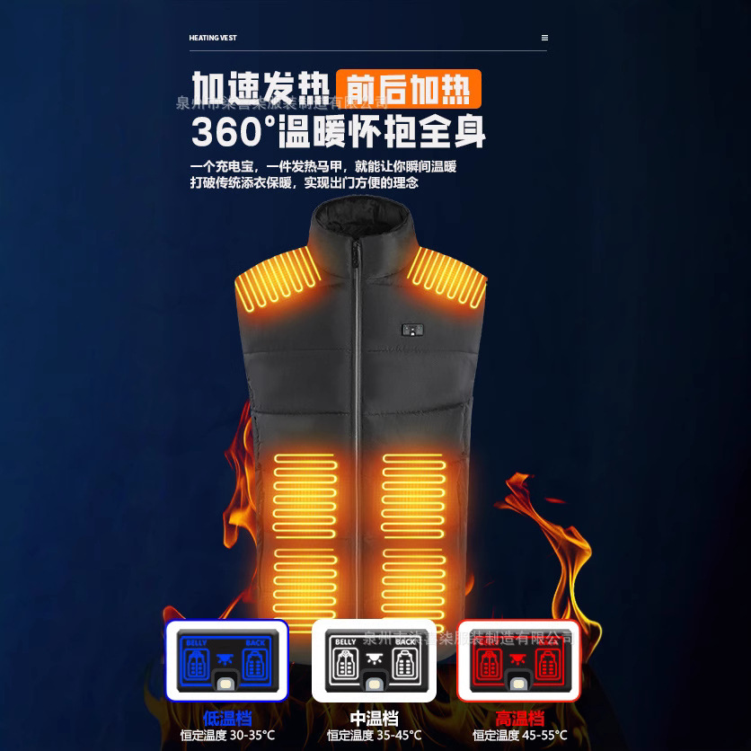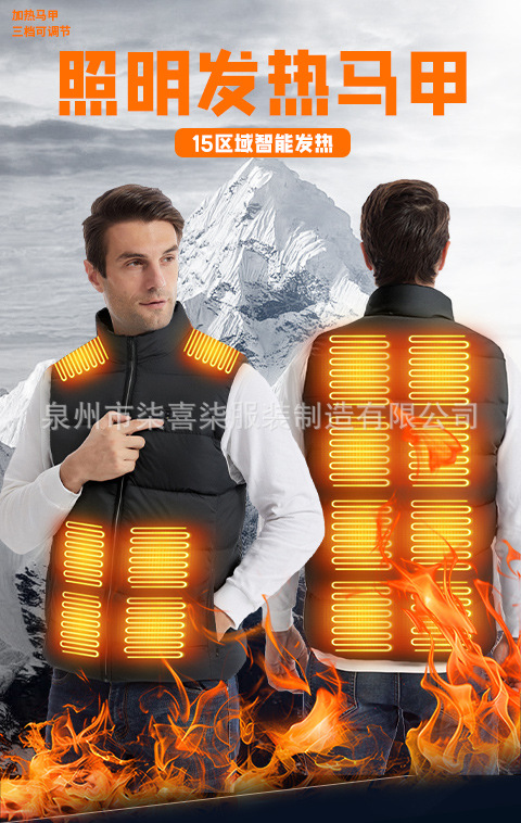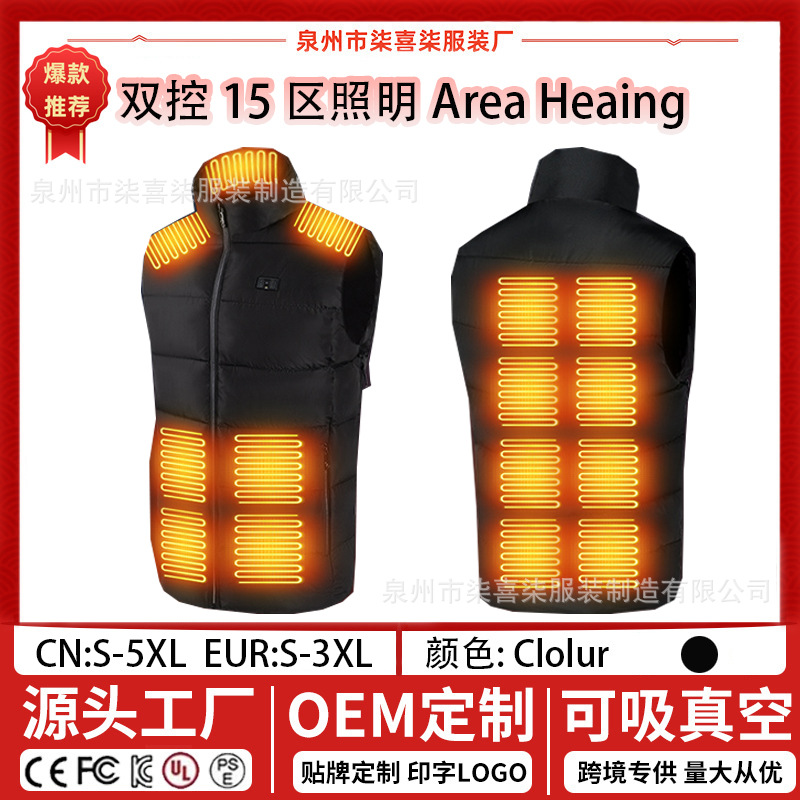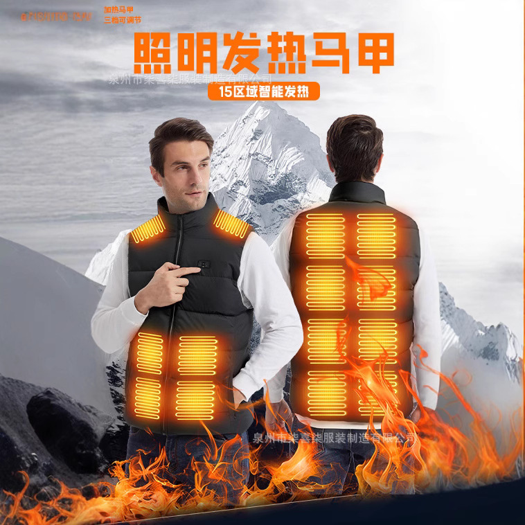 Новый трансграничный 15-зонный интеллектуальный жилет с подогревом и освещением с двойным управлением, USB-жилет с электрическим подогревом, морозостойкий уличный жилет