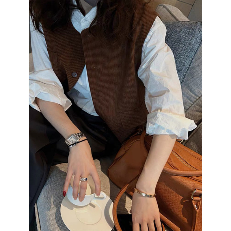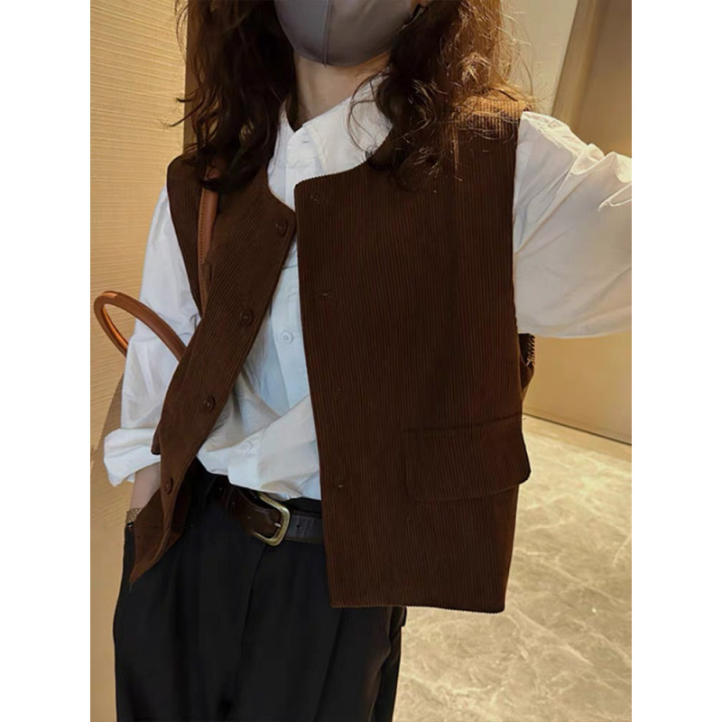 Вельветовый жилет для женщин, многослойная верхняя одежда весной и осенью, универсальный жилет Maillard, элитный кардиган в западном стиле.