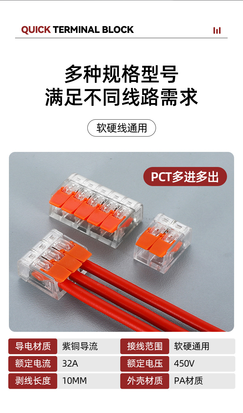 PCT односторонний прозрачный многофункциональный разъем для проводов 412 параллелизатор стыкового соединения 413 быстрый клеммный блок