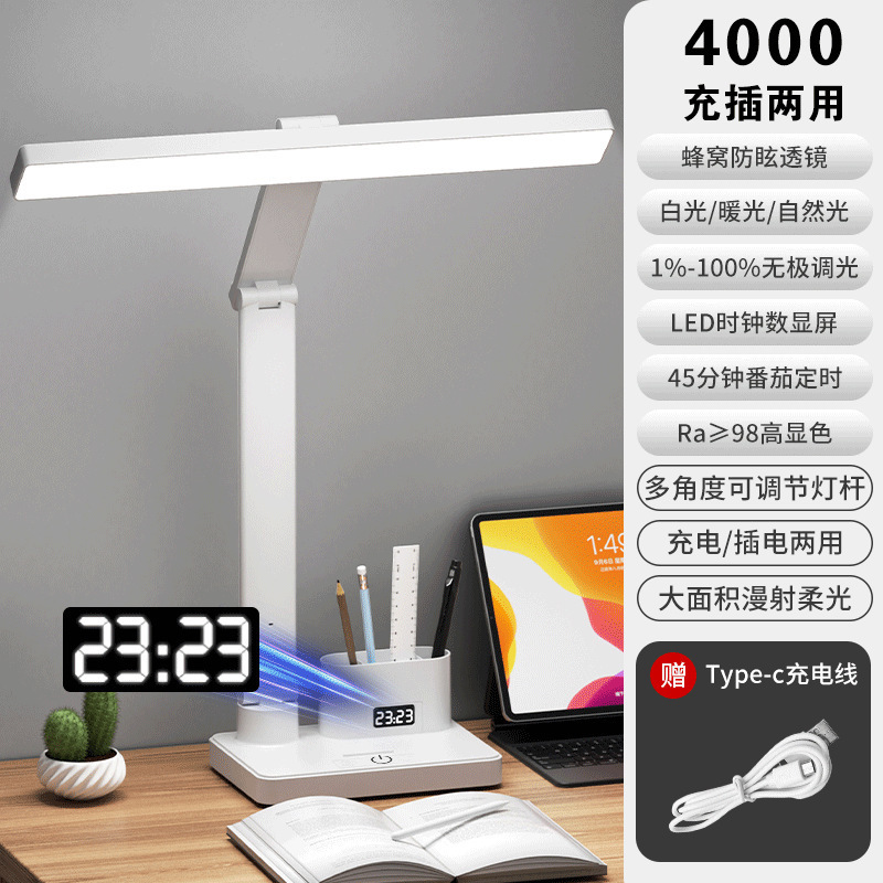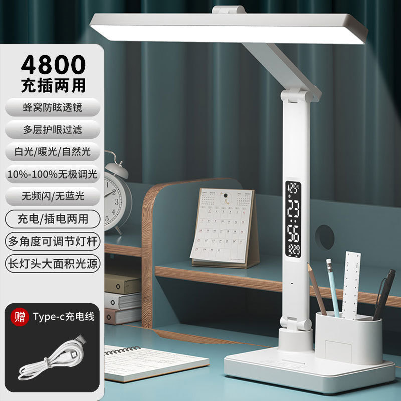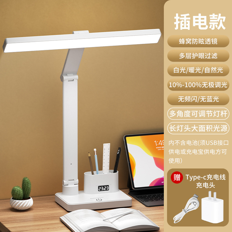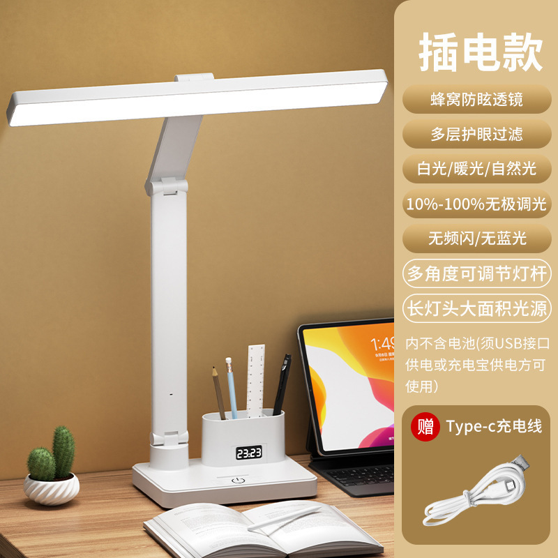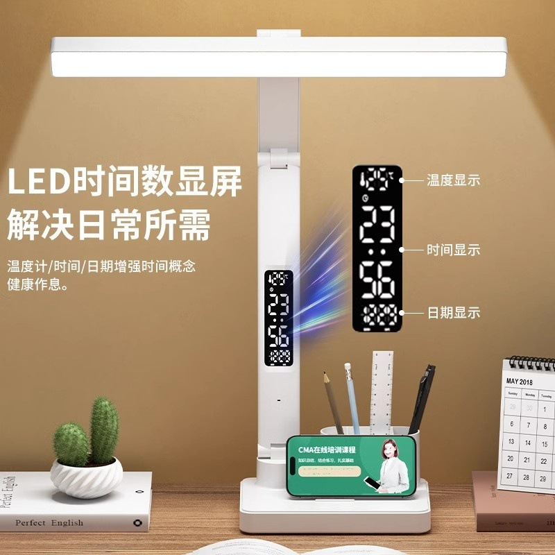 Настольная лампа национального уровня для защиты глаз и обучения с часами для детей, предотвращающая близорукость, зарядка для студентов колледжа, стол для чтения