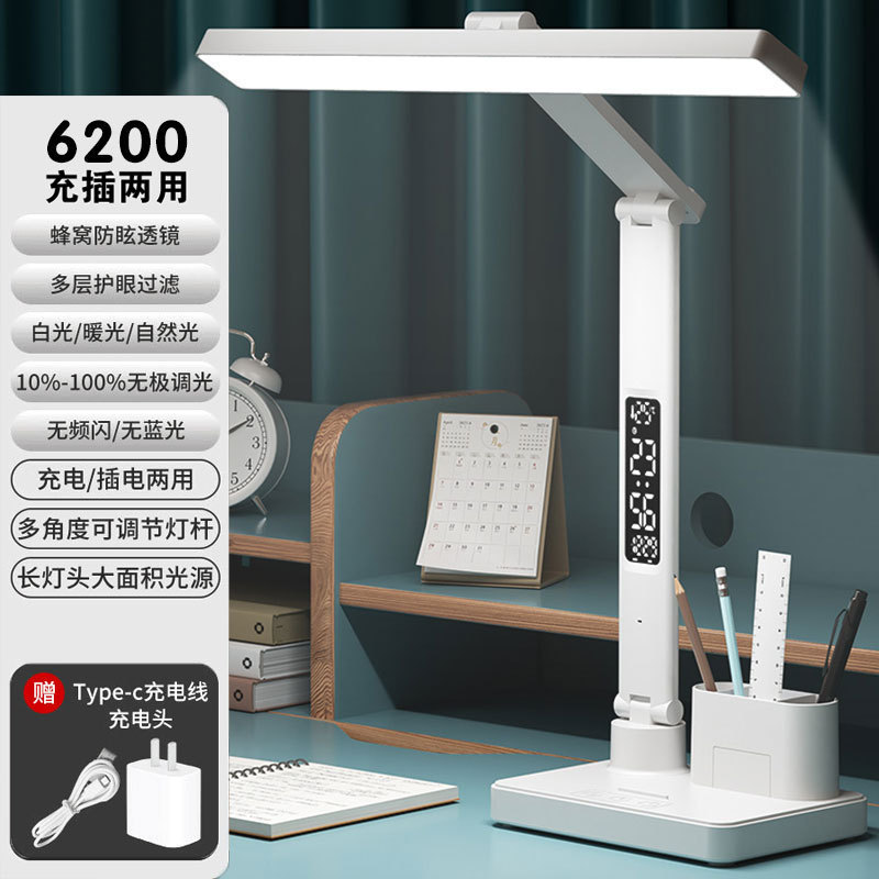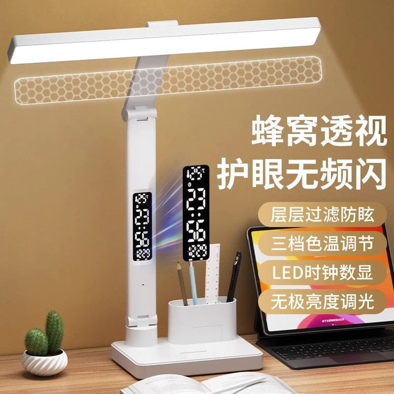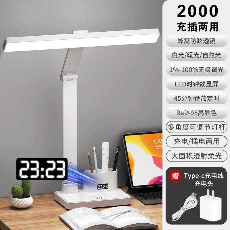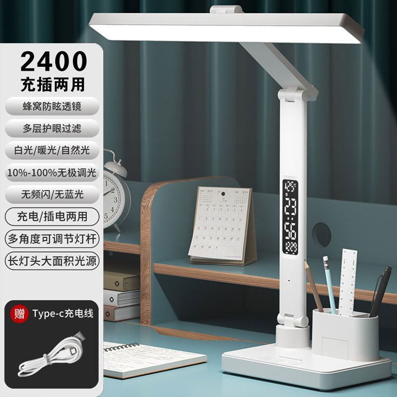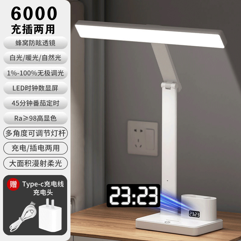 Настольная лампа национального уровня для защиты глаз и обучения с часами для детей, предотвращающая близорукость, зарядка для студентов колледжа, стол для чтения